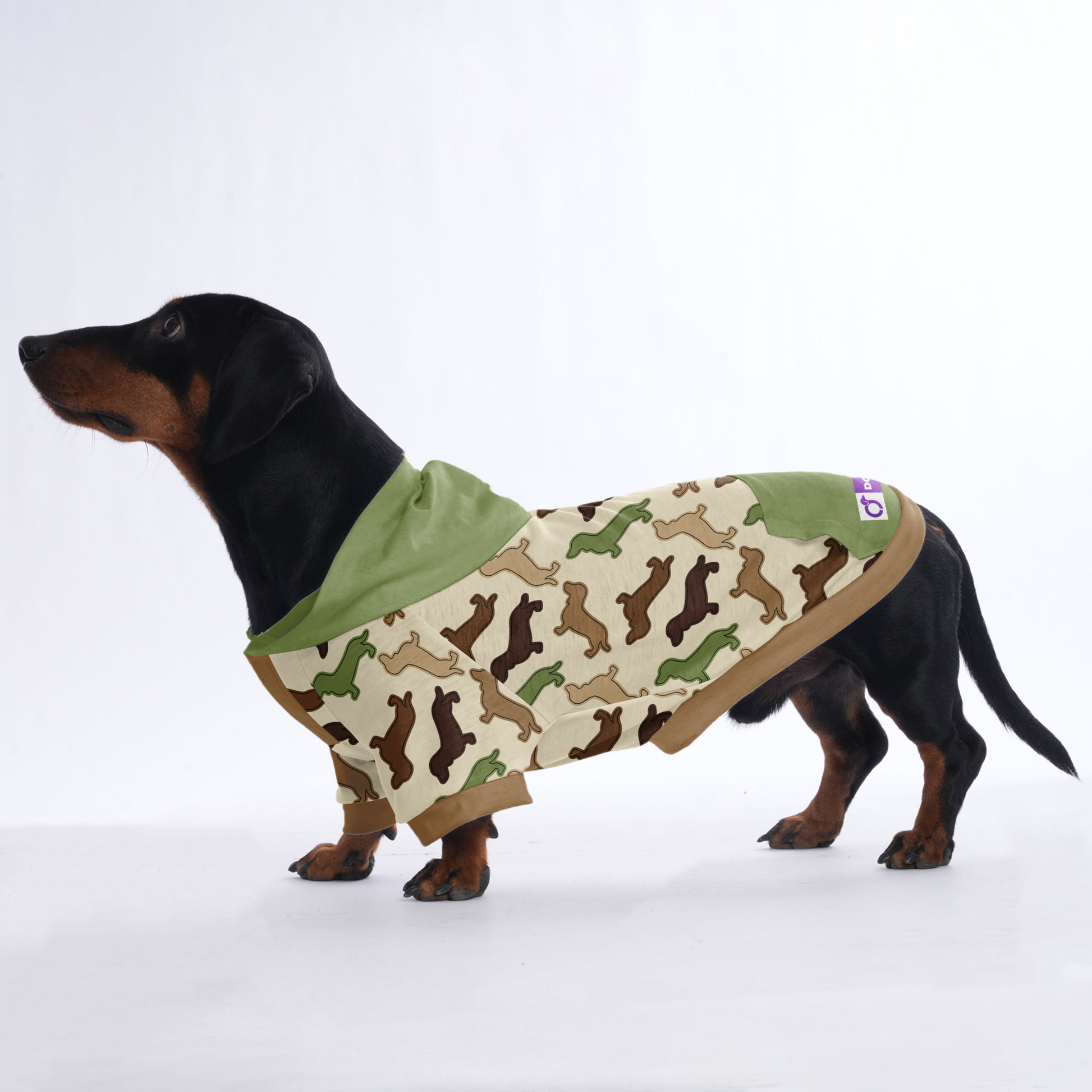 Dress your dachshund in style and comfort with our custom-designed hoodies, perfect for dachshunds and other small dog breeds.