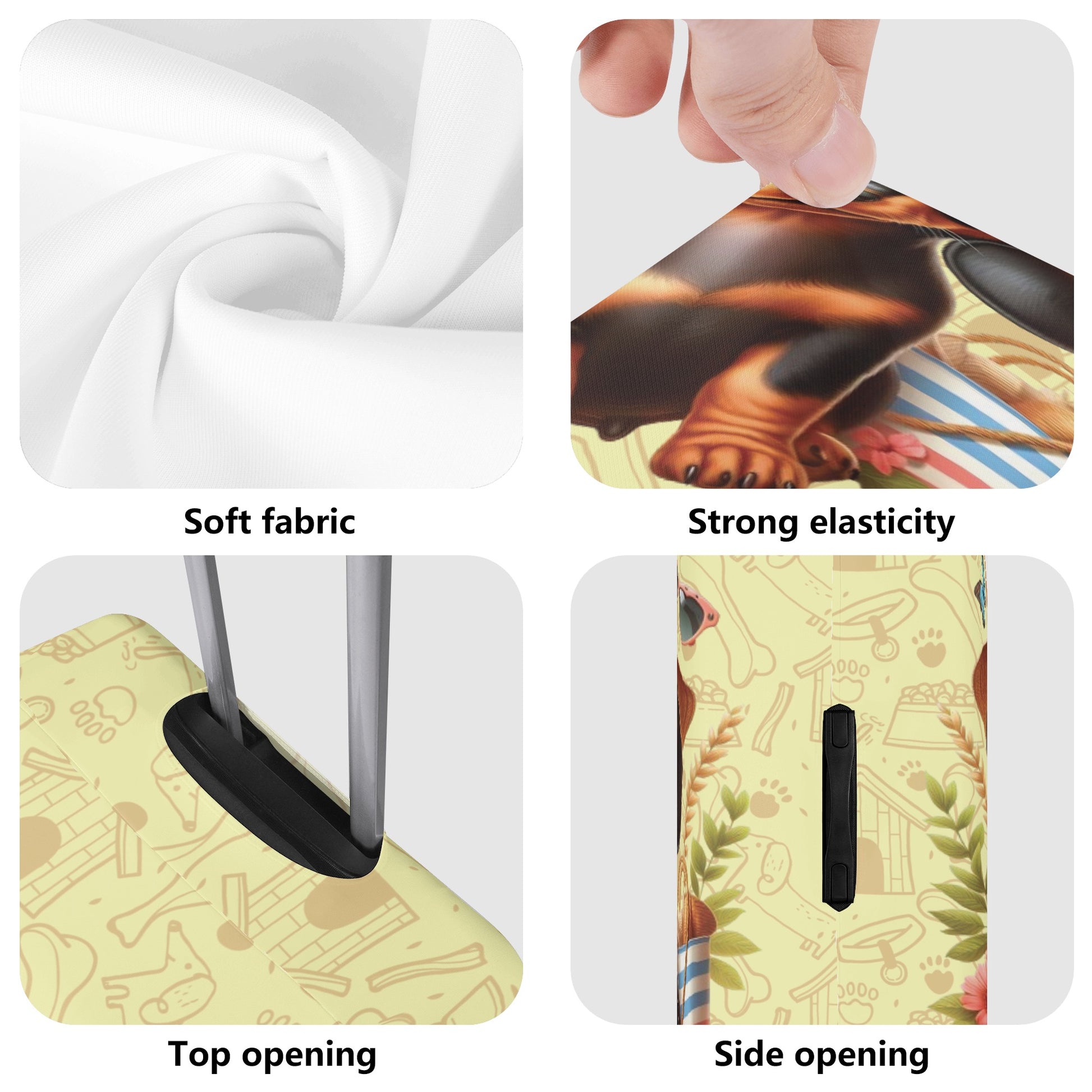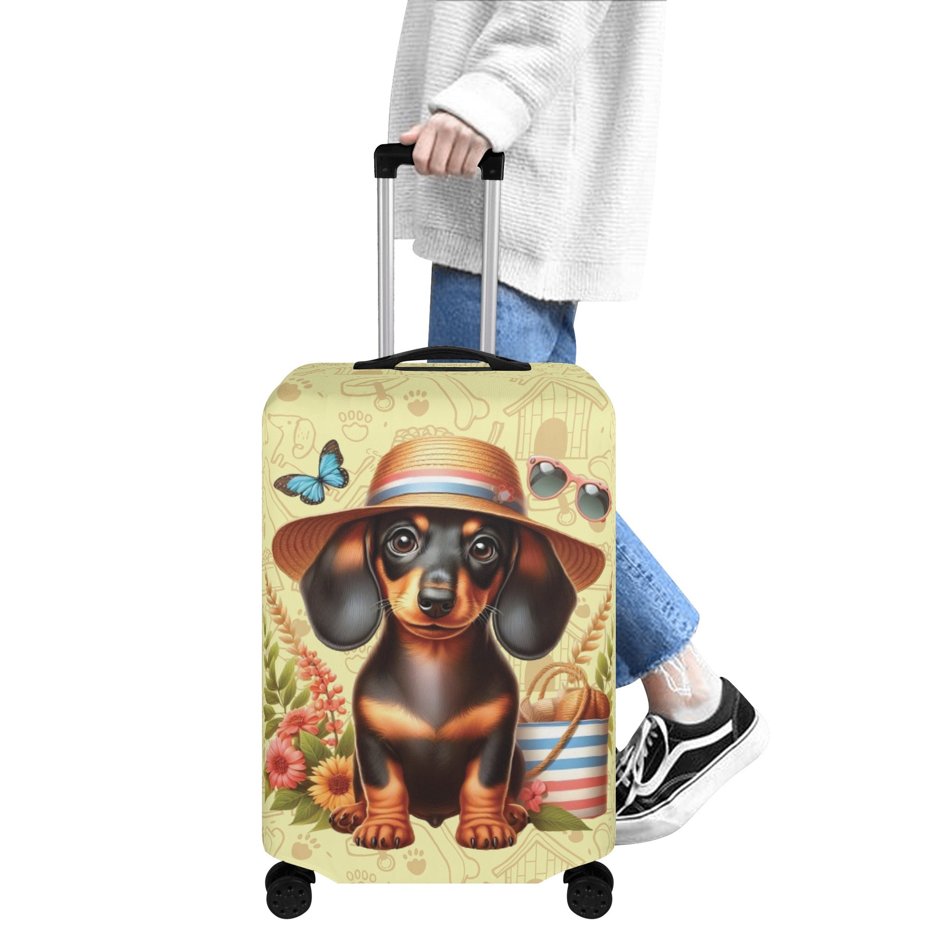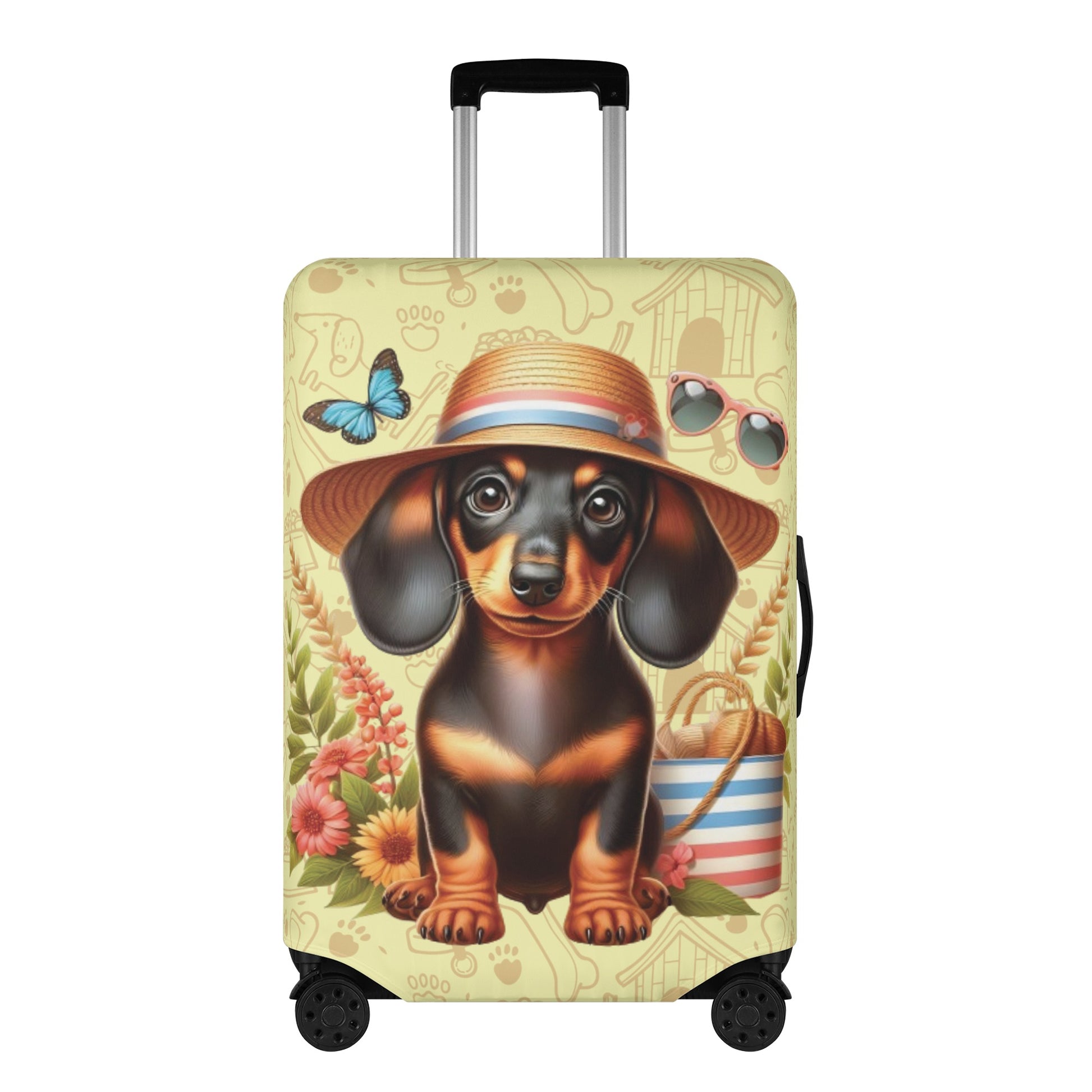 Abrace los viajes con nuestra funda para equipaje con temática de Dachshund . Fabricada con una mezcla duradera de poliéster y lona, protege contra el desgaste de los viajes y las inclemencias del tiempo. Disponible en tallas S a XL, se adapta a cada viaje.