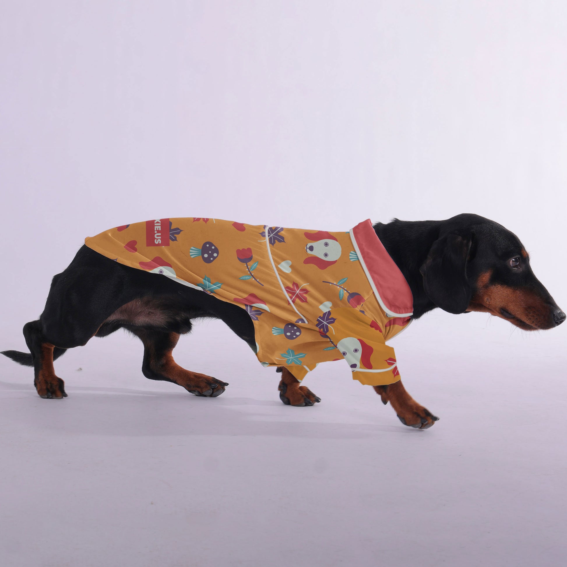 Pamper your Doxie with the coziest loungewear! These premium pajamas, crafted from stretchy, lightweight, and breathable fabric (97% polyester, 3% spandex), are designed to meet your dachshund’s relaxation needs all year round.