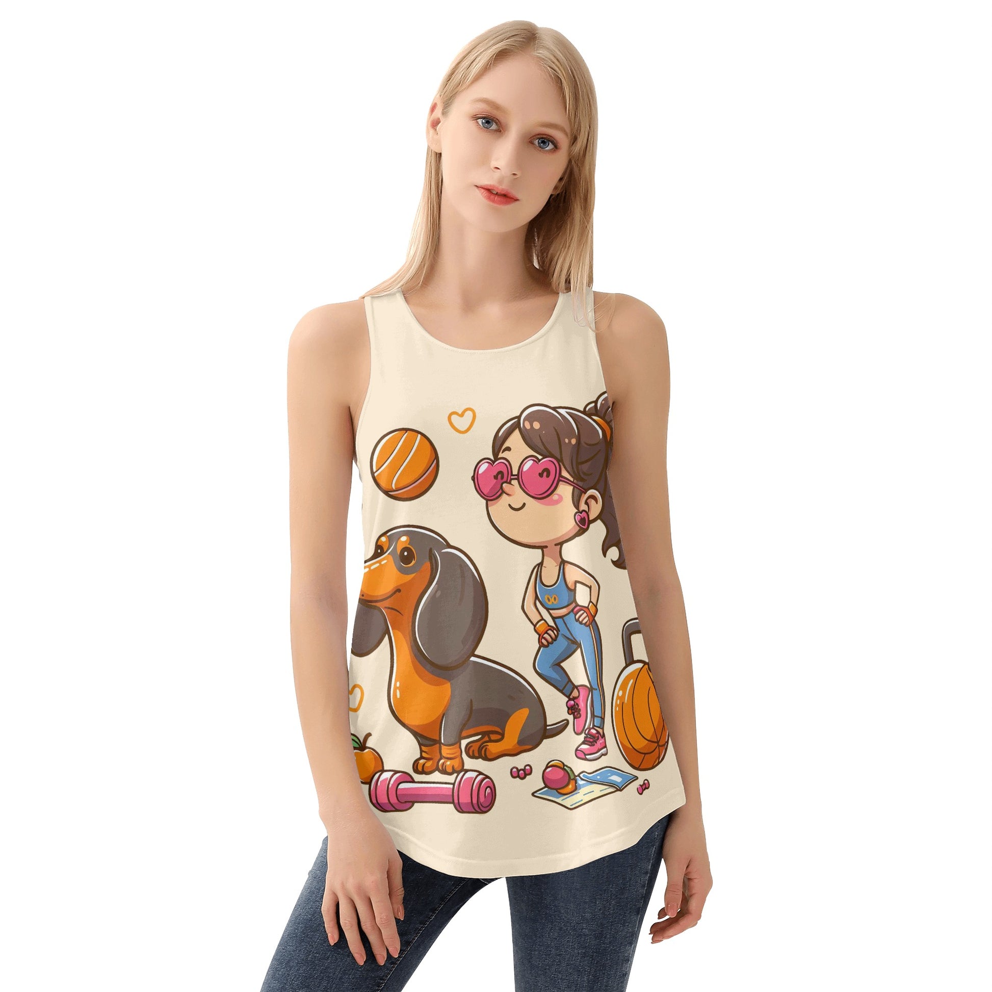 ¿Eres fanático de la adorable raza dachshund? ¿Quieres mostrar tu amor por estos lindos y leales perros? ¡Entonces esta camiseta sin mangas es perfecta para ti!