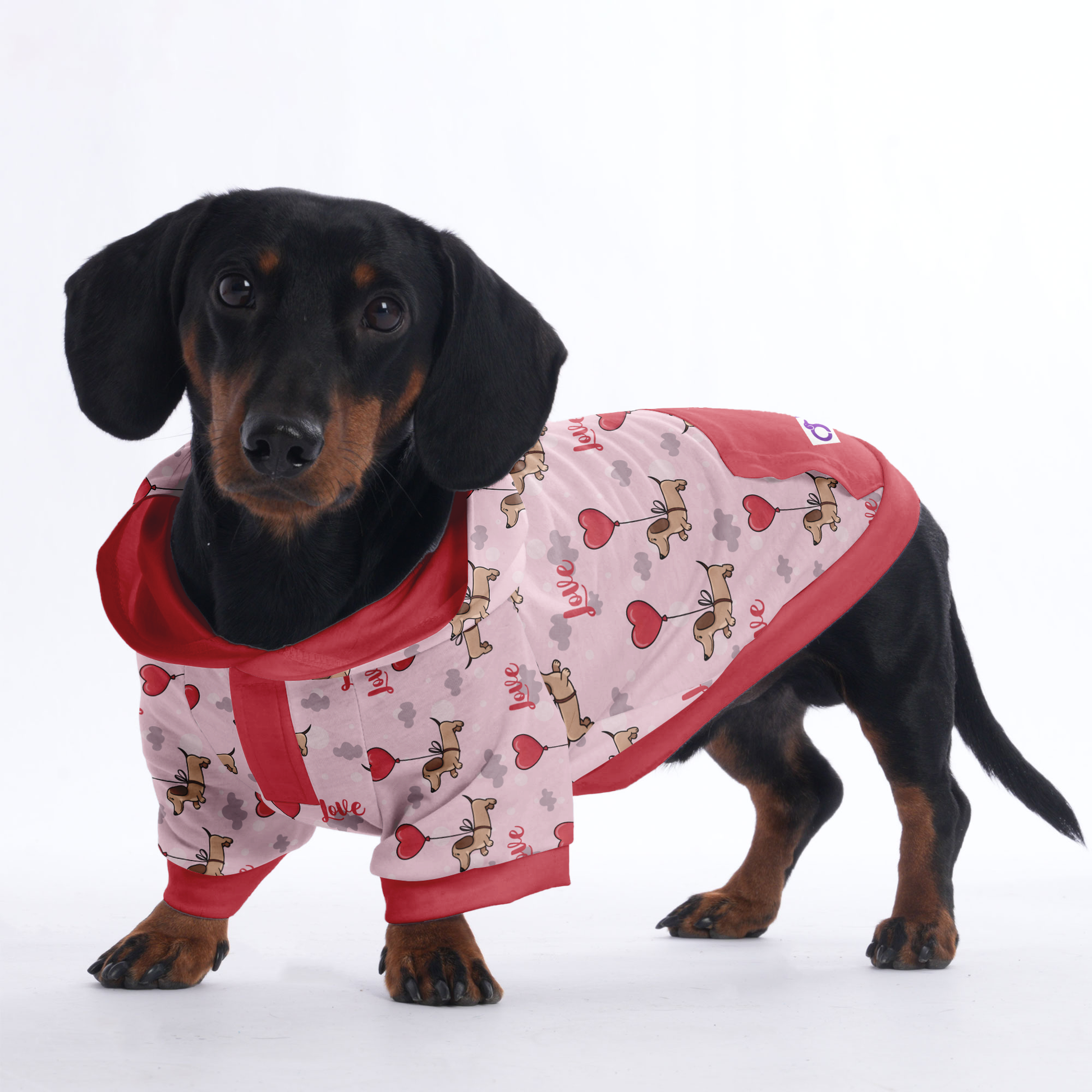 Dress your dachshund in style and comfort with our custom-designed hoodies, perfect for dachshunds and other small dog breeds.