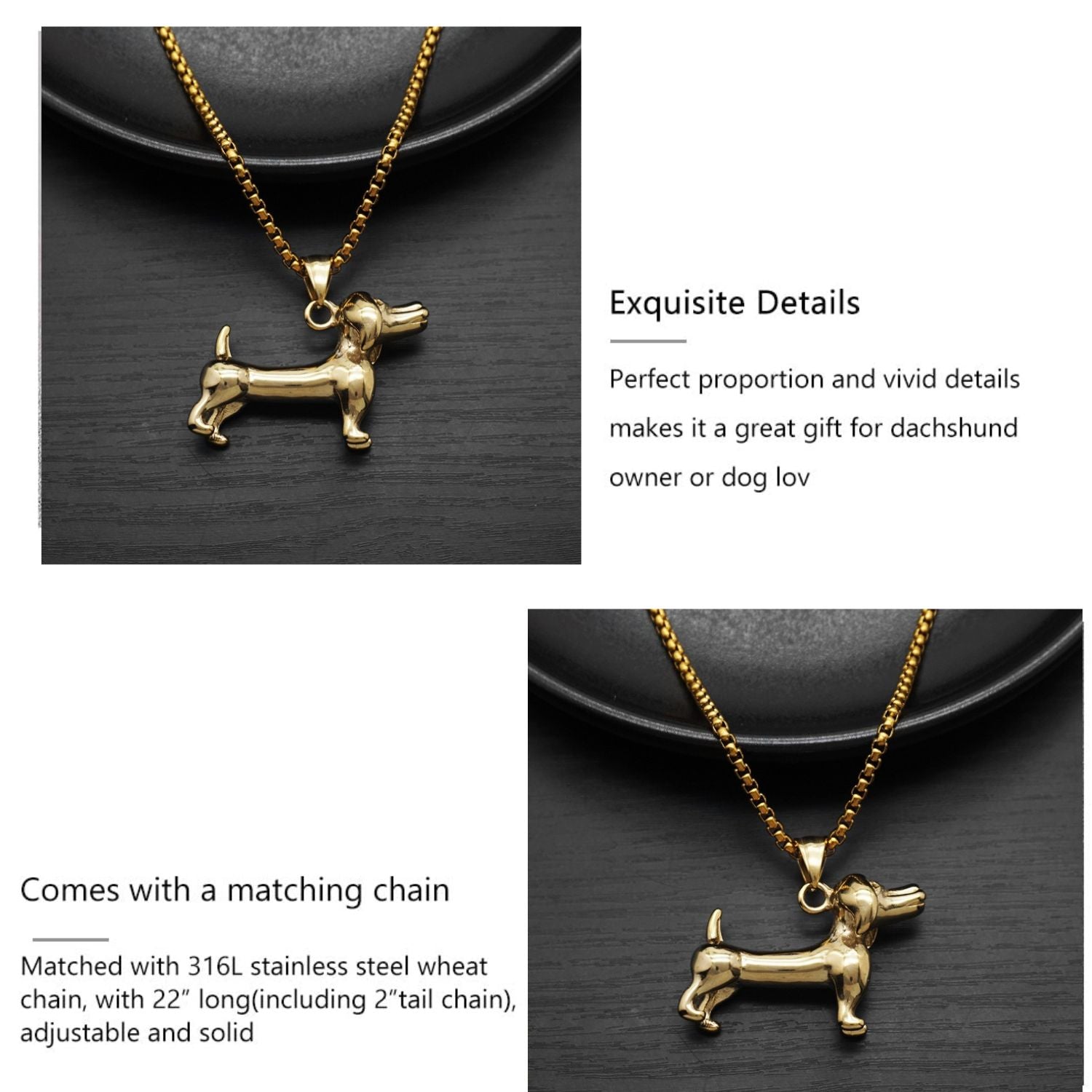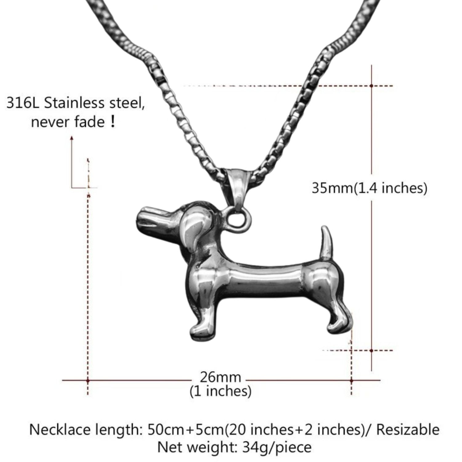 Nuestro collar Dachshund es 100% nuevo y de alta calidad. Acero inoxidable, altamente resistente a la oxidación, la corrosión y el deslustre, resistente y duradero. Superficie altamente pulida, suave y cómoda de llevar. Te verás diferente cuando lo uses. Muestra tu amor por Dachshund. Garantizamos material no tóxico para mayor seguridad: collar Dachshund elegante y liviano con una variedad de colores.