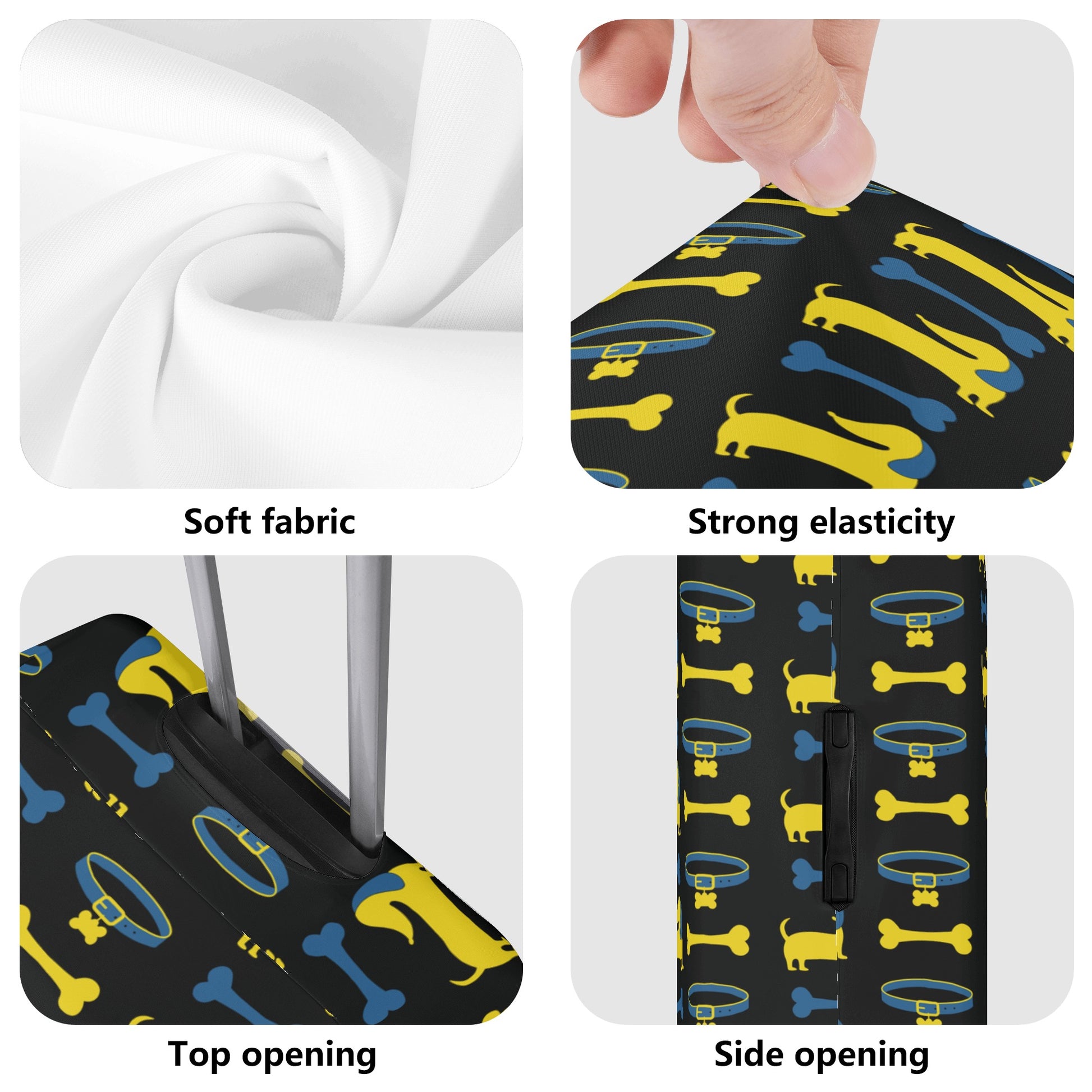 Abrace los viajes con nuestra funda para equipaje con temática de Dachshund . Fabricada con una mezcla duradera de poliéster y lona, protege contra el desgaste de los viajes y las inclemencias del tiempo. Disponible en tallas S a XL, se adapta a cada viaje.