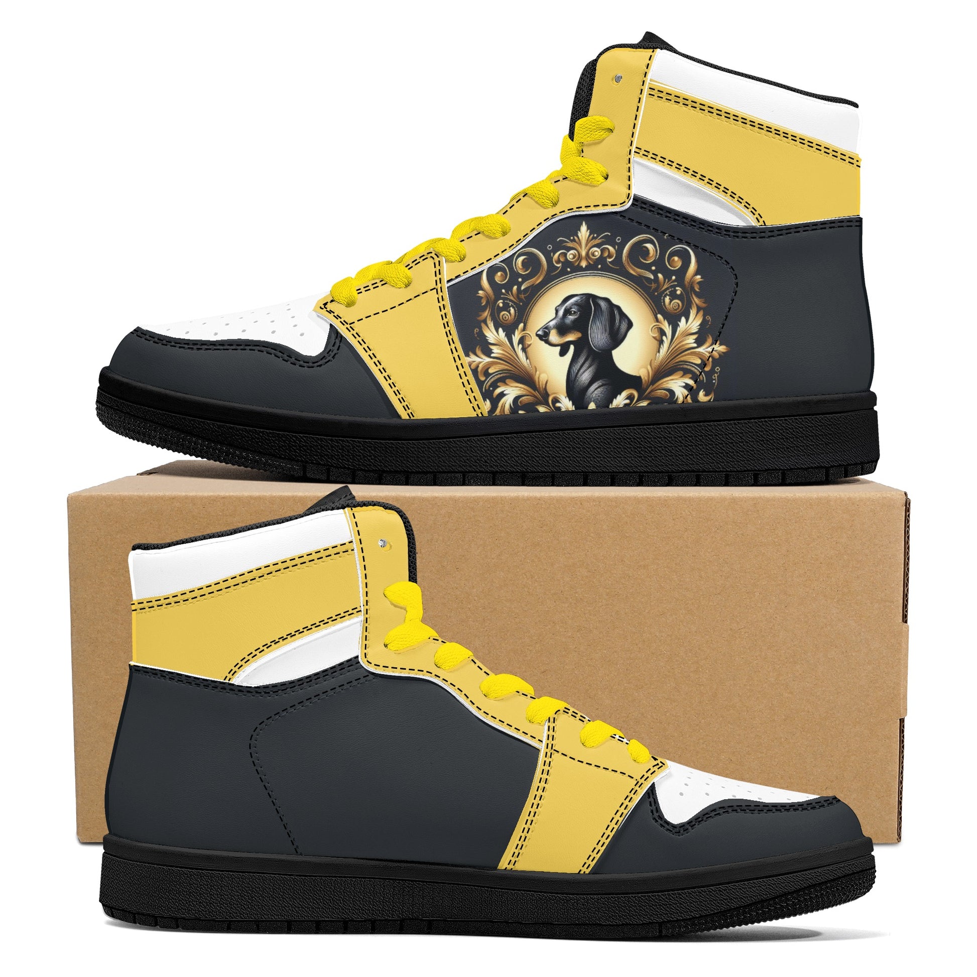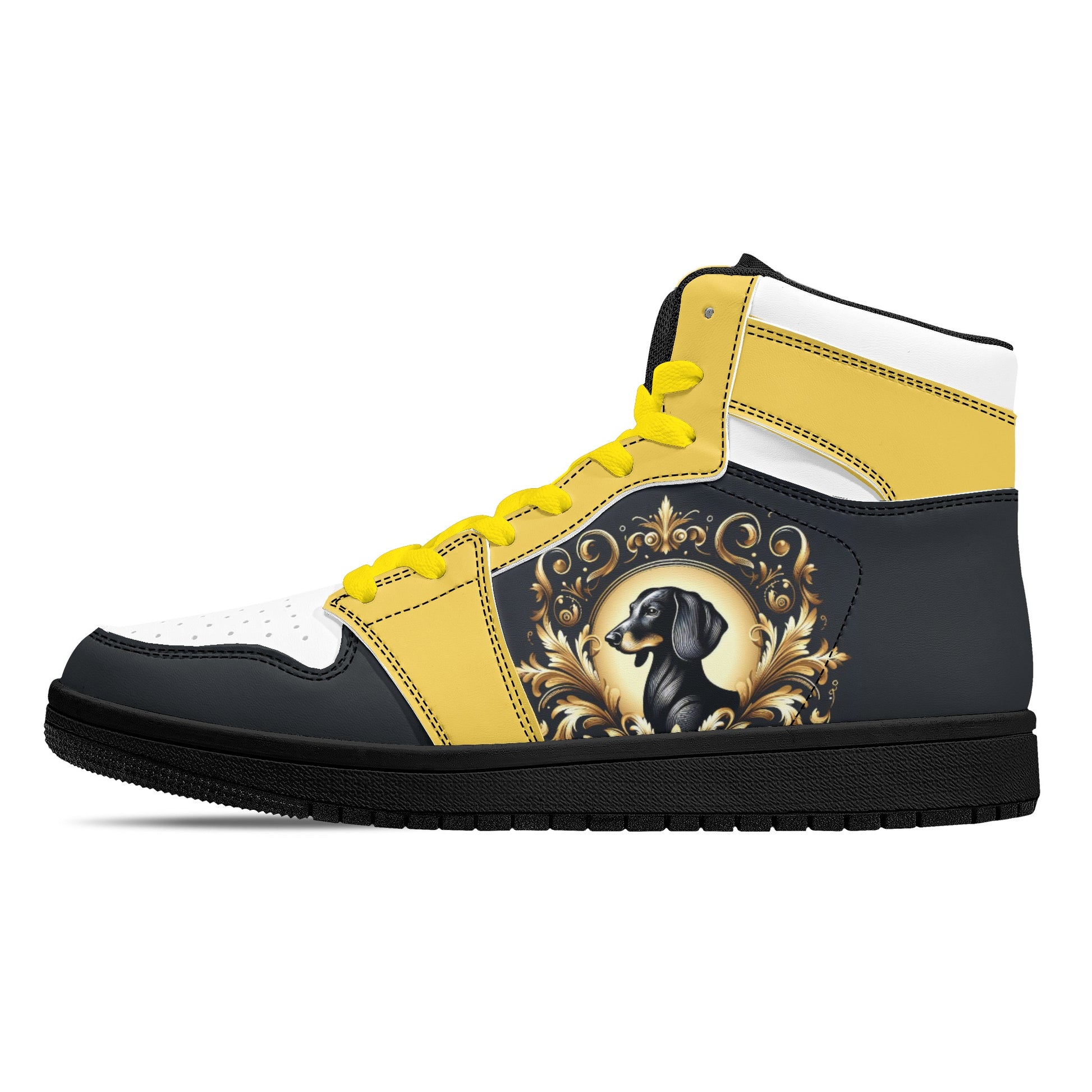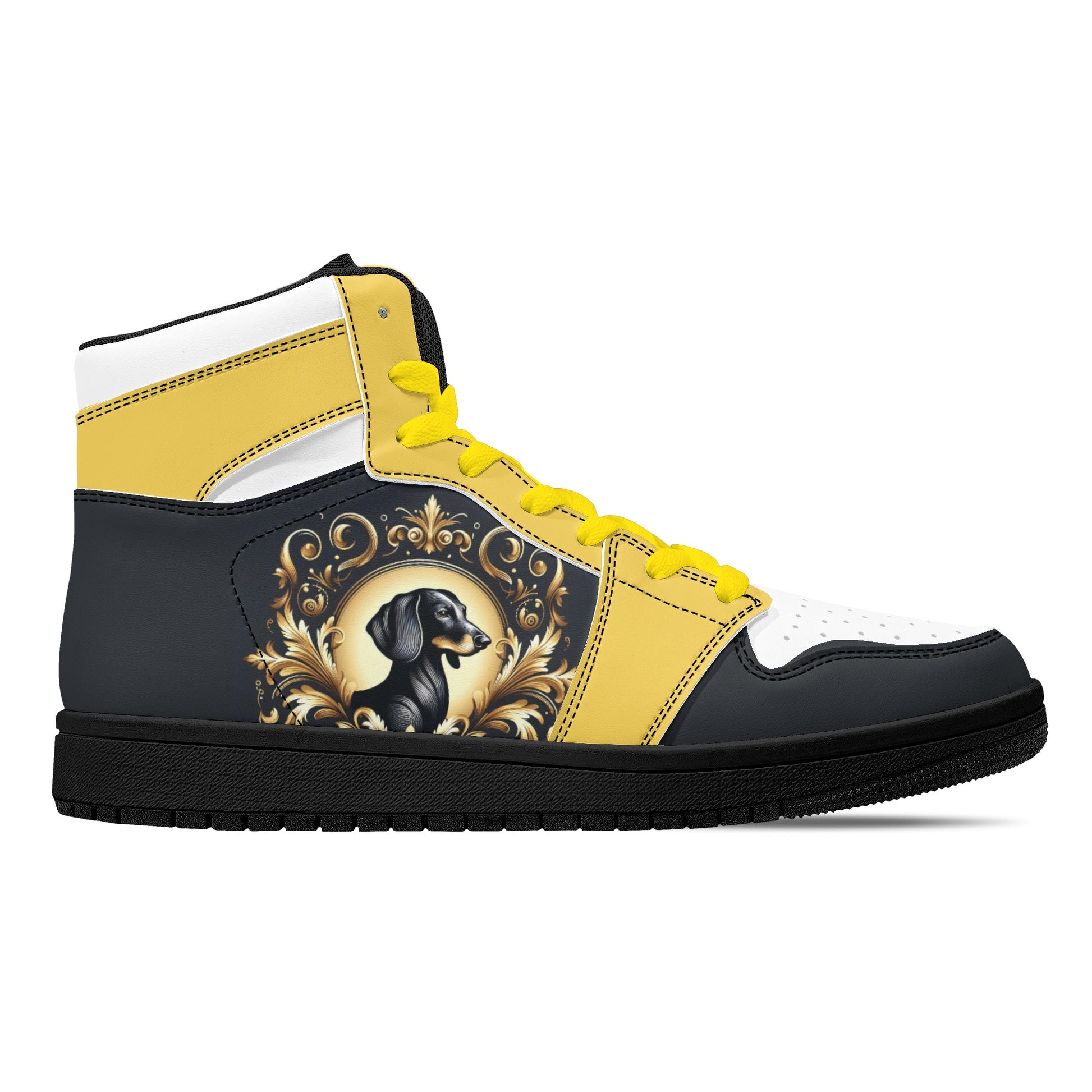 Si es así, te encantarán estos zapatos personalizados con estampado integral que presentan lindas cabezas de perro salchicha en varios colores y patrones.