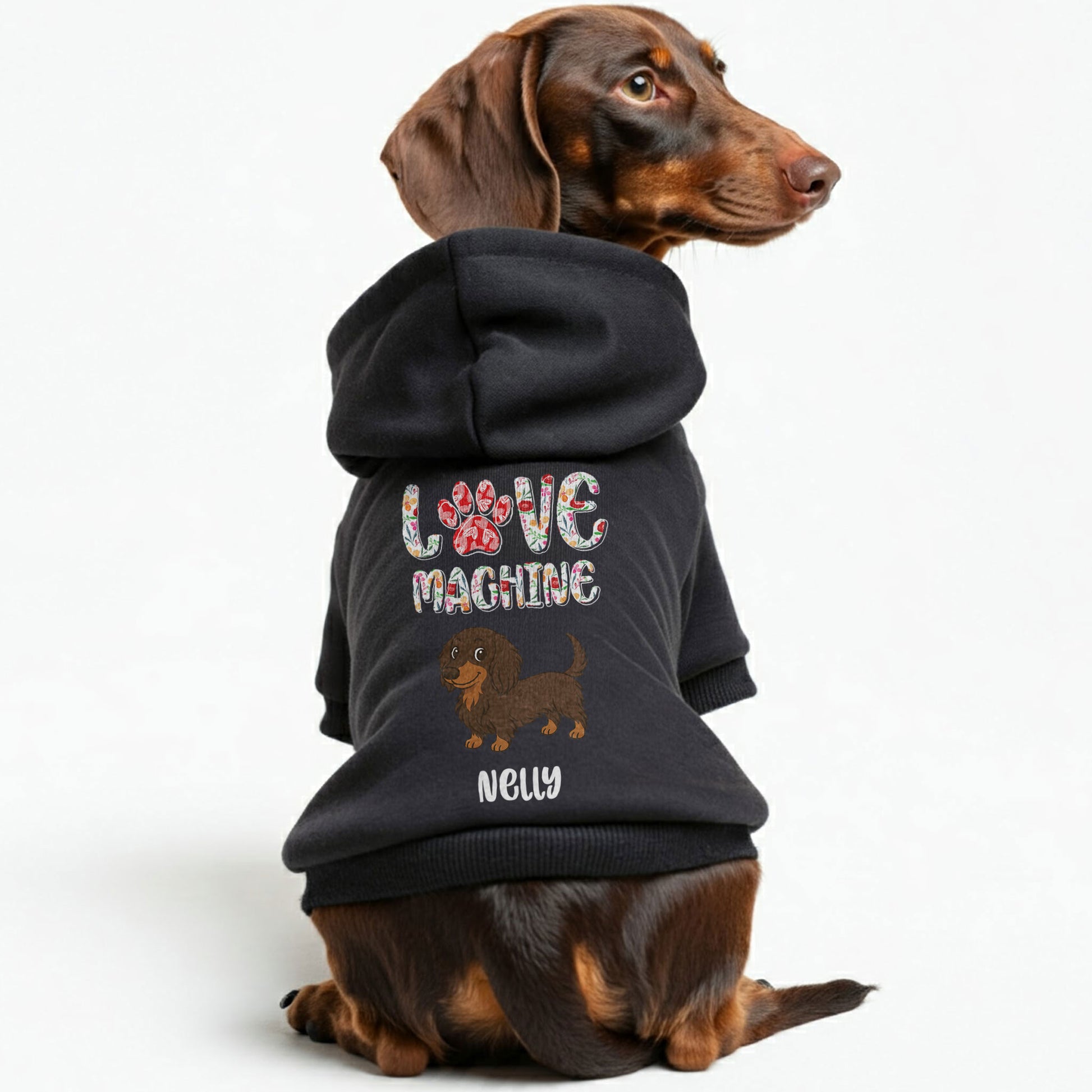Love Machine – Personalized Dachshund Hoodies with Your Doxie’s Name & Clipart – Stylish, Cozy & Made from Premium 100% Cotton