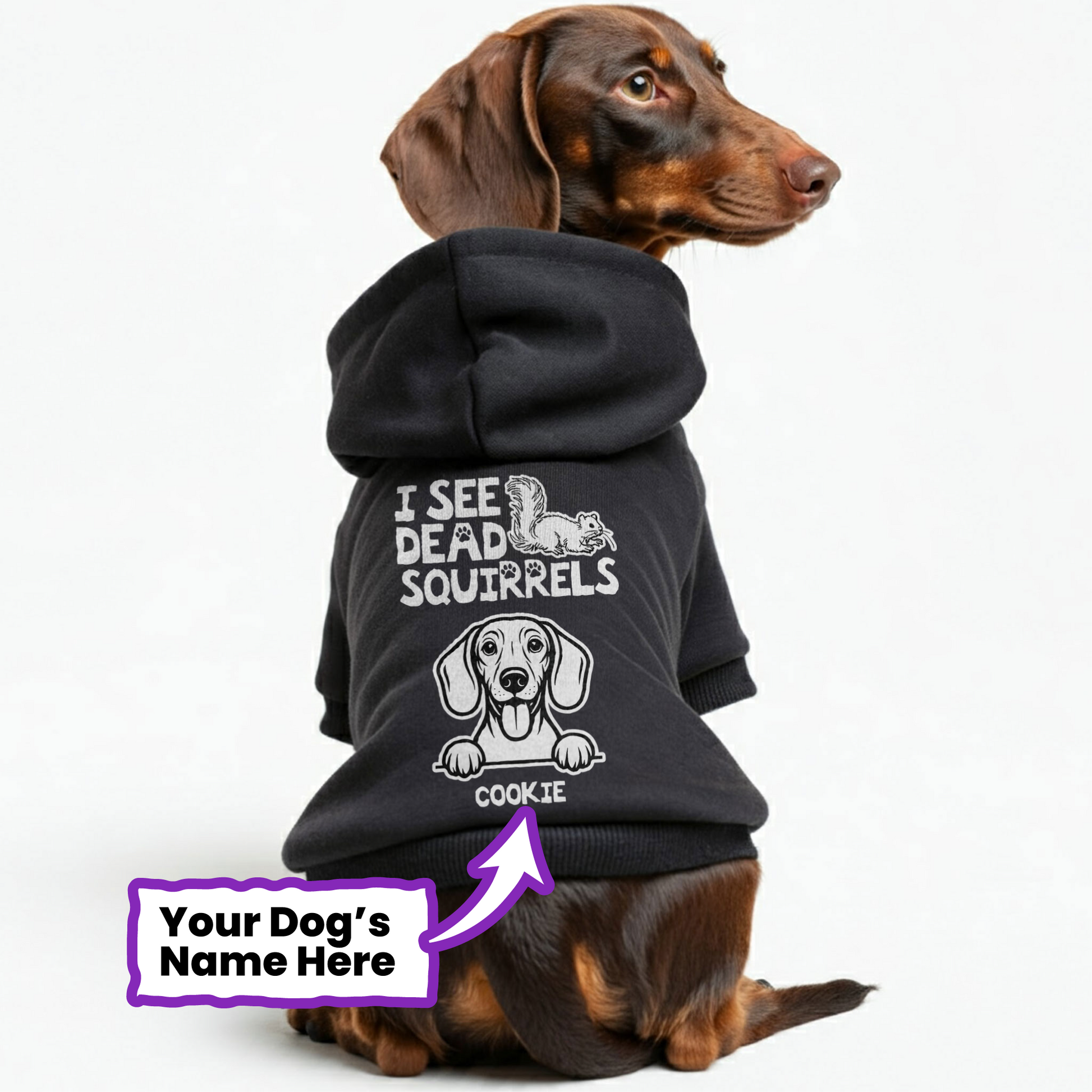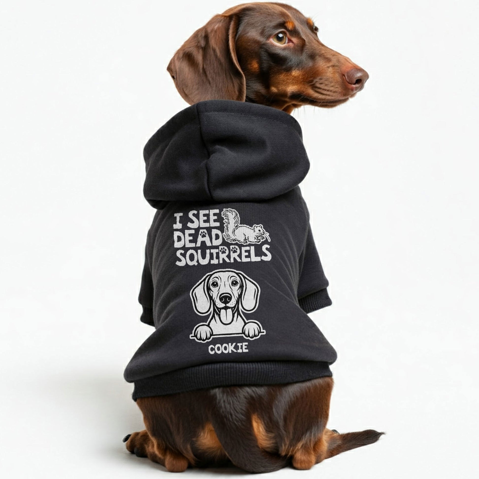 I see dead squirrels - Personalized Dachshund Hoodies with your doxie name – Stylish, Cozy, and Premium 100% Cotton