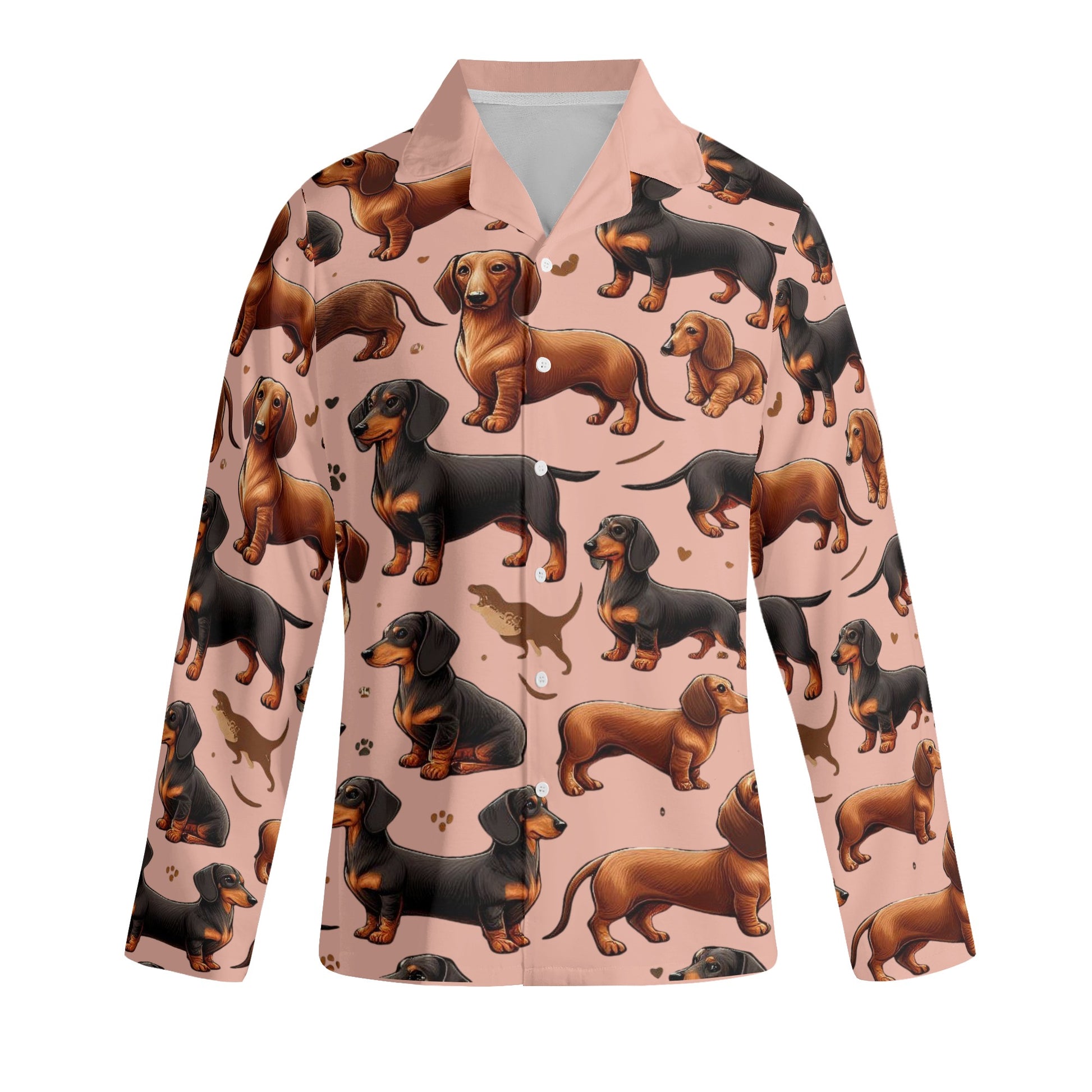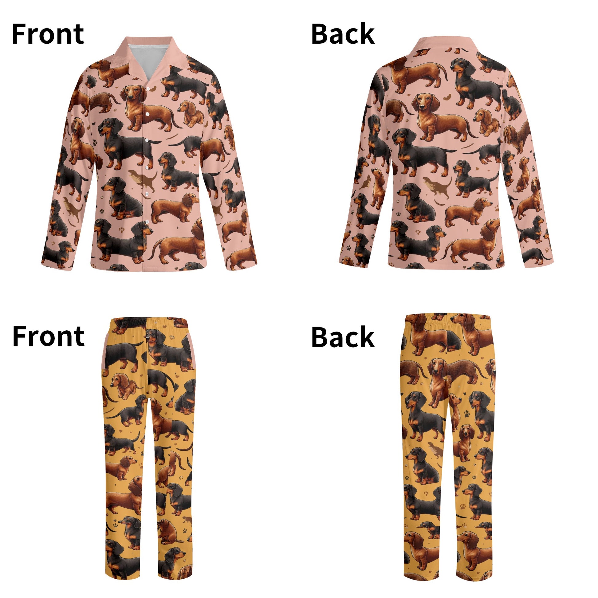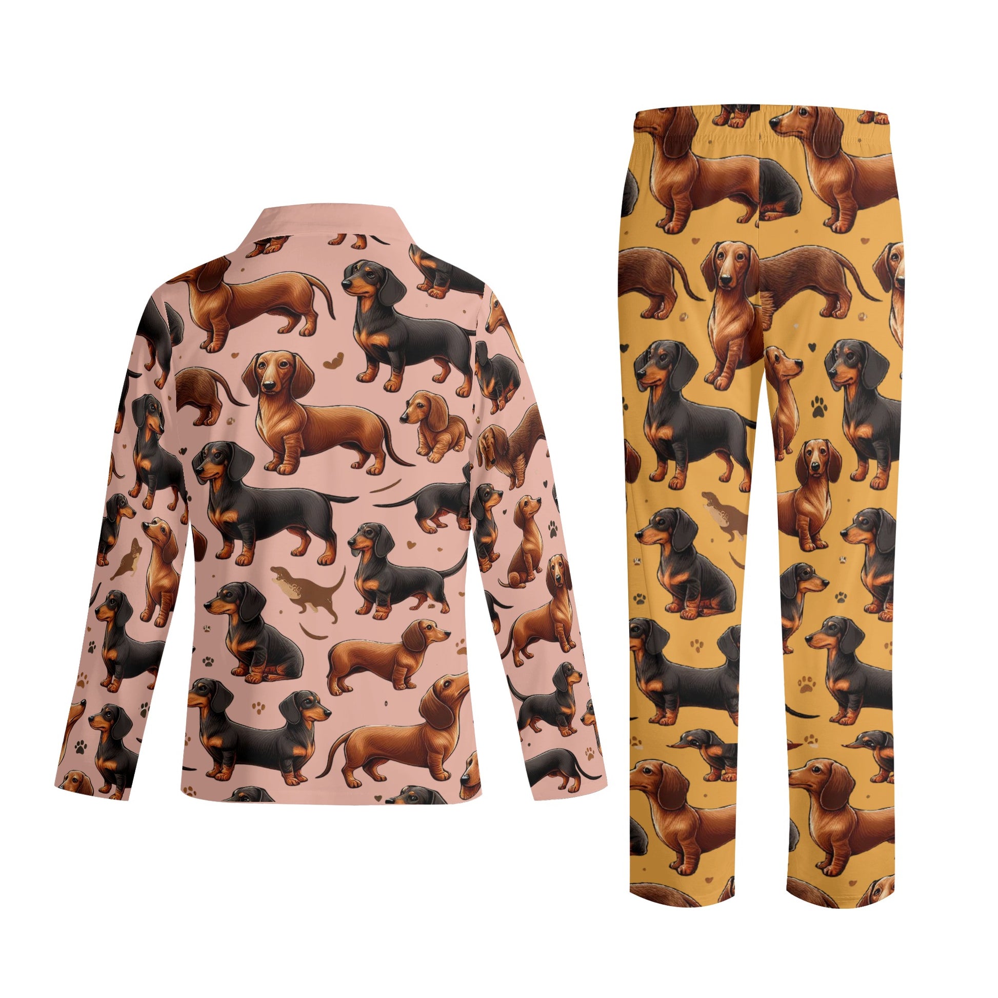 - ¿Amas a los perros salchicha tanto como a nosotros? Si es así, te encantará este conjunto de pijama acogedor y elegante que presenta un lindo y colorido patrón de perro salchicha. Ya sea que estés acurrucándote con tu amigo peludo o relajándote solo, este conjunto de pijama te mantendrá abrigado y cómodo durante toda la noche.