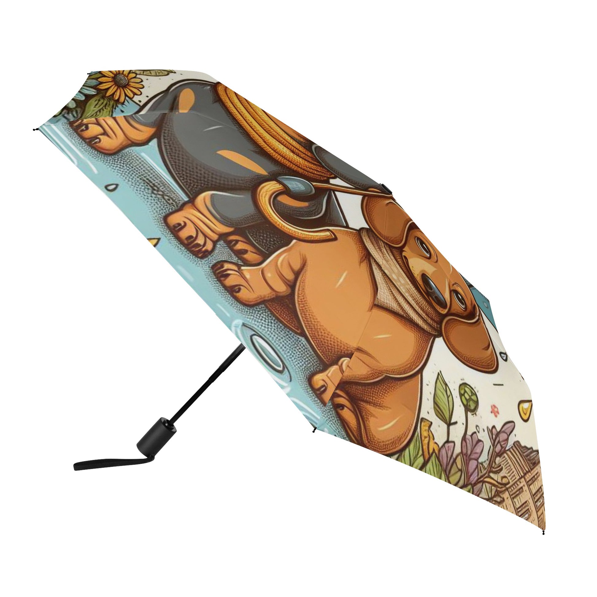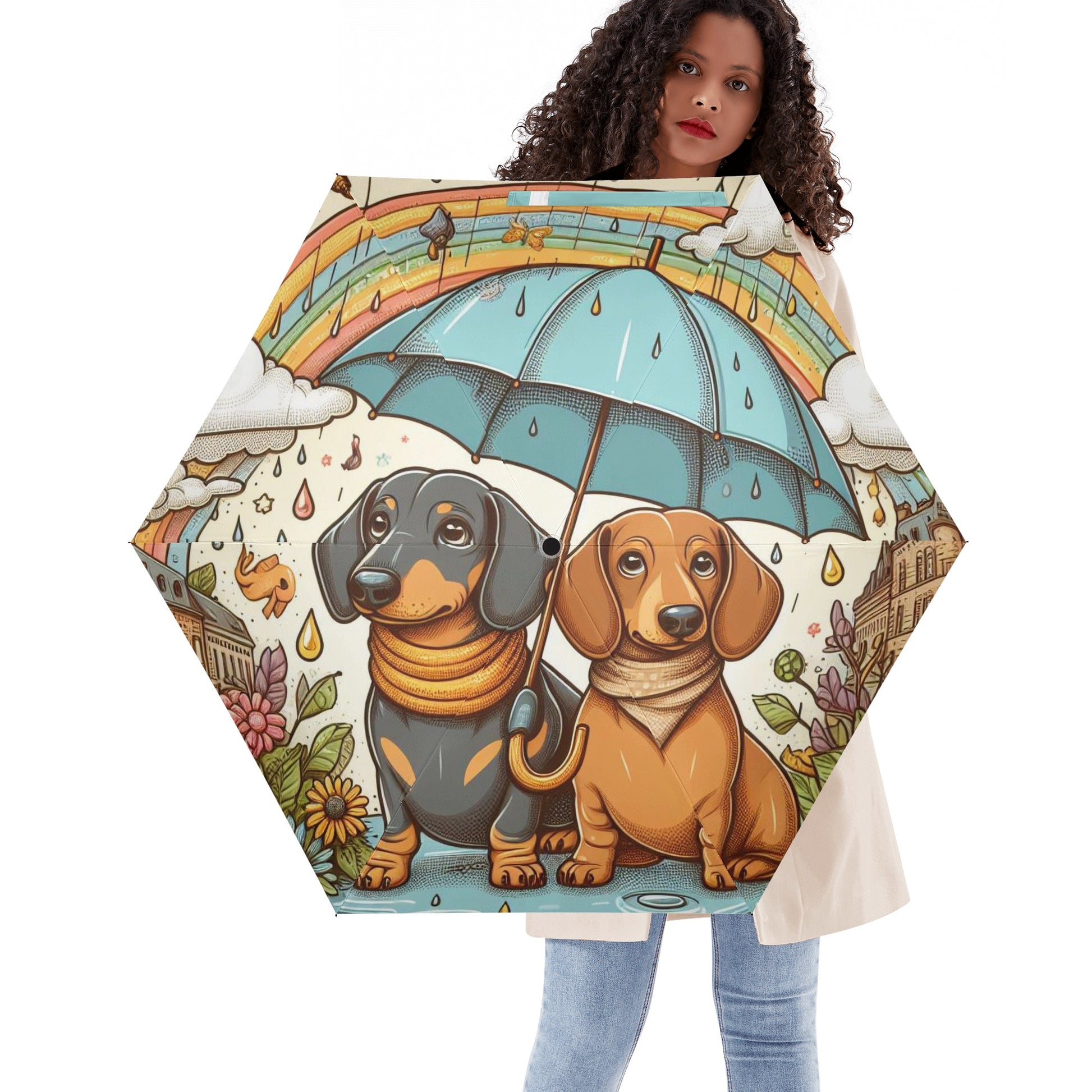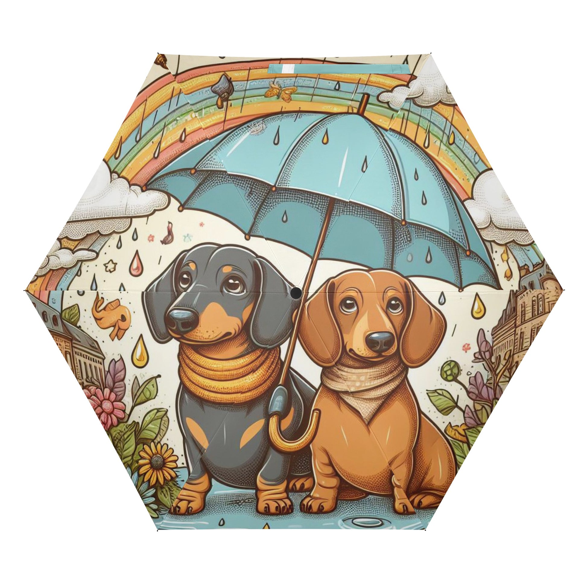 El paraguas se compone de 6 piezas, cada una con un bonito estampado de perro salchicha. También puedes personalizar el cinturón y la funda para que coincidan con tu estilo y preferencia. El paraguas tiene un mecanismo de apertura y cierre automático y un mango de agarre cómodo. Puedes abrirlo y cerrarlo con una mano y disfrutar de una experiencia cómoda y fluida.