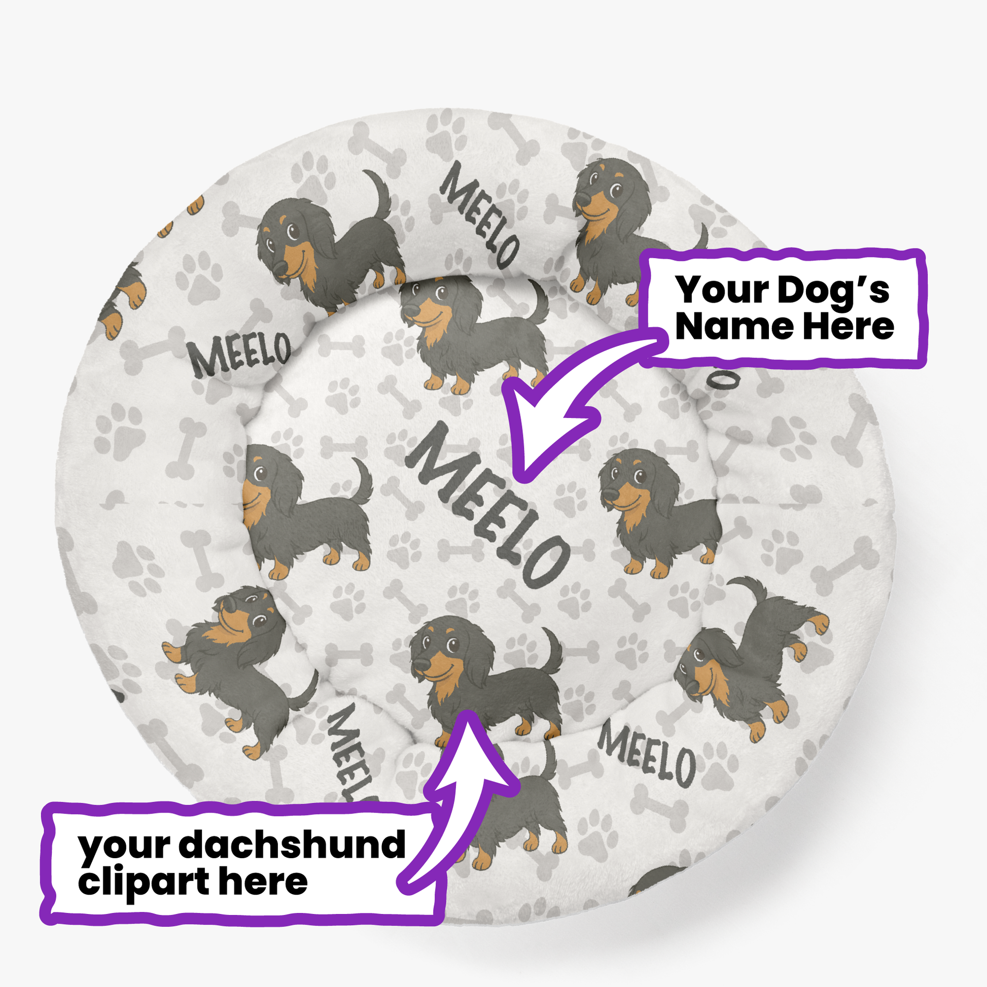 Hans - Personalized Cloud-Comfort Large Dachshund Bed | Anti-Anxiety Donut Bed for Dachshunds