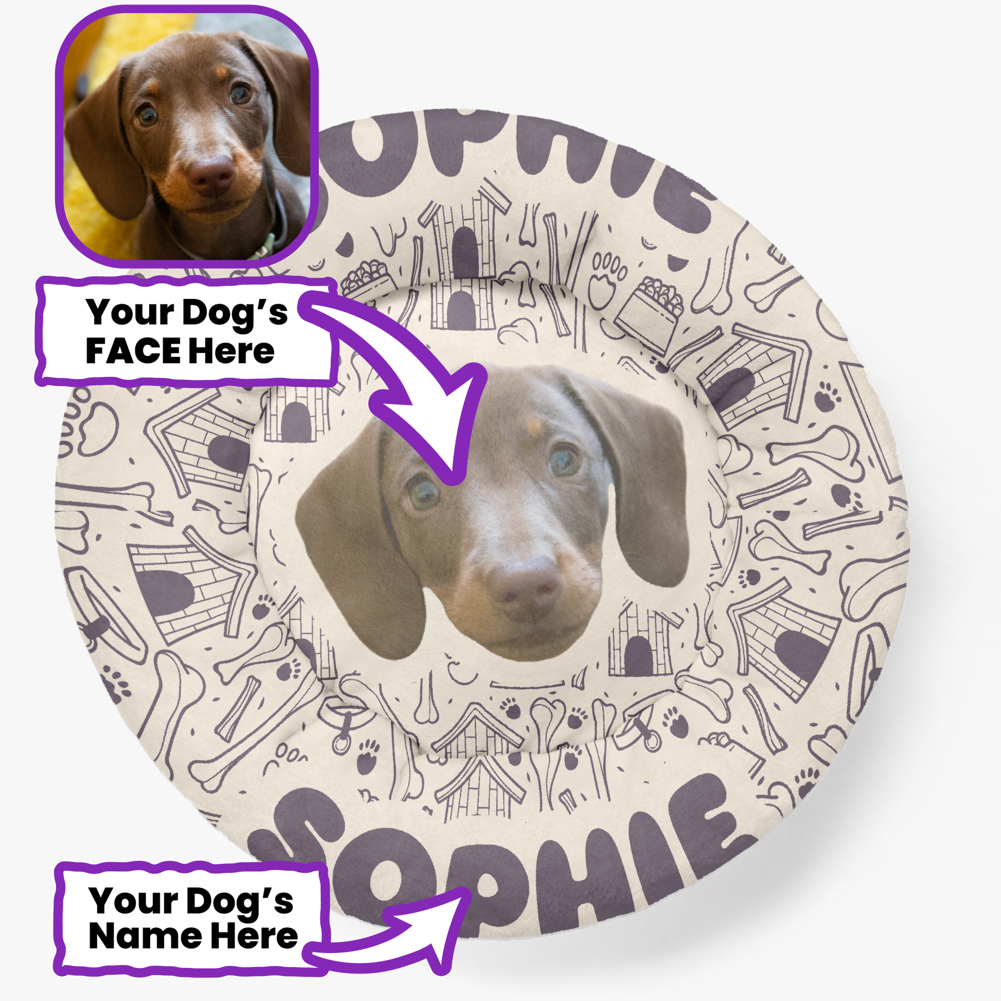 Daphne - Personalized Cloud-Comfort Large Dachshund Bed | Anti-Anxiety Donut Bed for Dachshunds