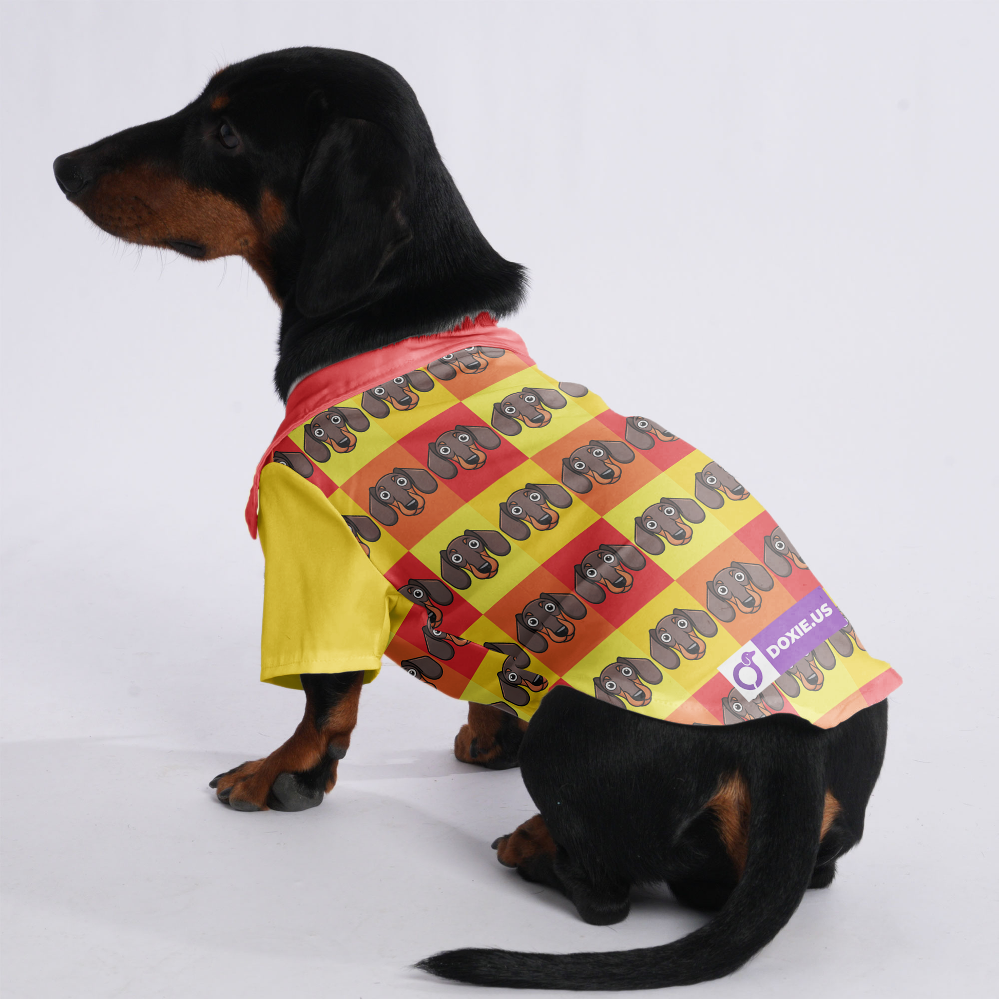 Give your dachshund a taste of the tropics with this stylish and comfortable Hawaiian shirt! Made from breathable, four-way stretch fabric (95% polyester, 5% spandex), it’s perfect for warm-weather adventures. With vibrant colors, your pup will be the star of any outing.