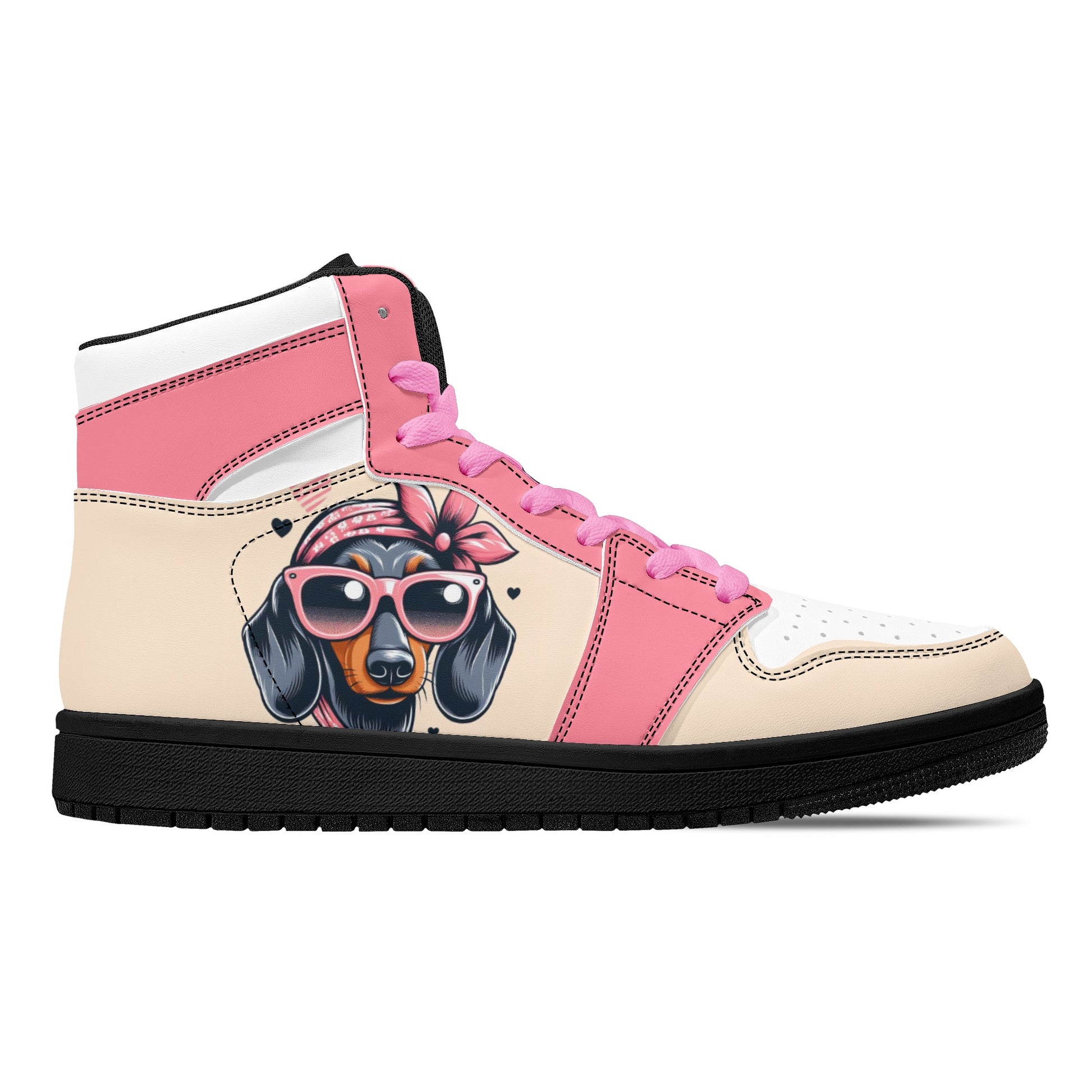 Si es así, te encantarán estos zapatos personalizados con estampado integral que presentan lindas cabezas de perro salchicha en varios colores y patrones.