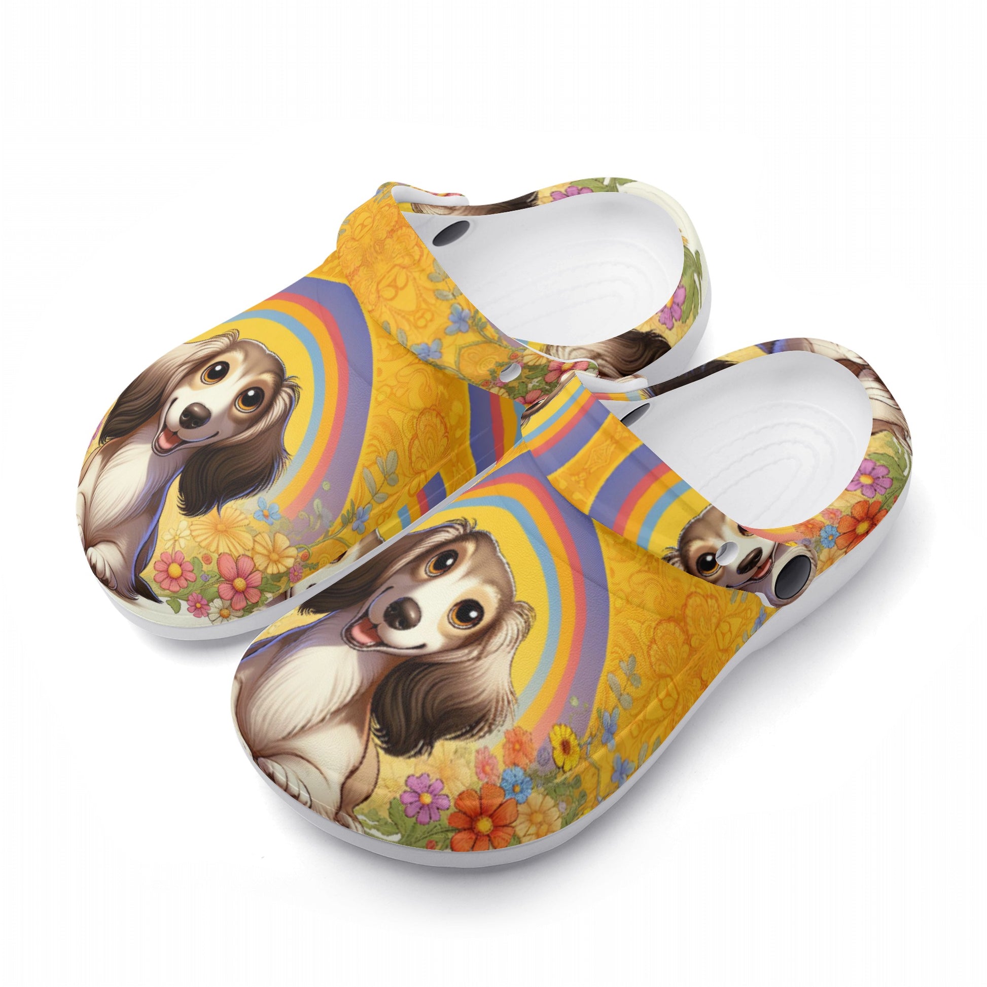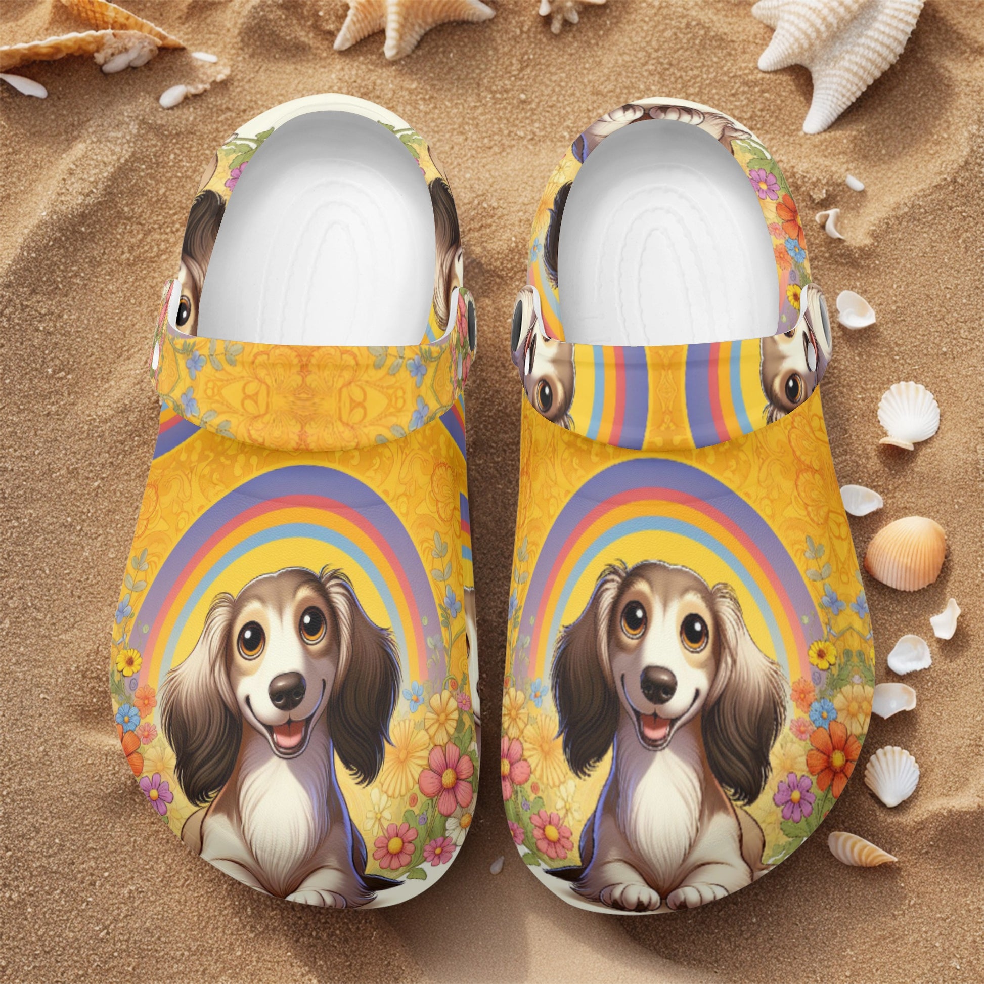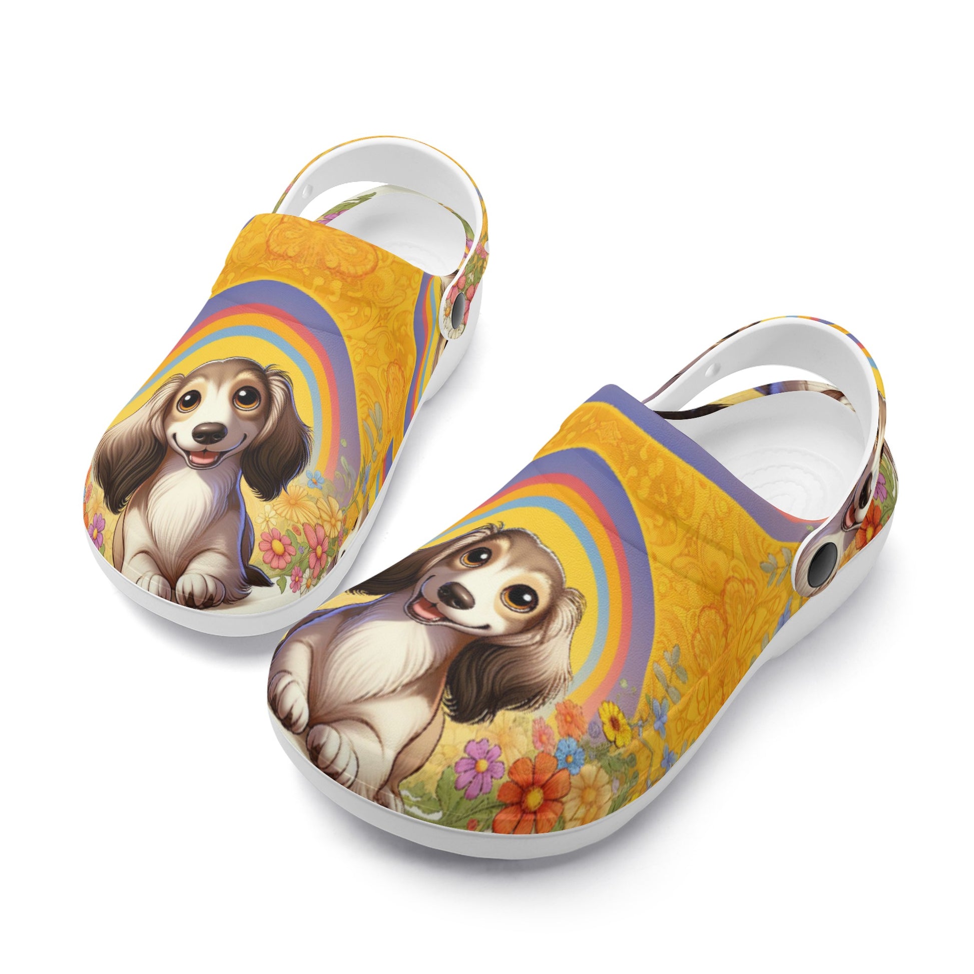 Si estás buscando un par de zuecos cómodos y elegantes que muestren tu amor por los perros salchicha, ¡te encantarán estos zuecos impresos personalizados con varias imágenes de perros salchicha!