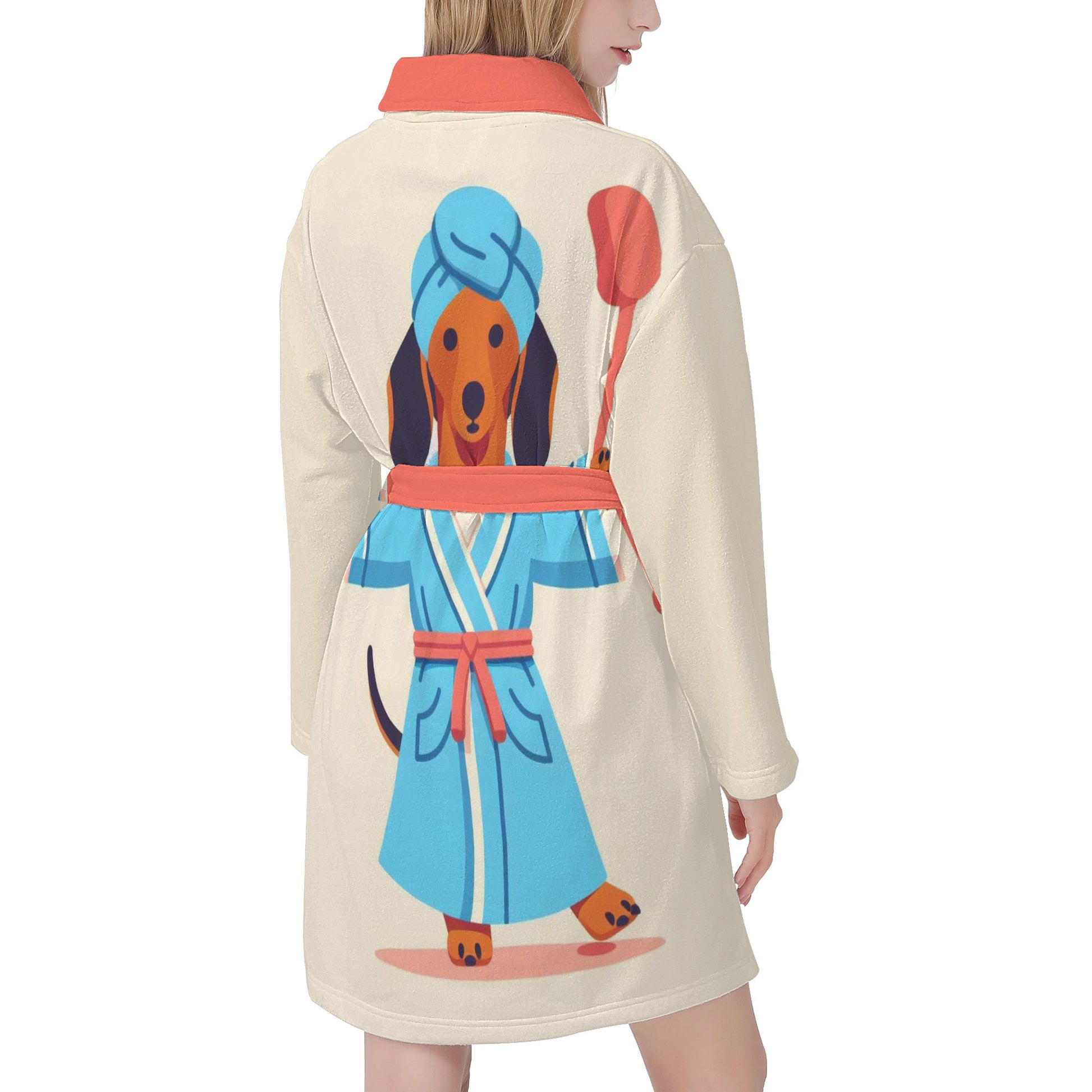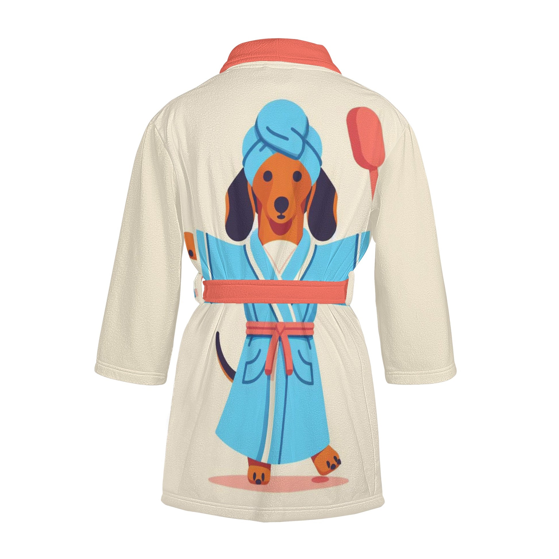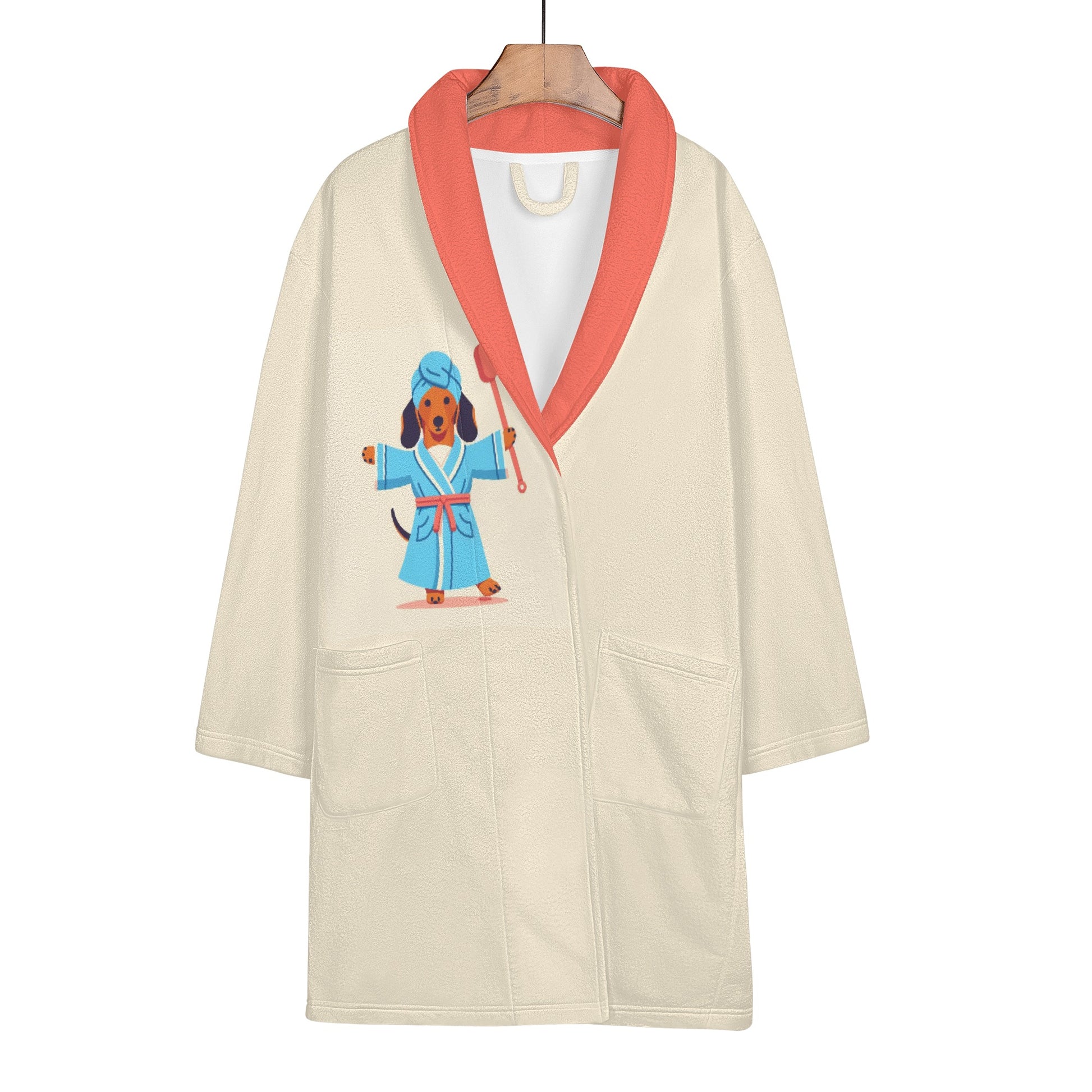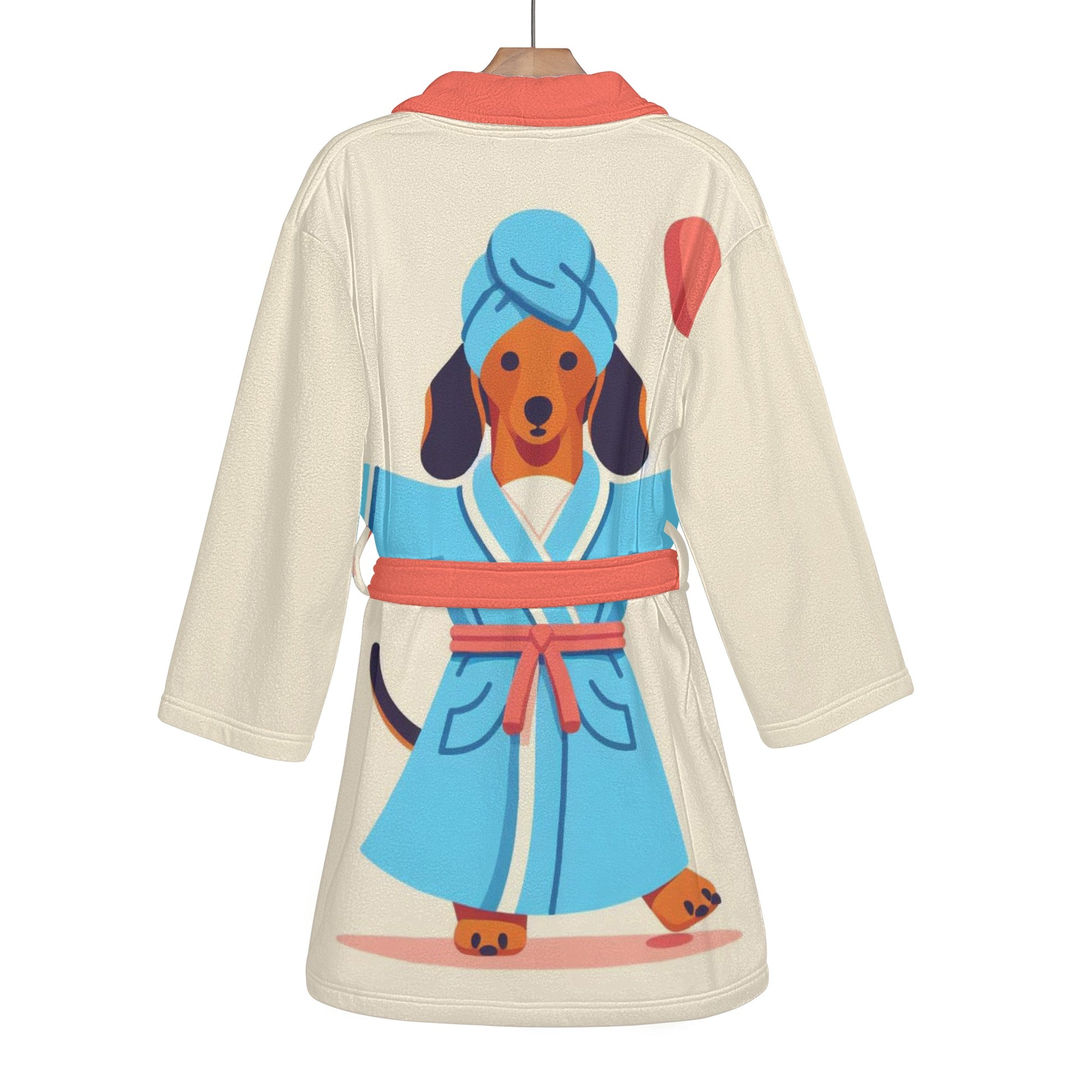 Envuélvete en una comodidad acogedora con esta adorable bata de baño para los amantes de los perros salchicha. Esta bata de baño presenta un lindo patrón de perros salchicha en varios colores y poses, perfecta para cualquier amante de los perros.