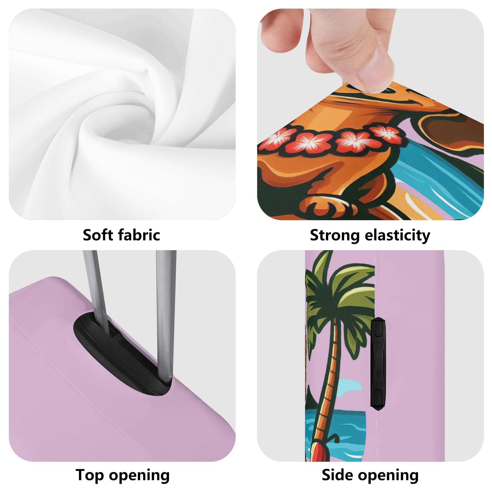 - Esta funda está hecha de poliéster y fibra de lona que es resistente, lavable y elástica. Se adapta perfectamente a tu maleta y la protege de la suciedad y los arañazos.