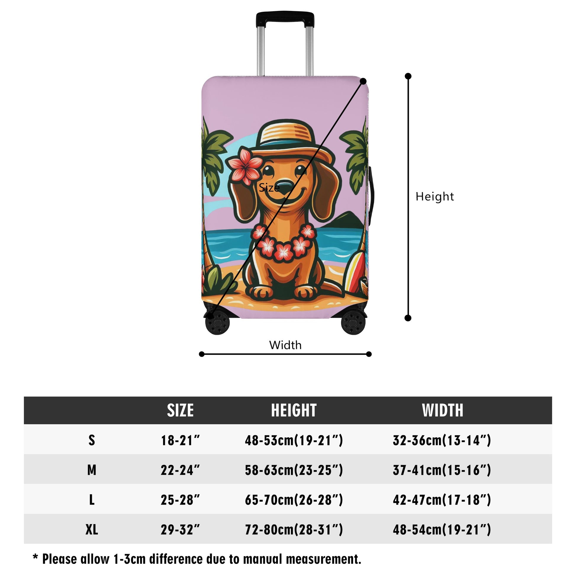 - La funda también presenta un encantador estampado de Dachshund en ambos lados que hará que su equipaje destaque y muestre su amor por estos lindos perros.