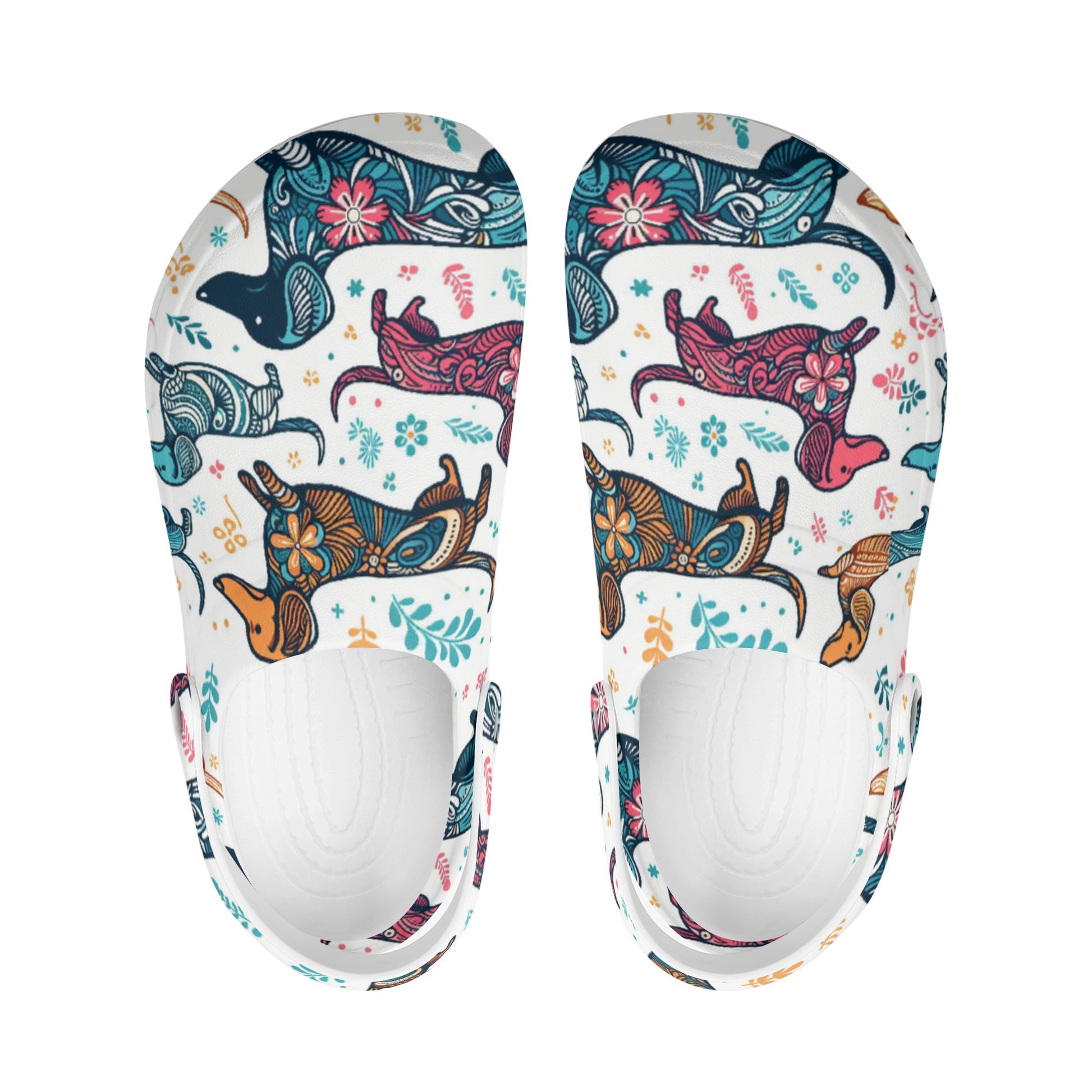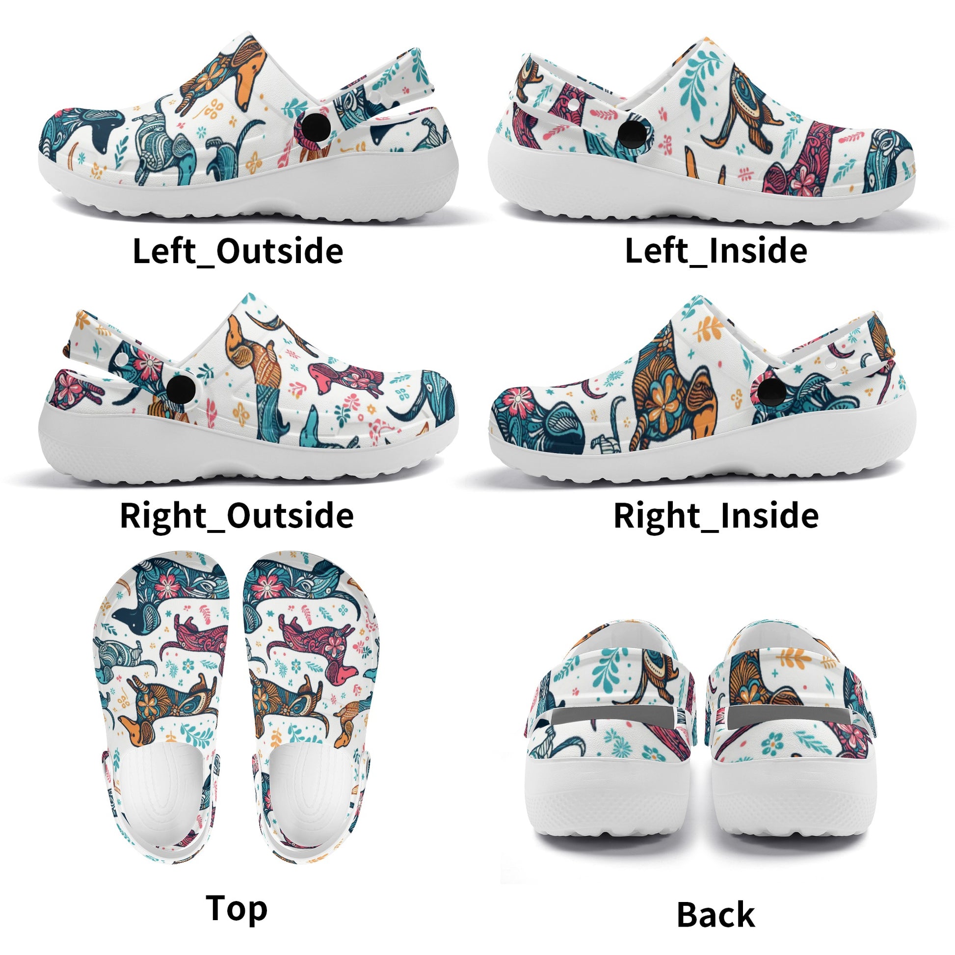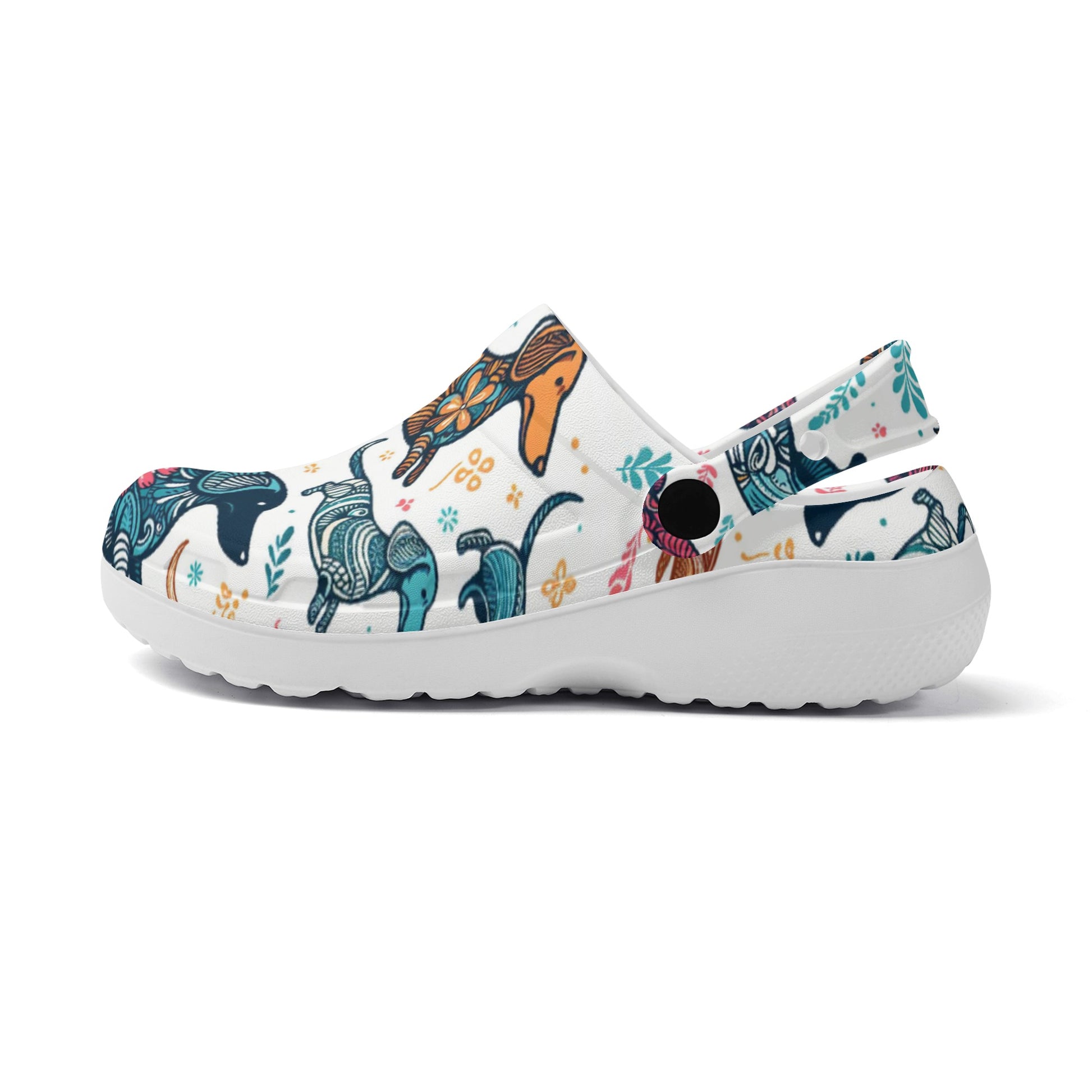 Si estás buscando un par de zuecos cómodos y elegantes que muestren tu amor por los perros salchicha, ¡te encantarán estos zuecos impresos personalizados con varias imágenes de perros salchicha!