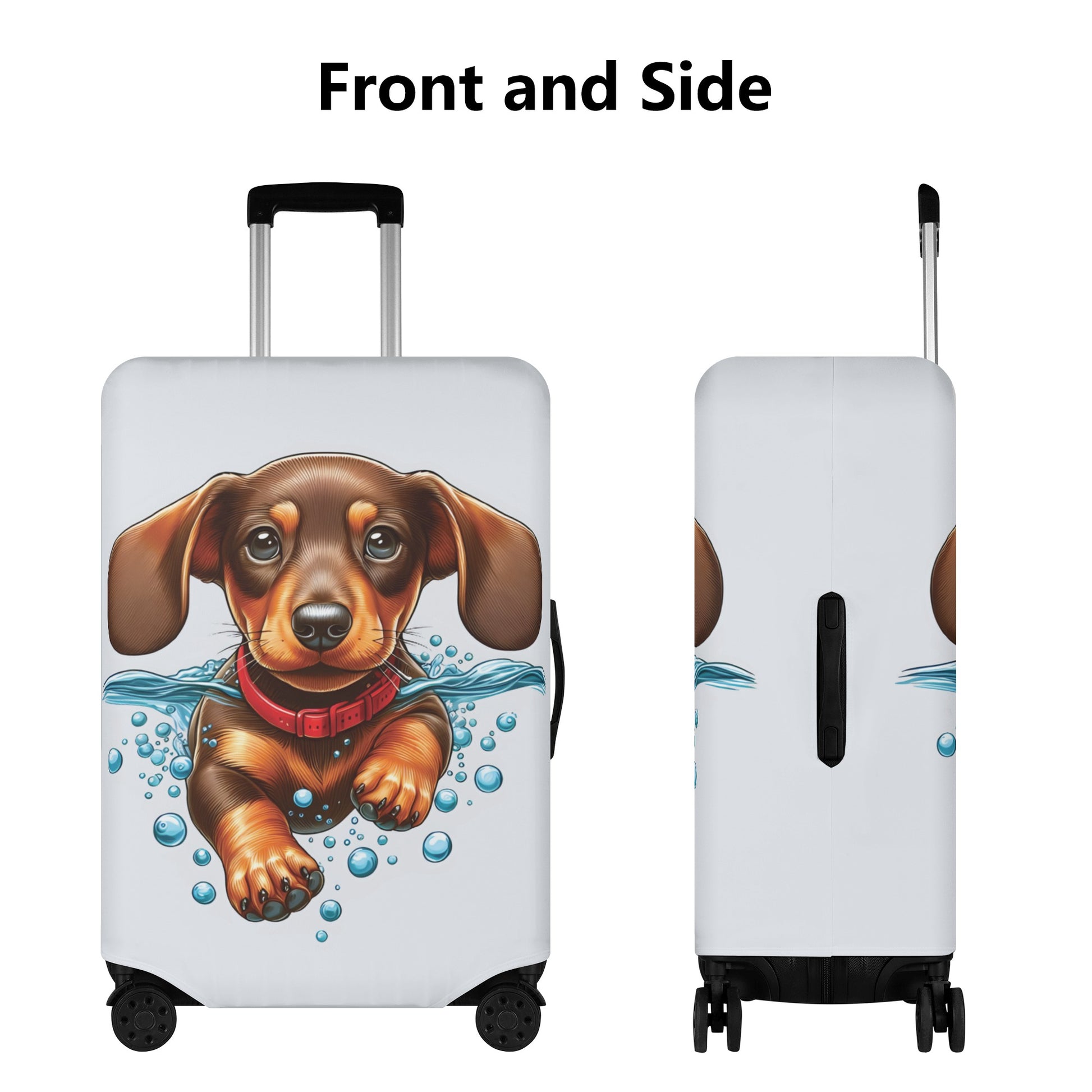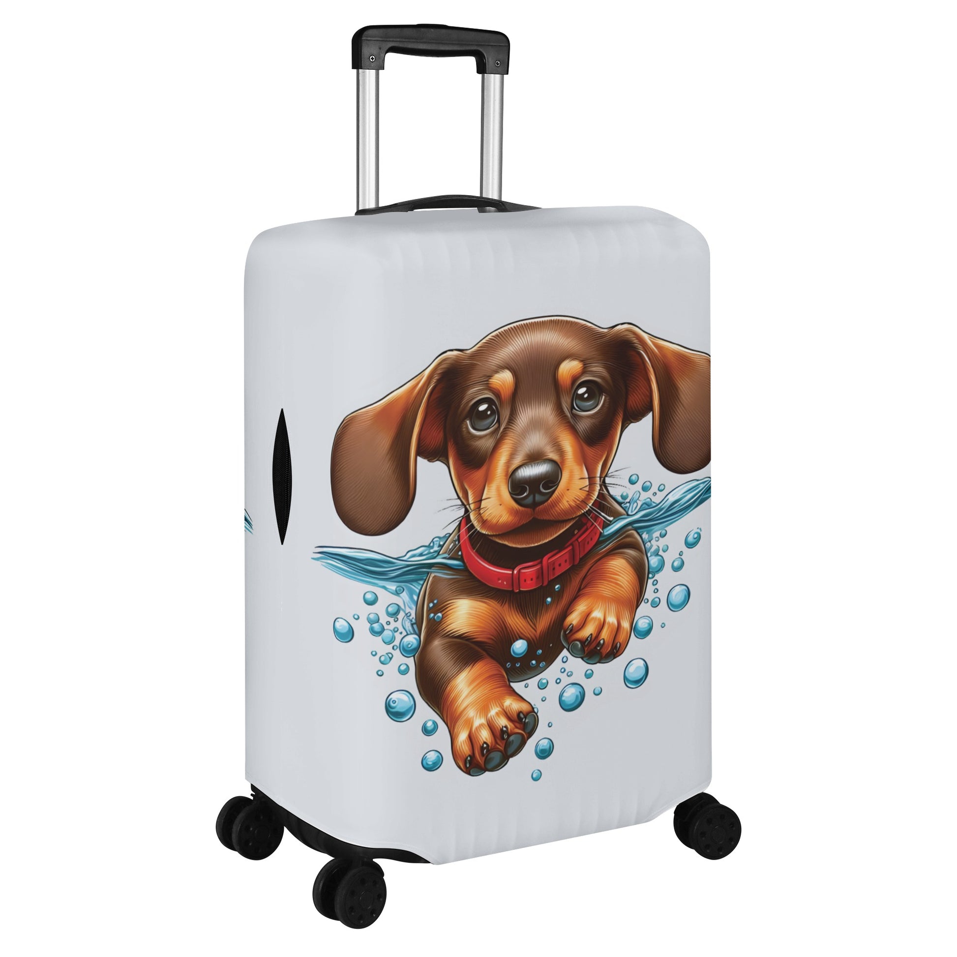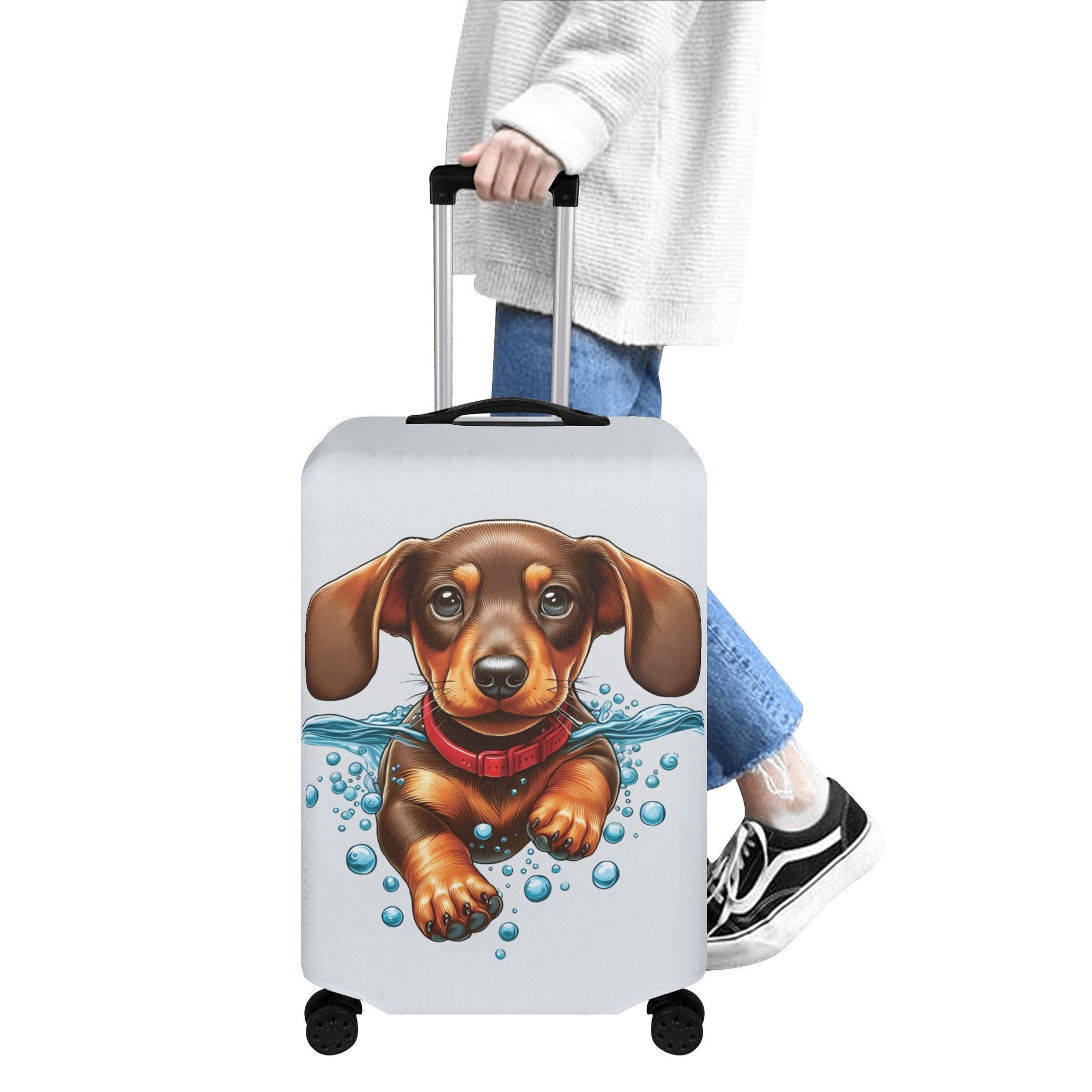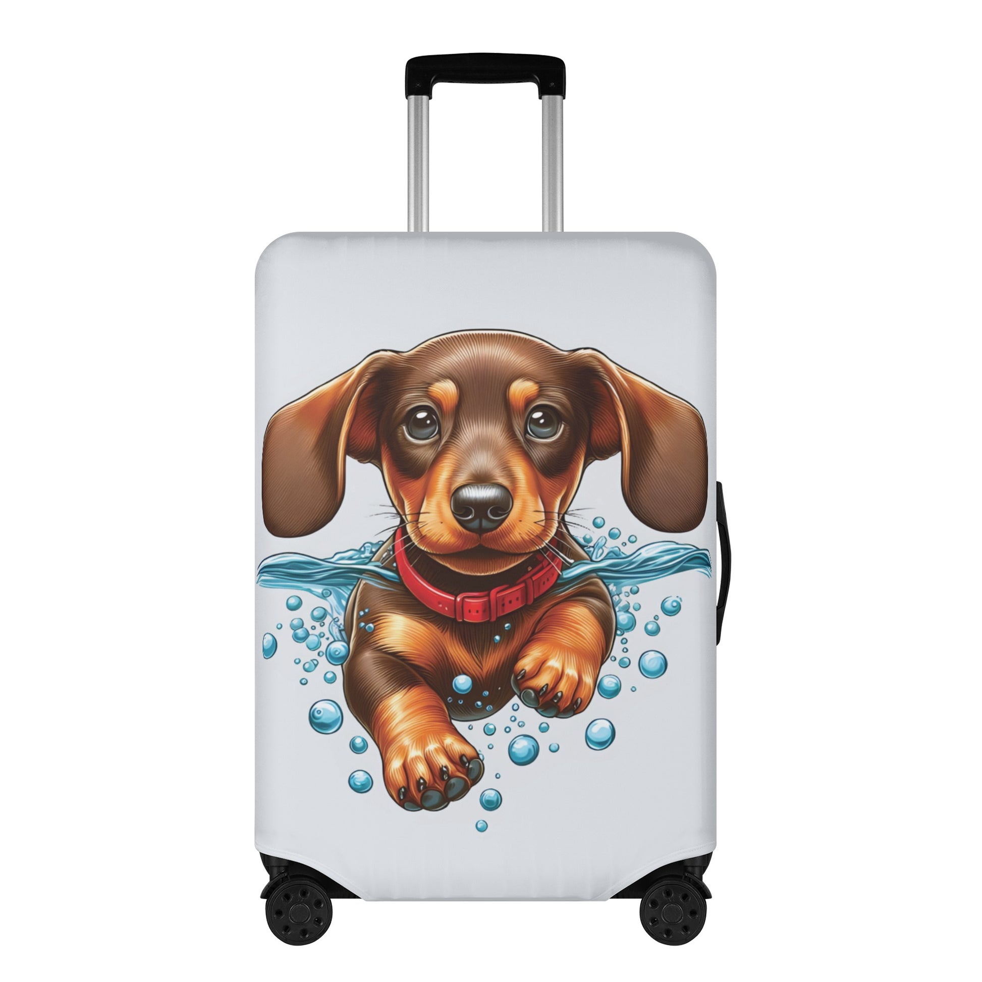 Abrace los viajes con nuestra funda para equipaje con temática de Dachshund . Fabricada con una mezcla duradera de poliéster y lona, protege contra el desgaste de los viajes y las inclemencias del tiempo. Disponible en tallas S a XL, se adapta a cada viaje.