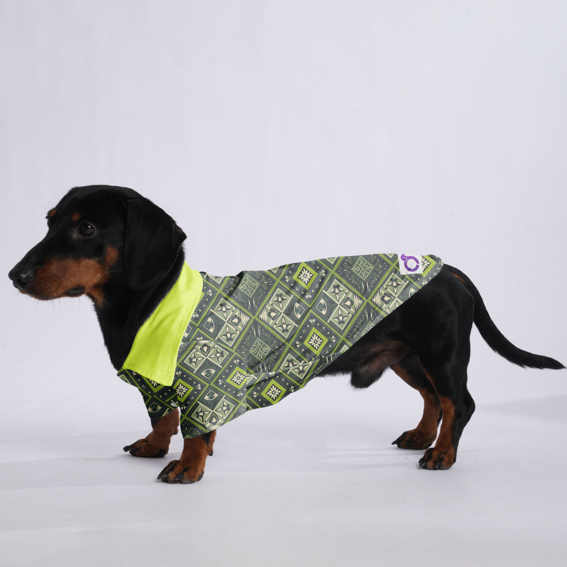 Give your dachshund a taste of the tropics with this stylish and comfortable Hawaiian shirt! Made from breathable, four-way stretch fabric (95% polyester, 5% spandex), it’s perfect for warm-weather adventures. With vibrant colors, your pup will be the star of any outing.