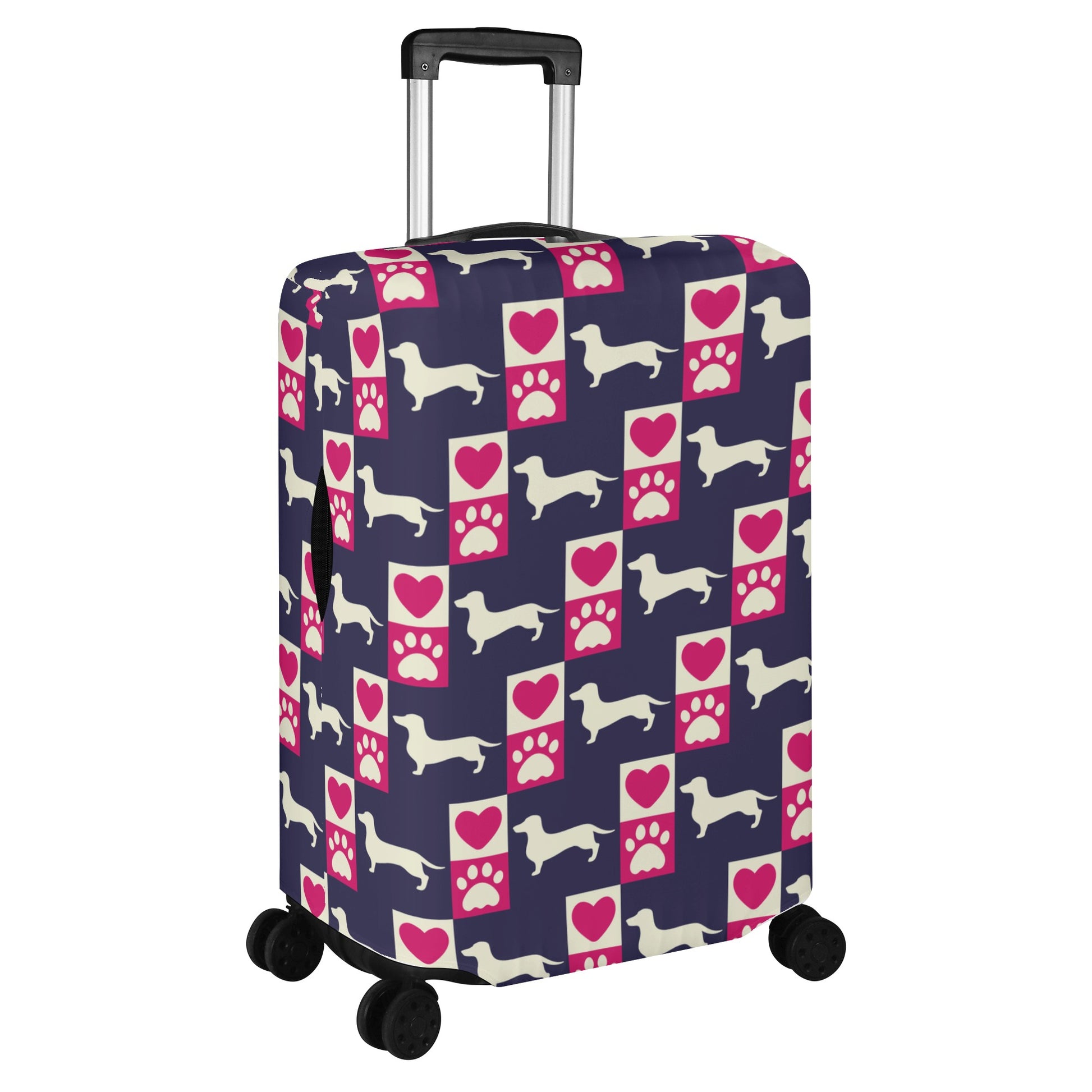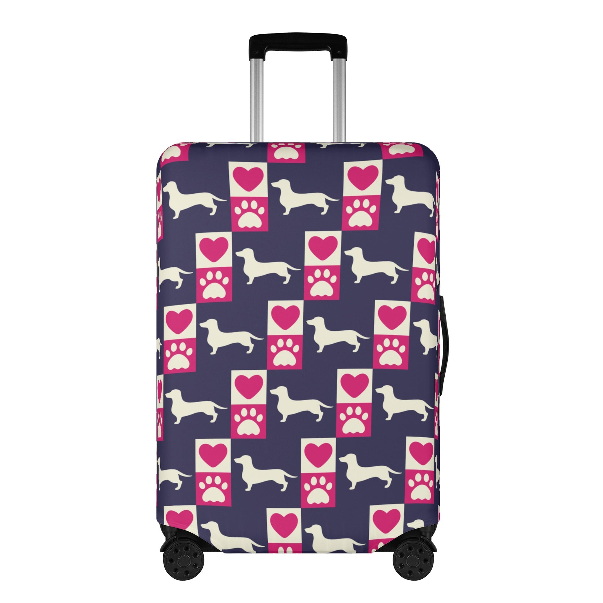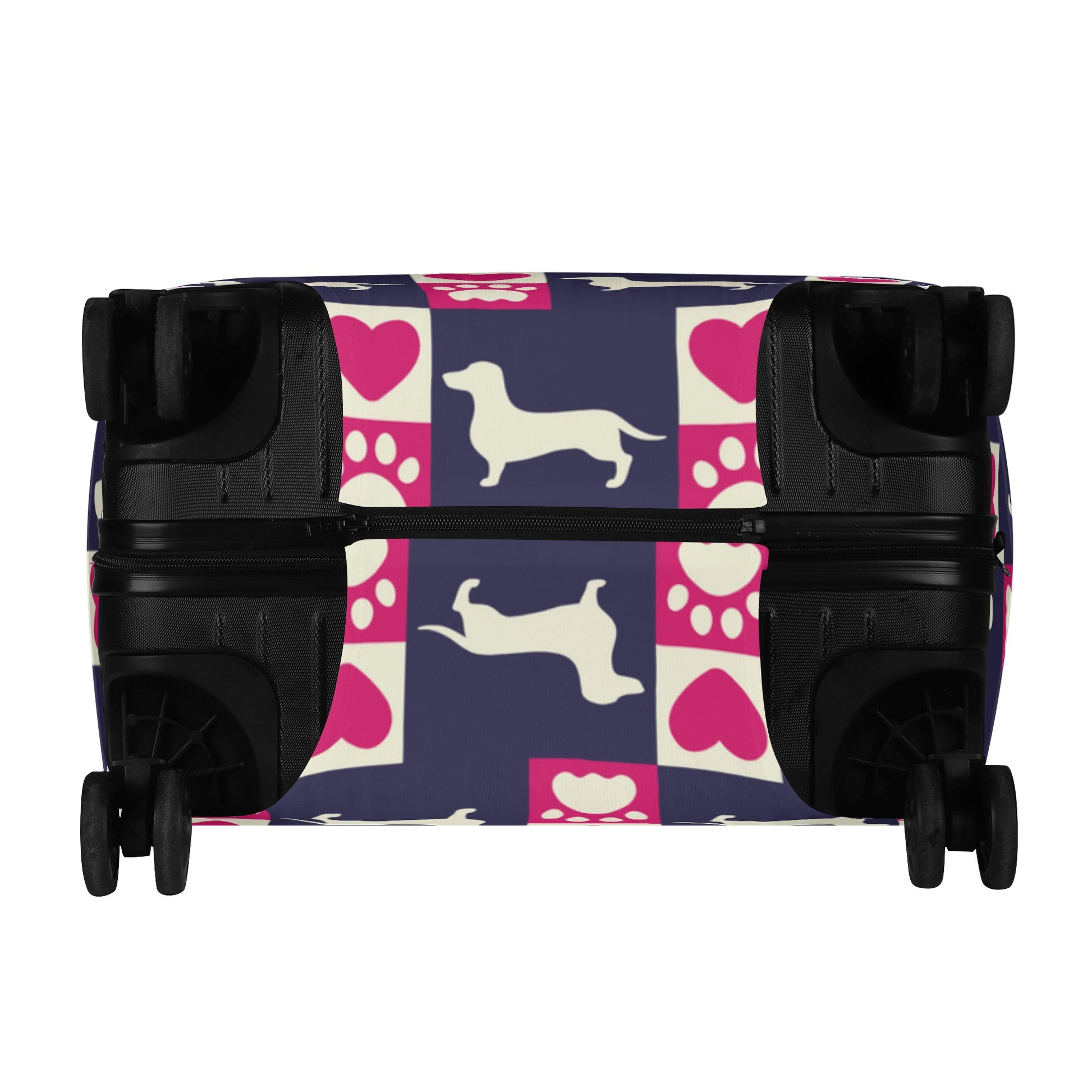 Abrace los viajes con nuestra funda para equipaje con temática de Dachshund . Fabricada con una mezcla duradera de poliéster y lona, protege contra el desgaste de los viajes y las inclemencias del tiempo. Disponible en tallas S a XL, se adapta a cada viaje.