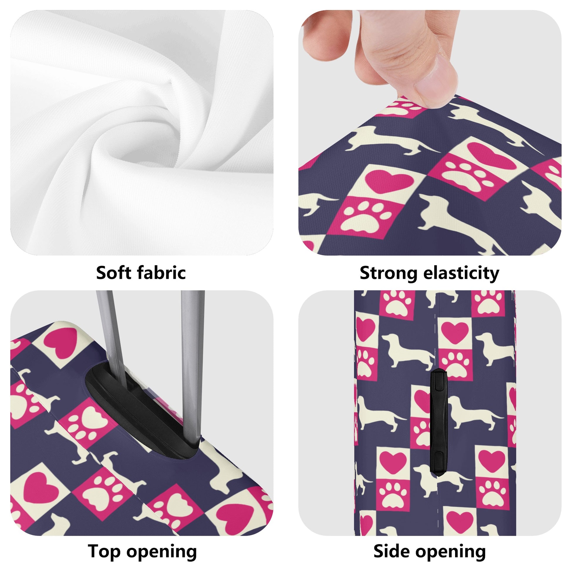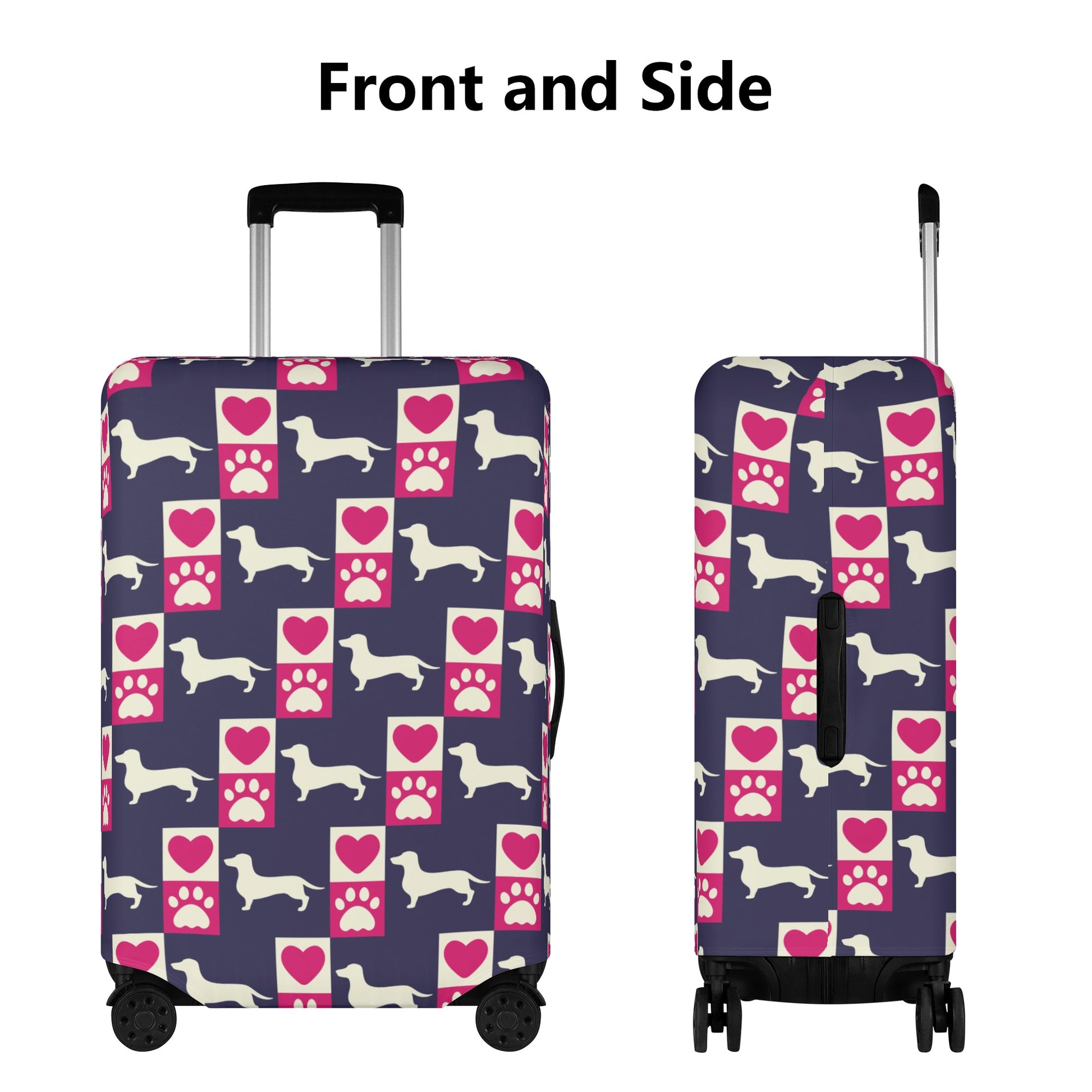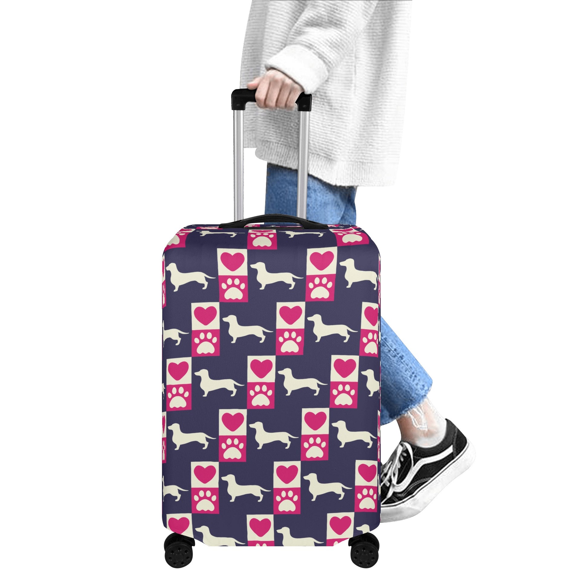 Abrace los viajes con nuestra funda para equipaje con temática de Dachshund . Fabricada con una mezcla duradera de poliéster y lona, protege contra el desgaste de los viajes y las inclemencias del tiempo. Disponible en tallas S a XL, se adapta a cada viaje.