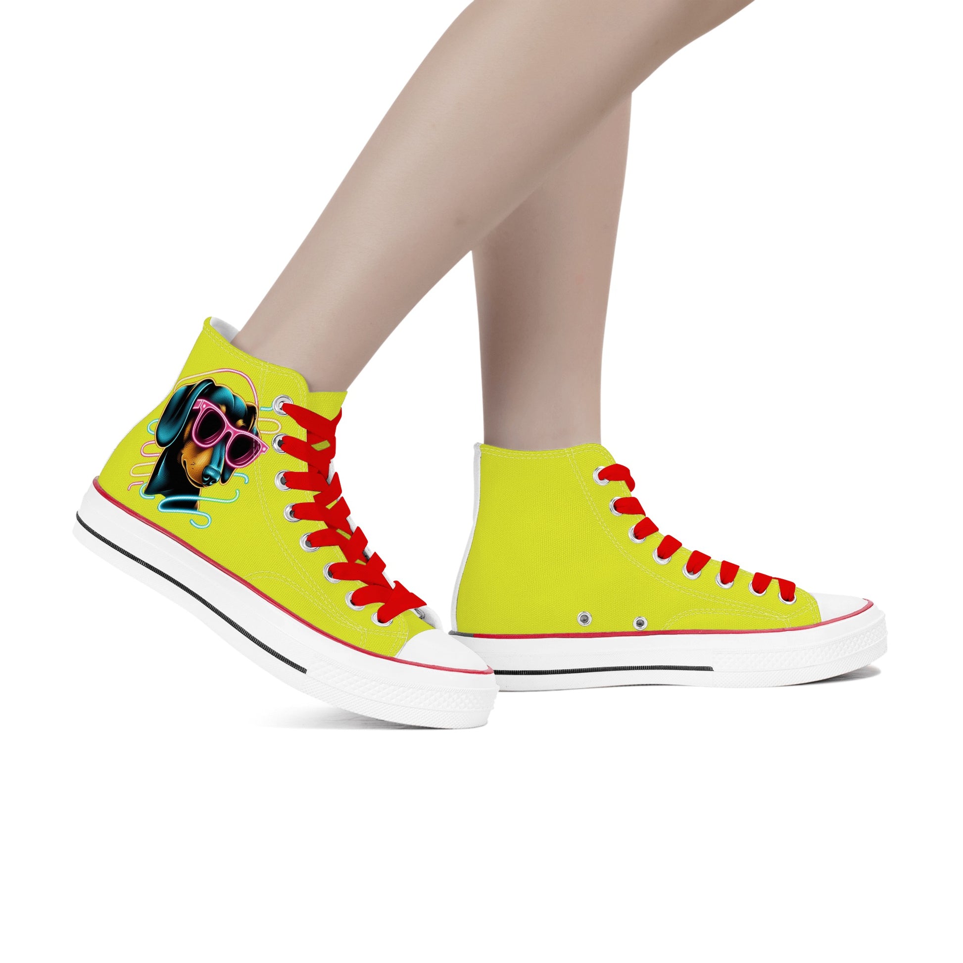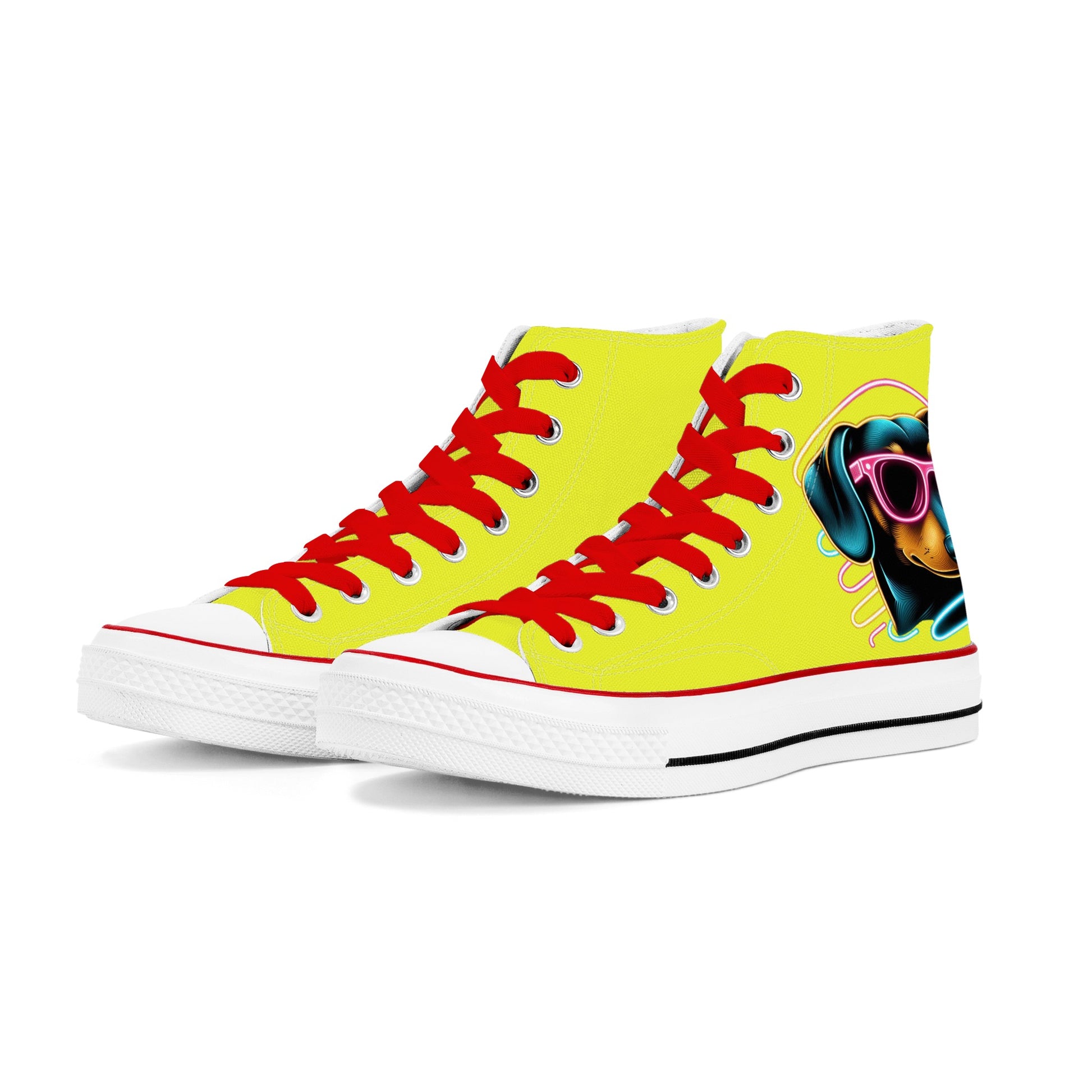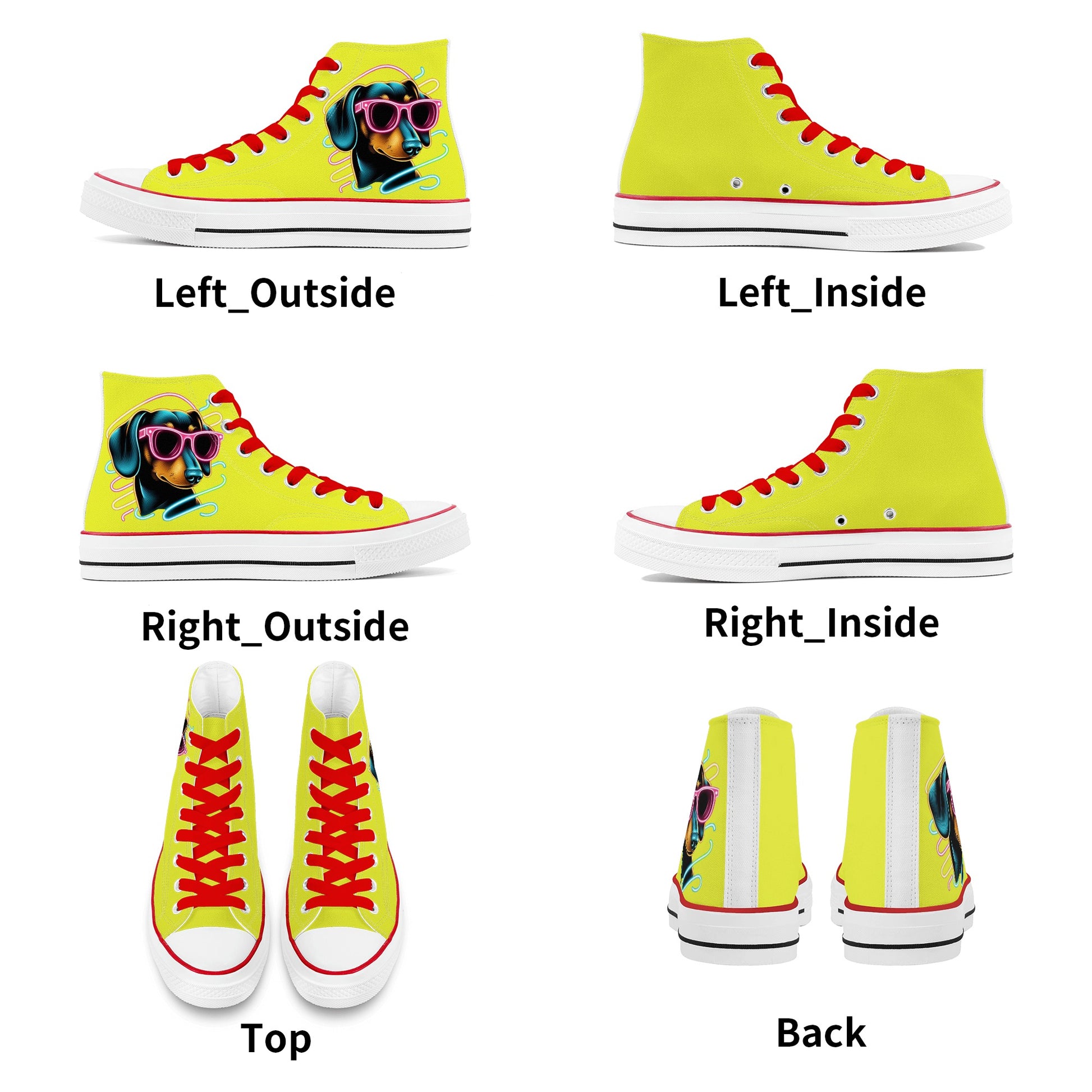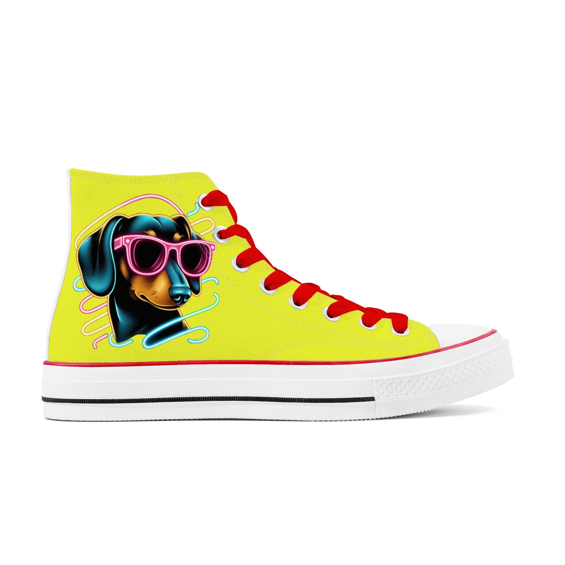 Si te encantan los perros salchicha, los perros encantadores y leales con cuerpos largos y patas cortas, te encantarán estos zapatos personalizados con estampado integral que presentan un divertido diseño de perro salchicha.