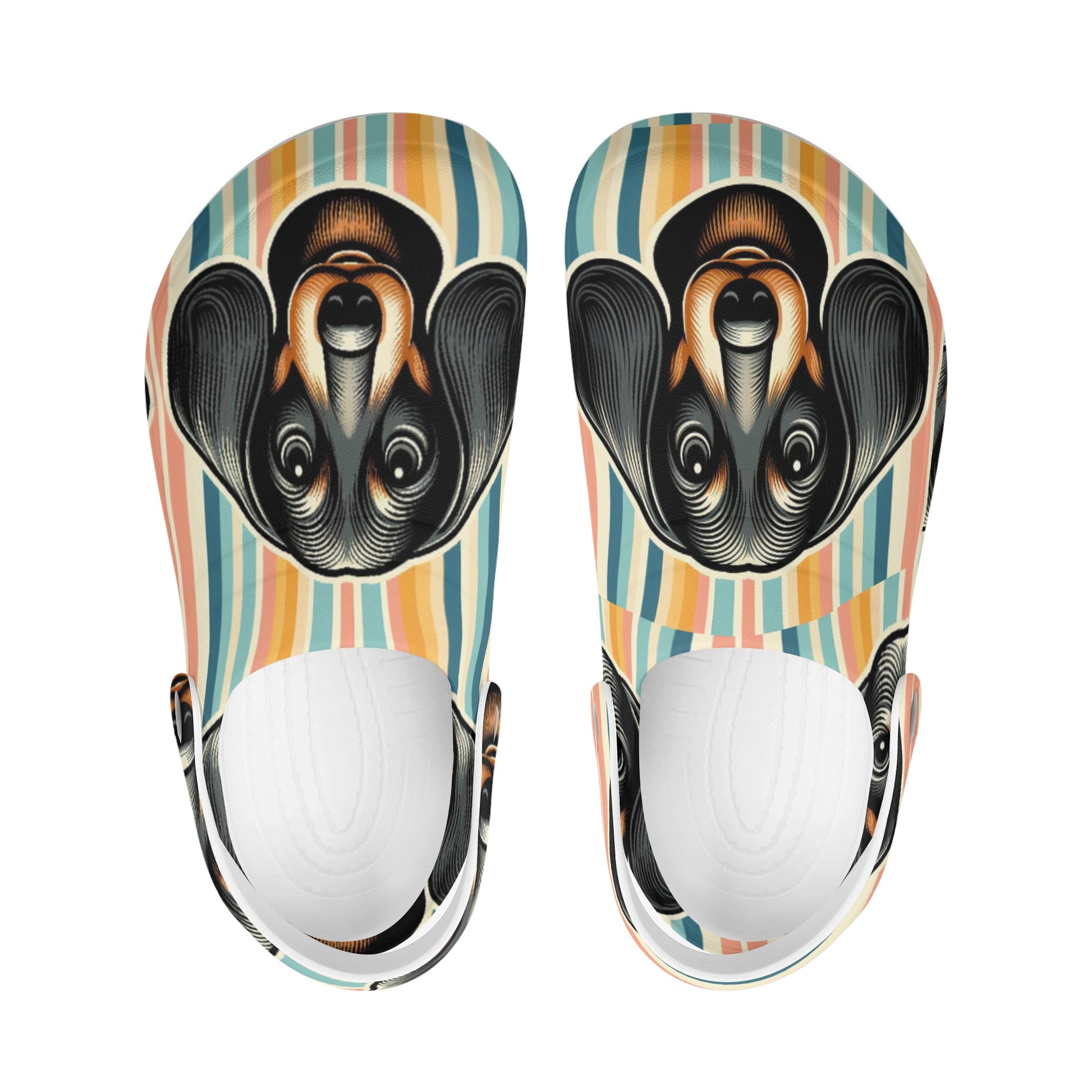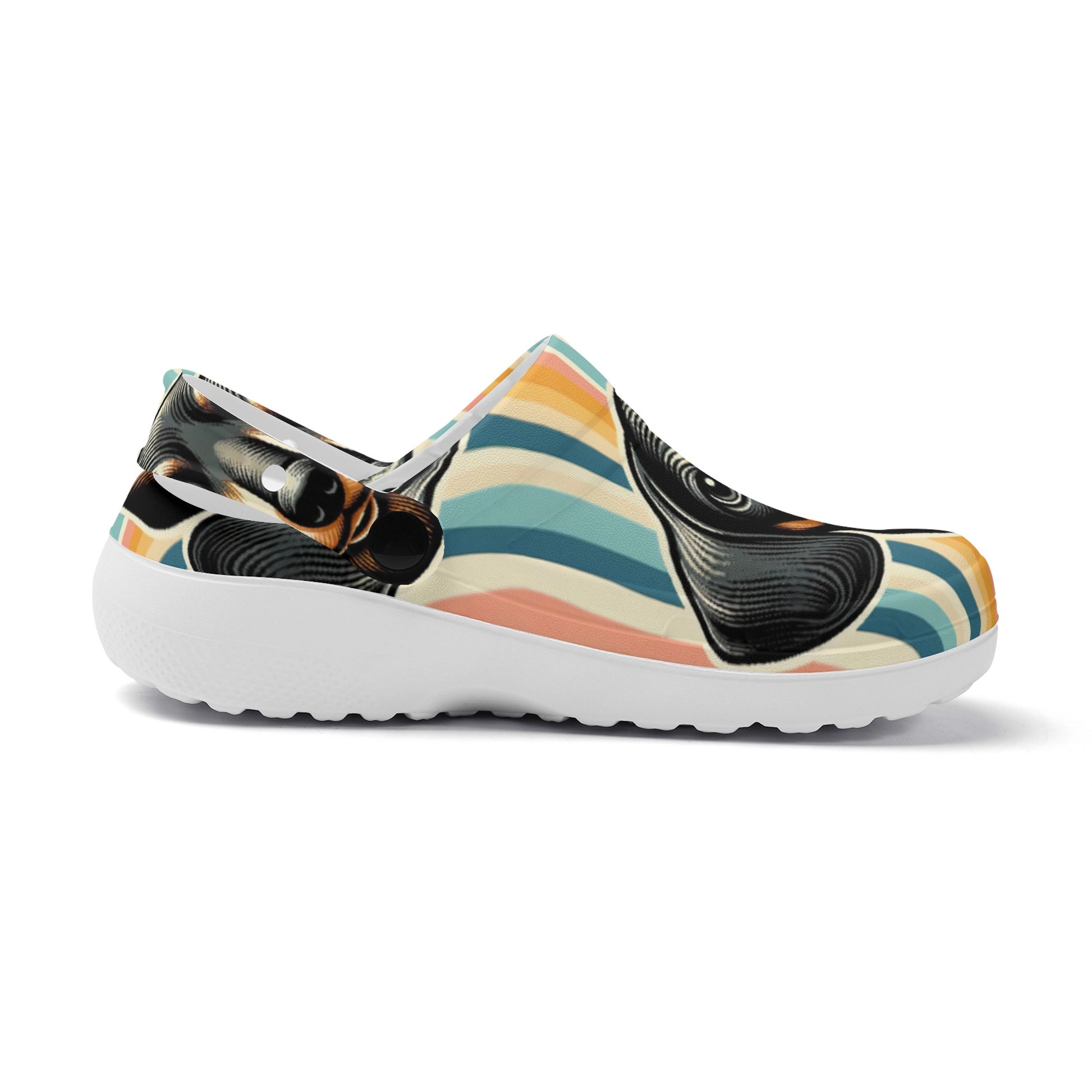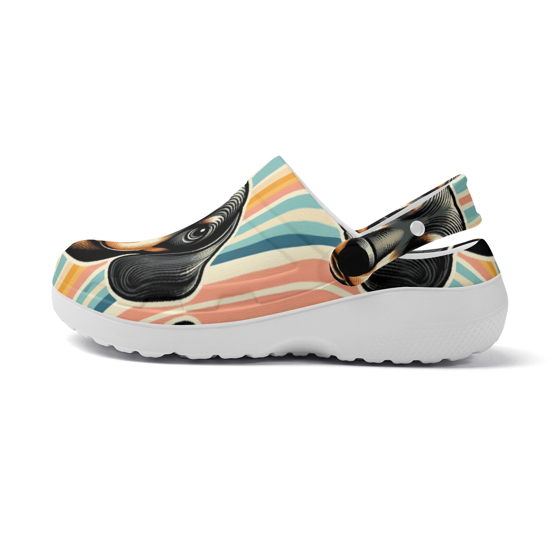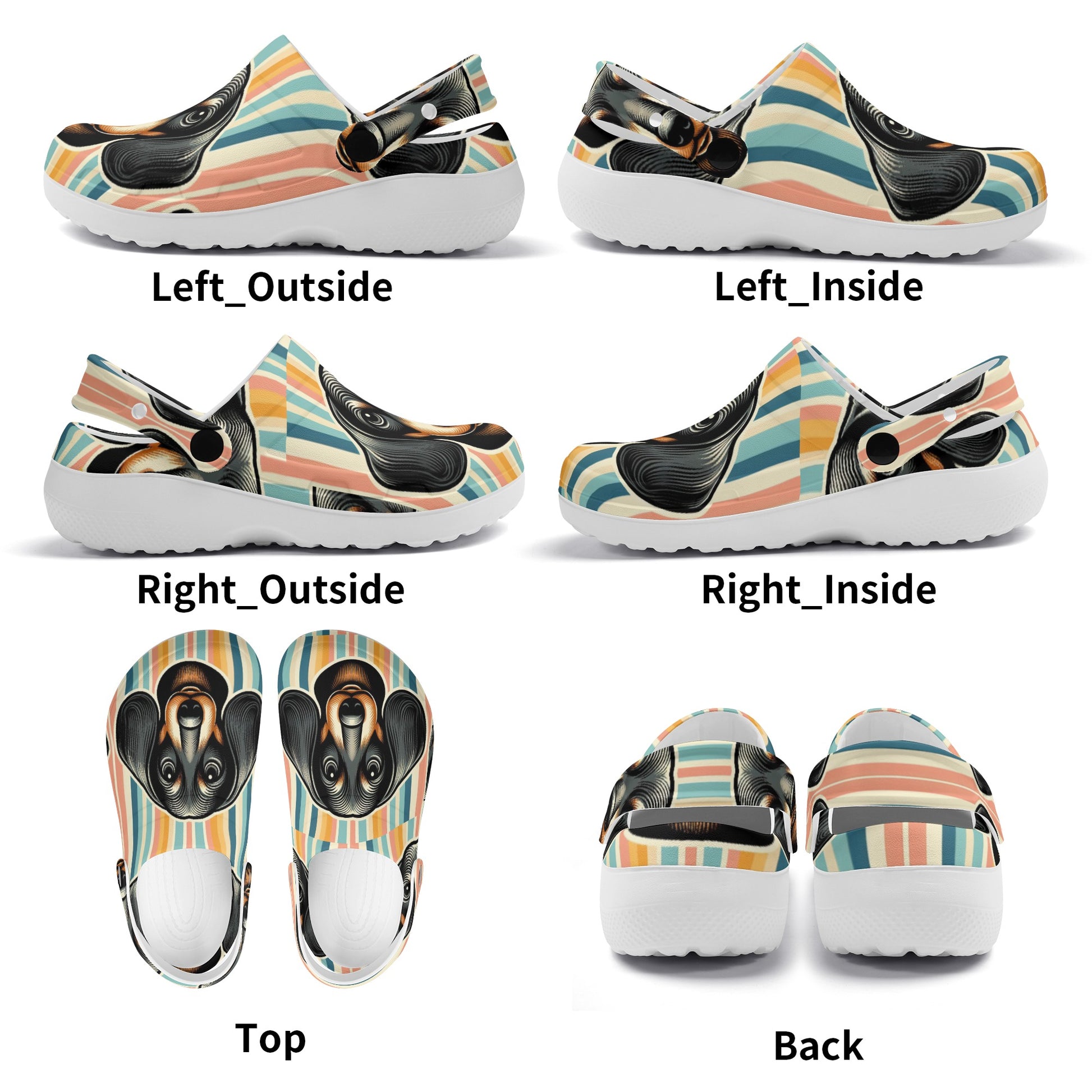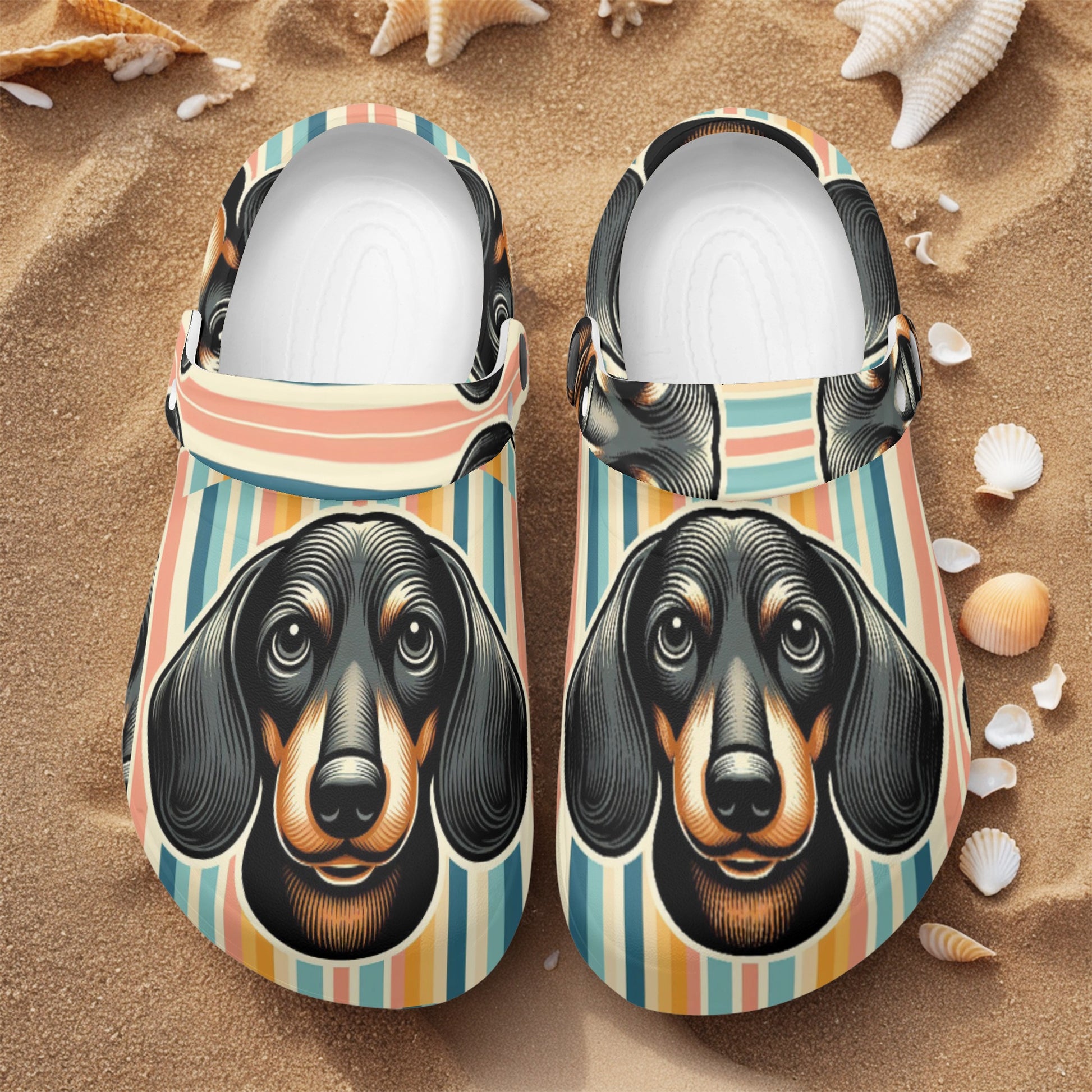 Si estás buscando un par de zuecos cómodos y elegantes que muestren tu amor por los perros salchicha, ¡te encantarán estos zuecos impresos personalizados con varias imágenes de perros salchicha!