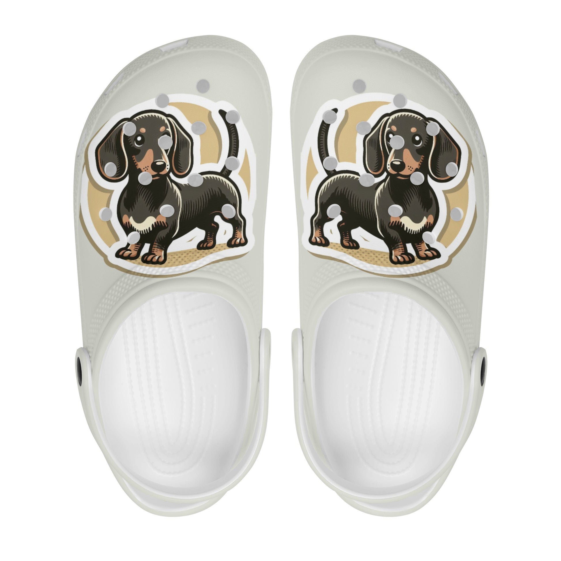 Si eres un amante de los perros salchicha, adorarás estos zuecos personalizados con estampados integrales que presentan encantadoras imágenes de perros salchicha. Estos zuecos no sólo están de moda, sino también cómodos y funcionales. Están hechos de material EVA de alta calidad que es flexible y duradero, y tienen un estilo redondeado y orificios de ventilación para mayor diversión y transpirabilidad. La correa del talón pivotante le permite ponérselos y quitárselos fácilmente y también proporciona un ajuste más seguro. La técnica de impresión por sublimación garantiza colores vibrantes e ideas creativas que harán que tus zuecos destaquen. Ya sea que los uses en casa, en el jardín o en el trabajo, estos zuecos mantendrán tus pies cómodos y tu amor por el perro salchicha fuerte. Para mantenerlos en buenas condiciones, simplemente lávelos a mano en agua fría y séquelos al aire. ¡Pide el tuyo hoy y disfruta de los elogios de otros fanáticos de los perros salchicha!