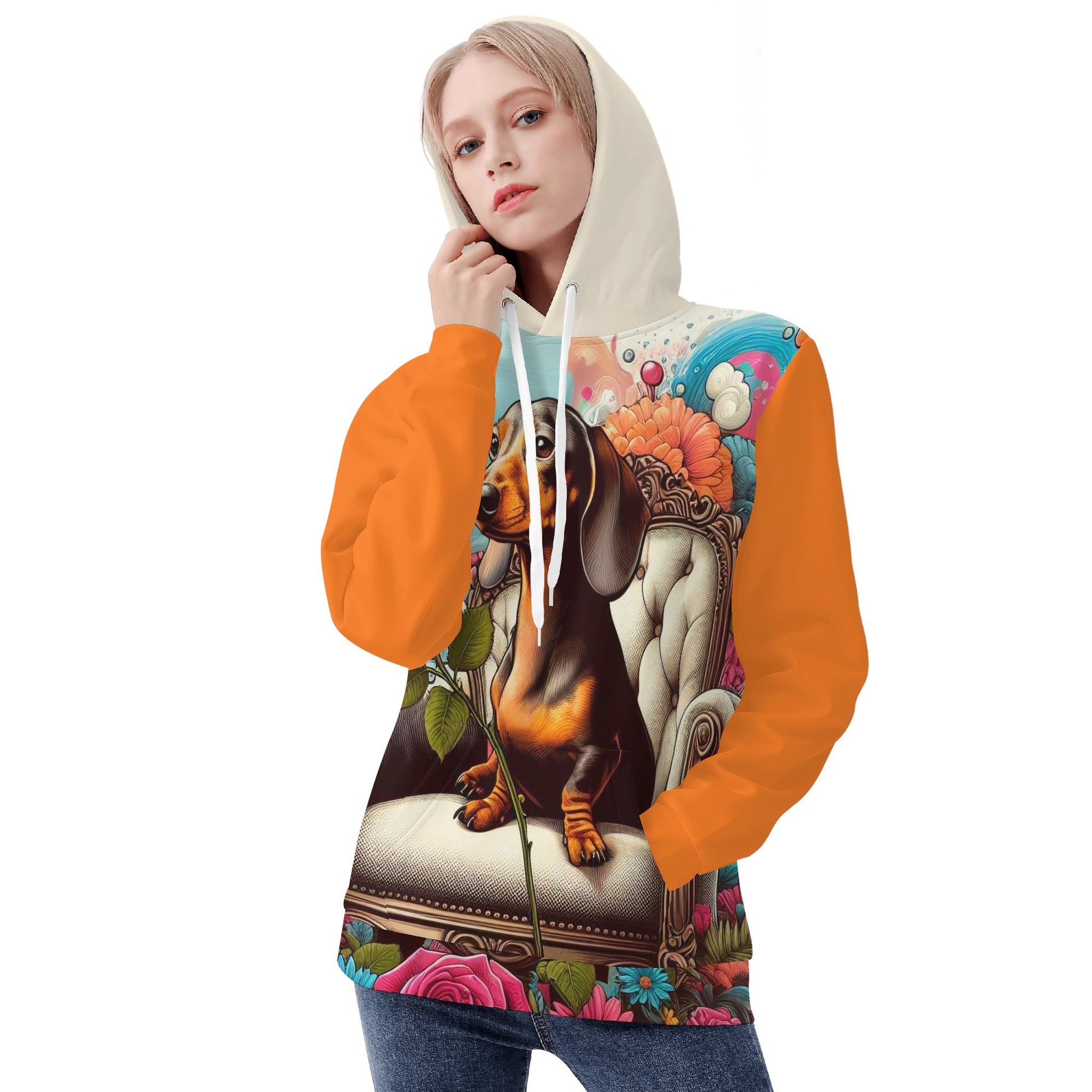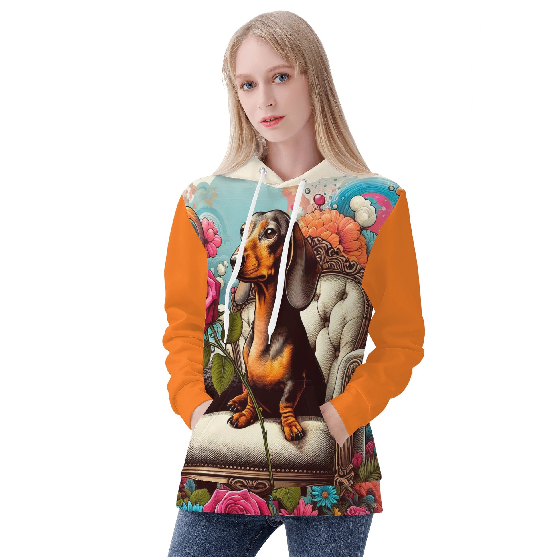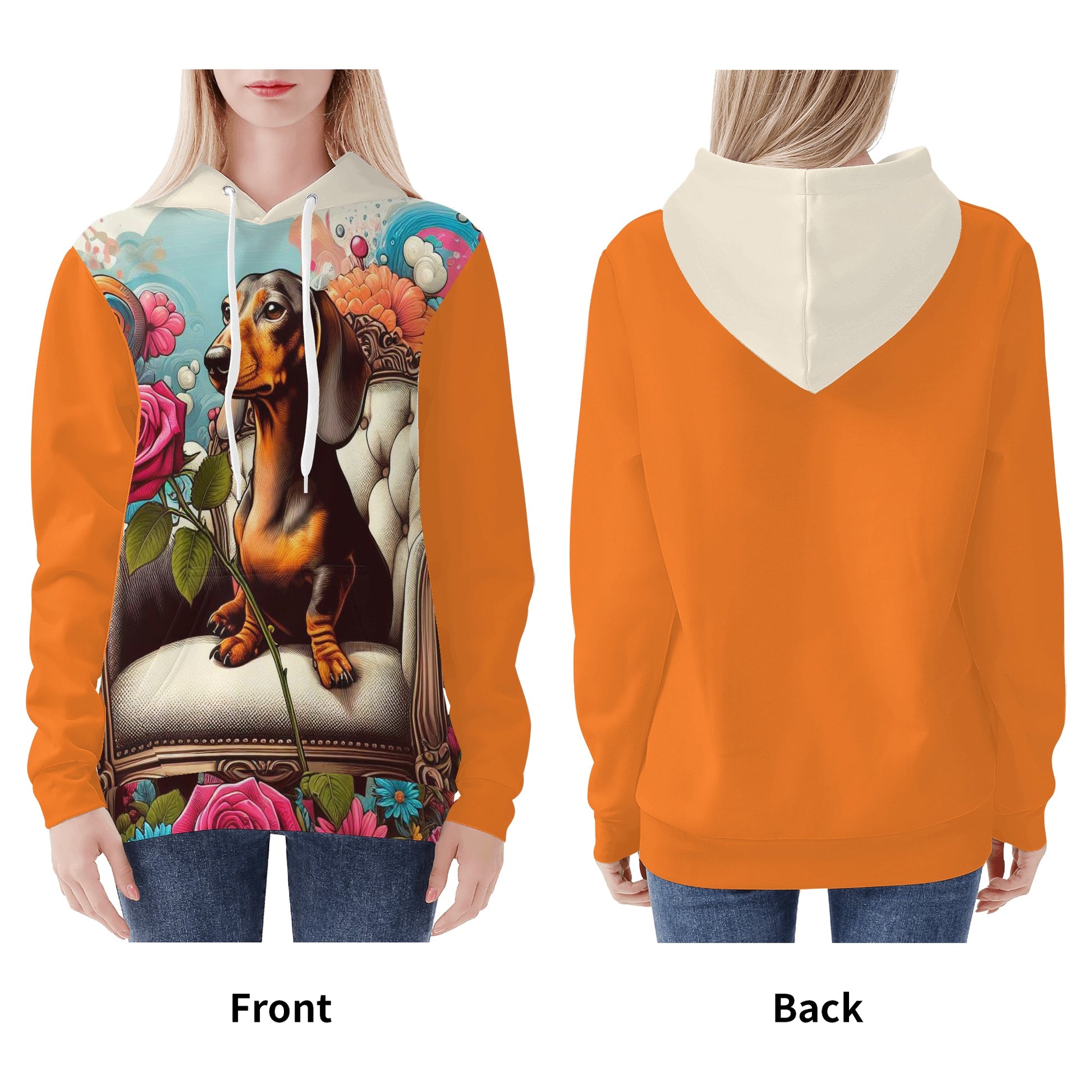 Si te encantan los perros salchicha, te encantará esta acogedora y elegante sudadera con capucha para mujer. Esta sudadera con capucha está hecha de un material de poliéster que es suave, cómodo y cálido para el uso diario. Está cortado y cosido pieza a pieza para adaptarse perfectamente a tu cuerpo. Tiene una capucha con cordones y un bolsillo canguro para mayor calidez y comodidad.