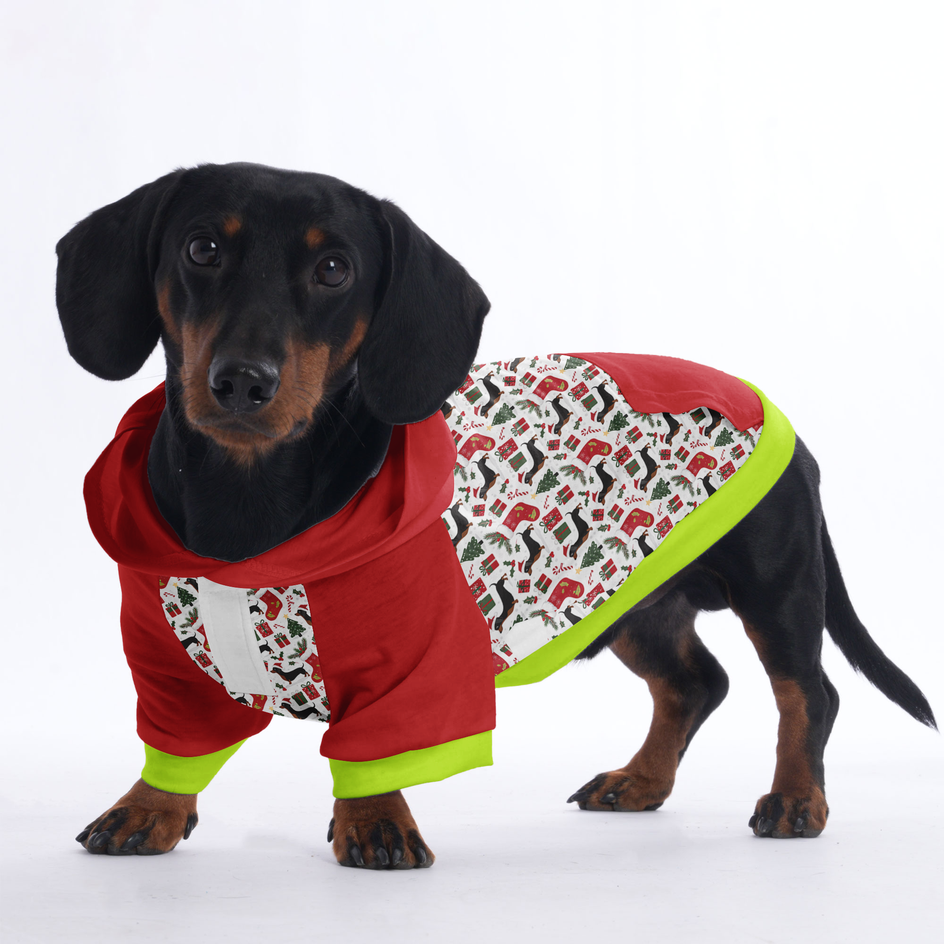 Dress your dachshund in style and comfort with our custom-designed hoodies, perfect for dachshunds and other small dog breeds.