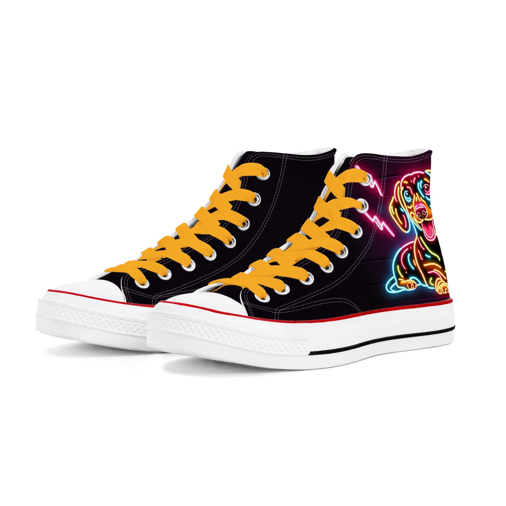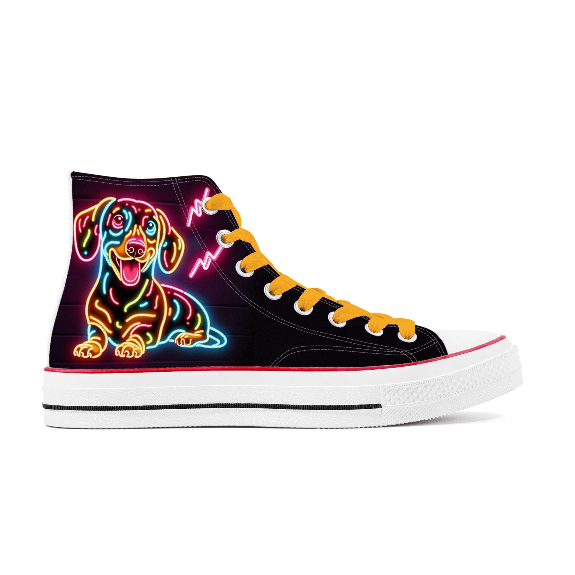 Si te encantan los perros salchicha, los perros encantadores y leales con cuerpos largos y patas cortas, te encantarán estos zapatos personalizados con estampado integral que presentan un divertido diseño de perro salchicha.