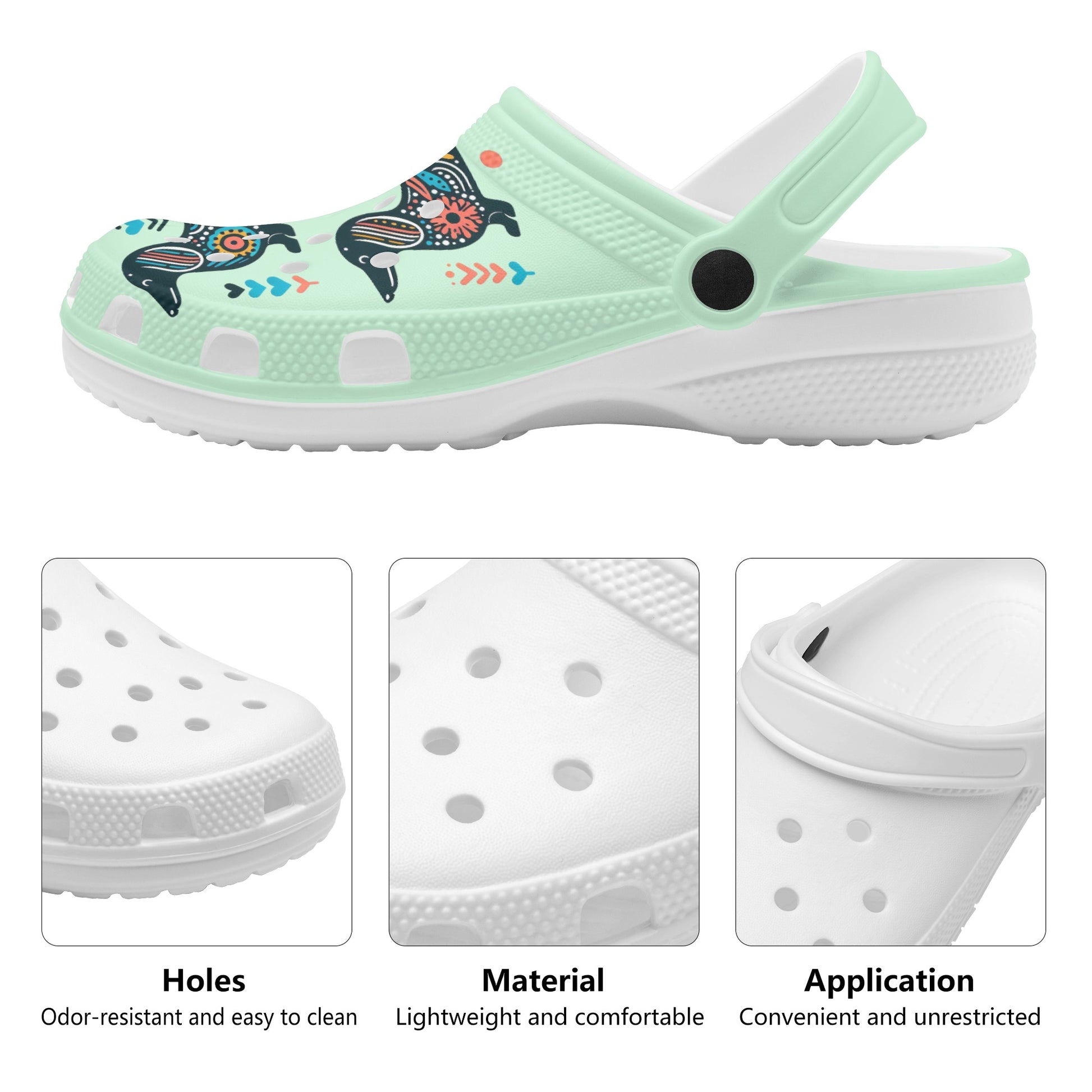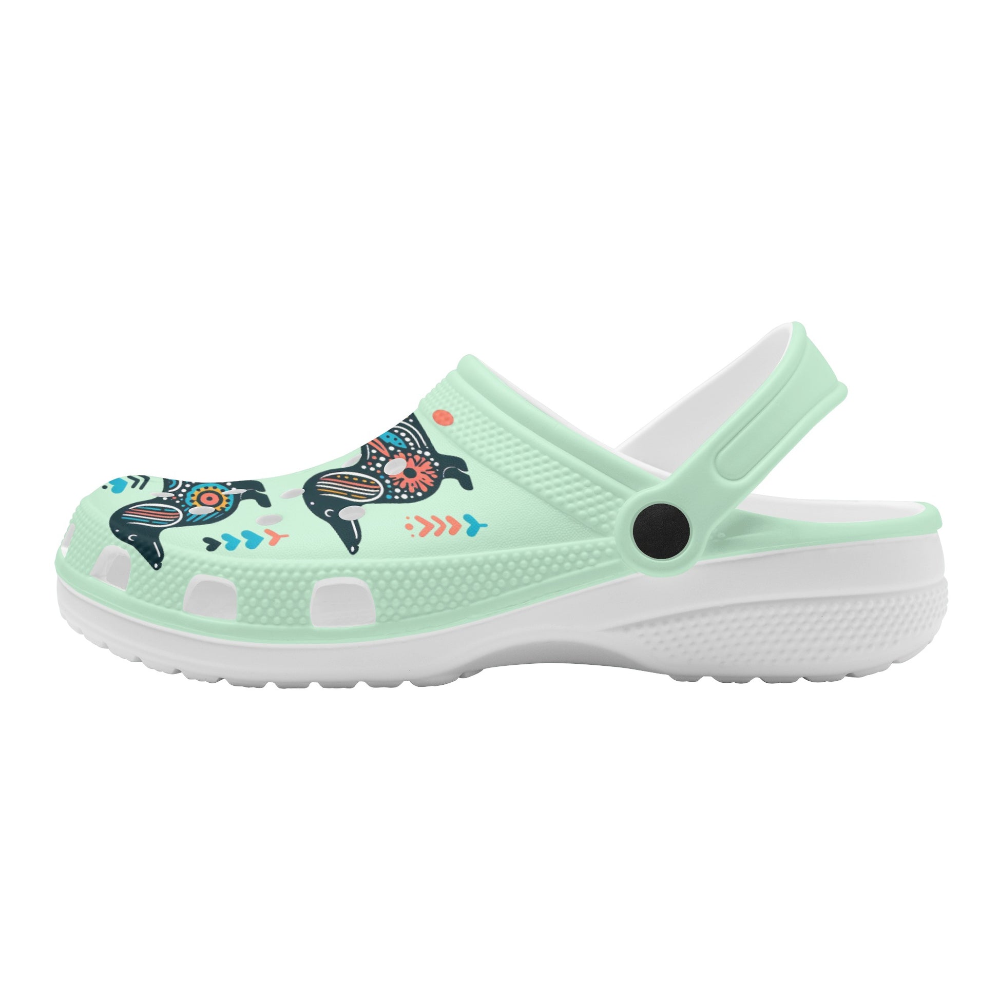 Si eres un amante de los perros salchicha, adorarás estos zuecos personalizados con estampados integrales que presentan encantadoras imágenes de perros salchicha. Estos zuecos no sólo están de moda, sino también cómodos y funcionales. Están hechos de material EVA de alta calidad que es flexible y duradero, y tienen un estilo redondeado y orificios de ventilación para mayor diversión y transpirabilidad. La correa del talón pivotante le permite ponérselos y quitárselos fácilmente y también proporciona un ajuste más seguro. La técnica de impresión por sublimación garantiza colores vibrantes e ideas creativas que harán que tus zuecos destaquen. Ya sea que los uses en casa, en el jardín o en el trabajo, estos zuecos mantendrán tus pies cómodos y tu amor por el perro salchicha fuerte. Para mantenerlos en buenas condiciones, simplemente lávelos a mano en agua fría y séquelos al aire. ¡Pide el tuyo hoy y disfruta de los elogios de otros fanáticos de los perros salchicha!