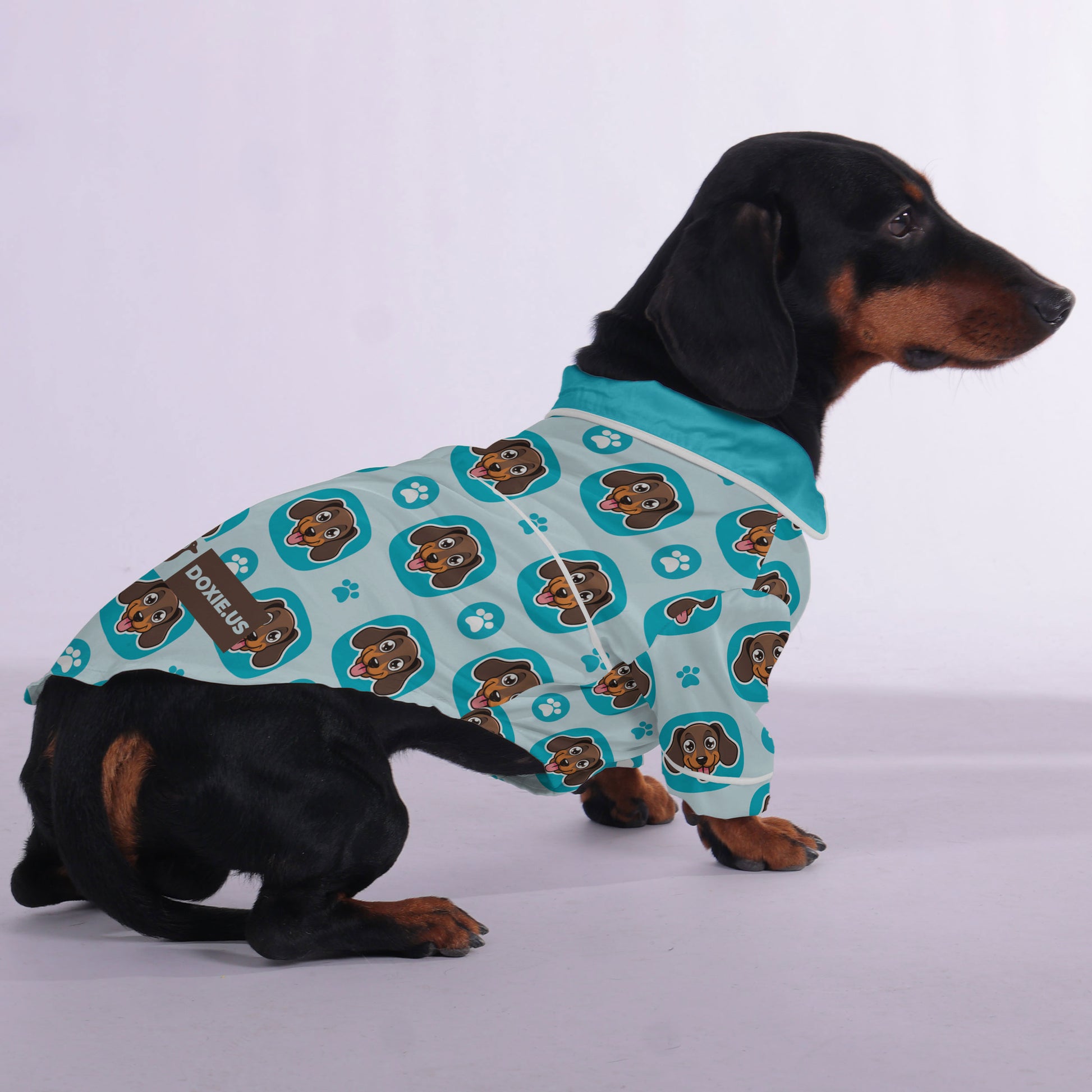 Pamper your Doxie with the coziest loungewear! These premium pajamas, crafted from stretchy, lightweight, and breathable fabric (97% polyester, 3% spandex), are designed to meet your dachshund’s relaxation needs all year round.