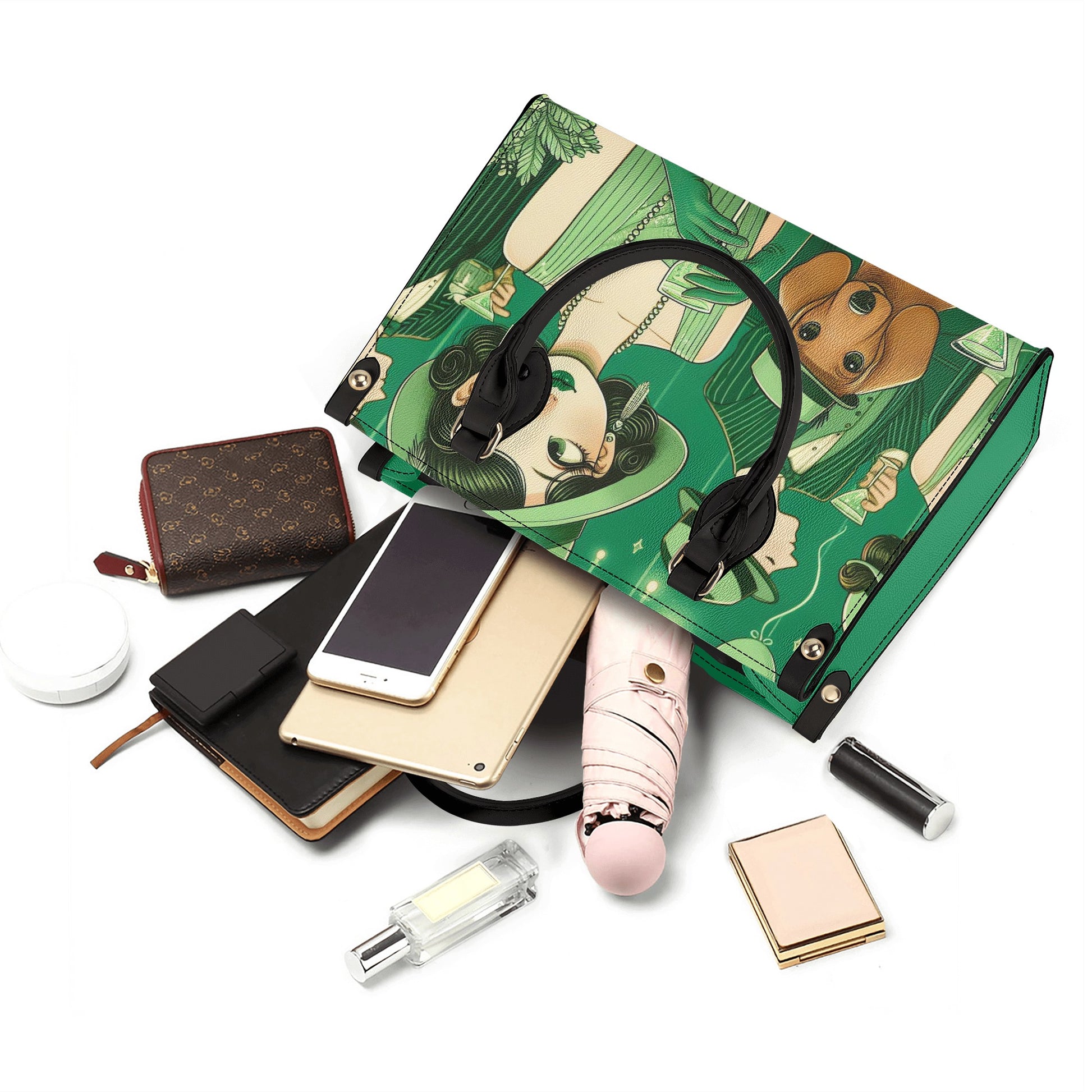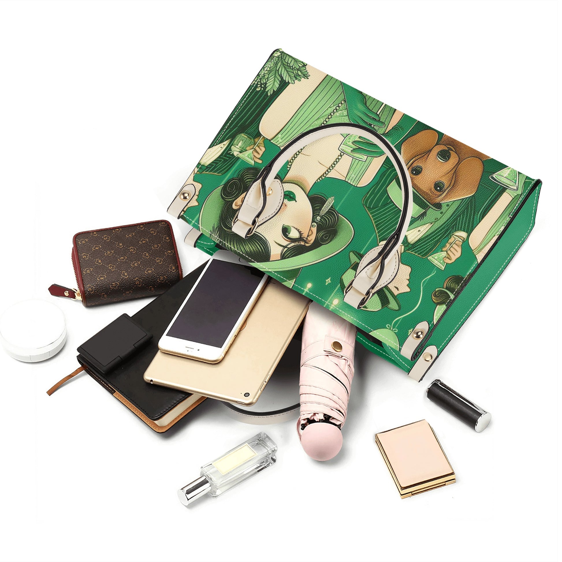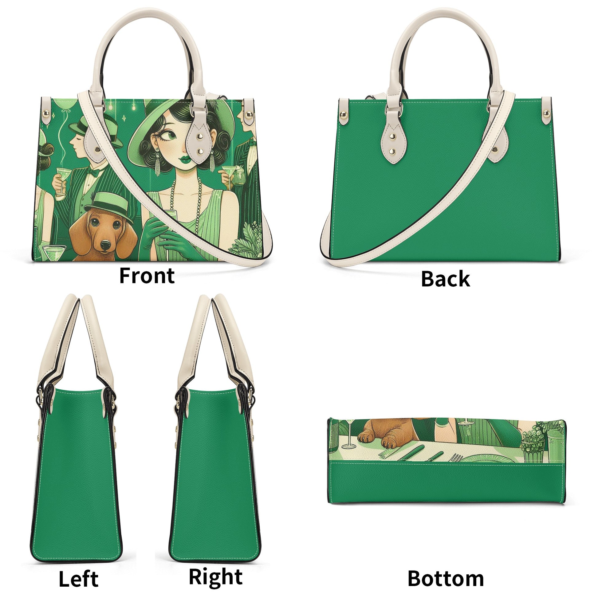- Este bolso está hecho de cuero PU de alta calidad, duradero, resistente al agua y fácil de limpiar. Cuenta con una cremallera suave y un estilo personalizado con estampado integral, con un encantador patrón de perro salchicha que te hará sonreír cada vez que lo mires. El diseño del compartimento principal con dos asas superiores mantiene el equilibrio y le permite llevar sus elementos esenciales con facilidad. El bolso también tiene un bolsillo interior con una correa para el hombro cosida y no extraíble, lo que te brinda más opciones para usarlo como bolso cruzado o al hombro. La combinación de colores blanco y negro es versátil y elegante, y puede combinar con diferentes conjuntos y ocasiones.
