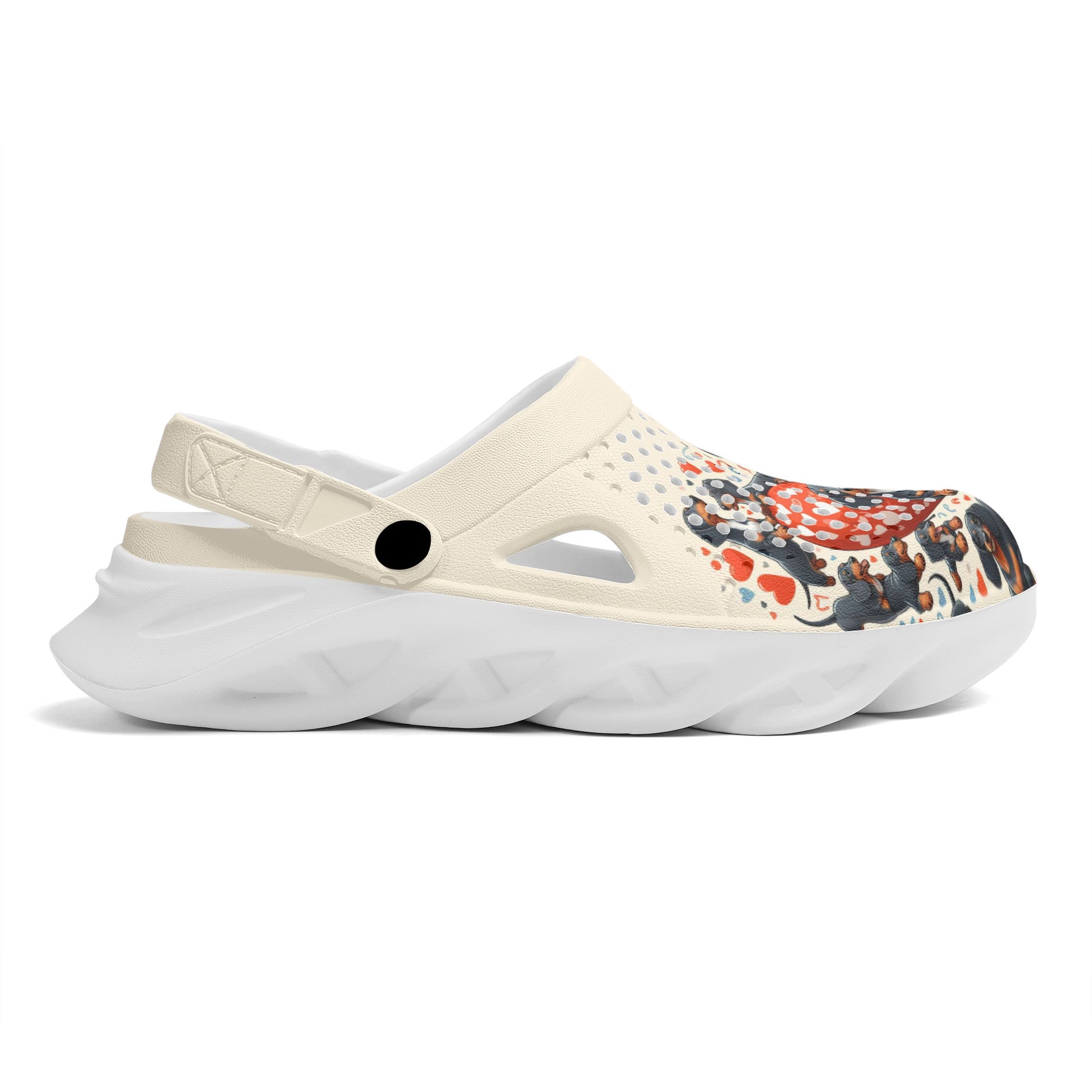 Nuestra técnica de impresión por sublimación garantiza que los colores permanezcan brillantes y los diseños nítidos, capturando sus ideas creativas con temas de perros salchicha con sorprendente detalle. Estos zuecos no sólo están de moda sino también prácticos, siendo muy utilizados en hogares o lugares de trabajo especiales que requieren periodos prolongados de caminar y estar de pie.
