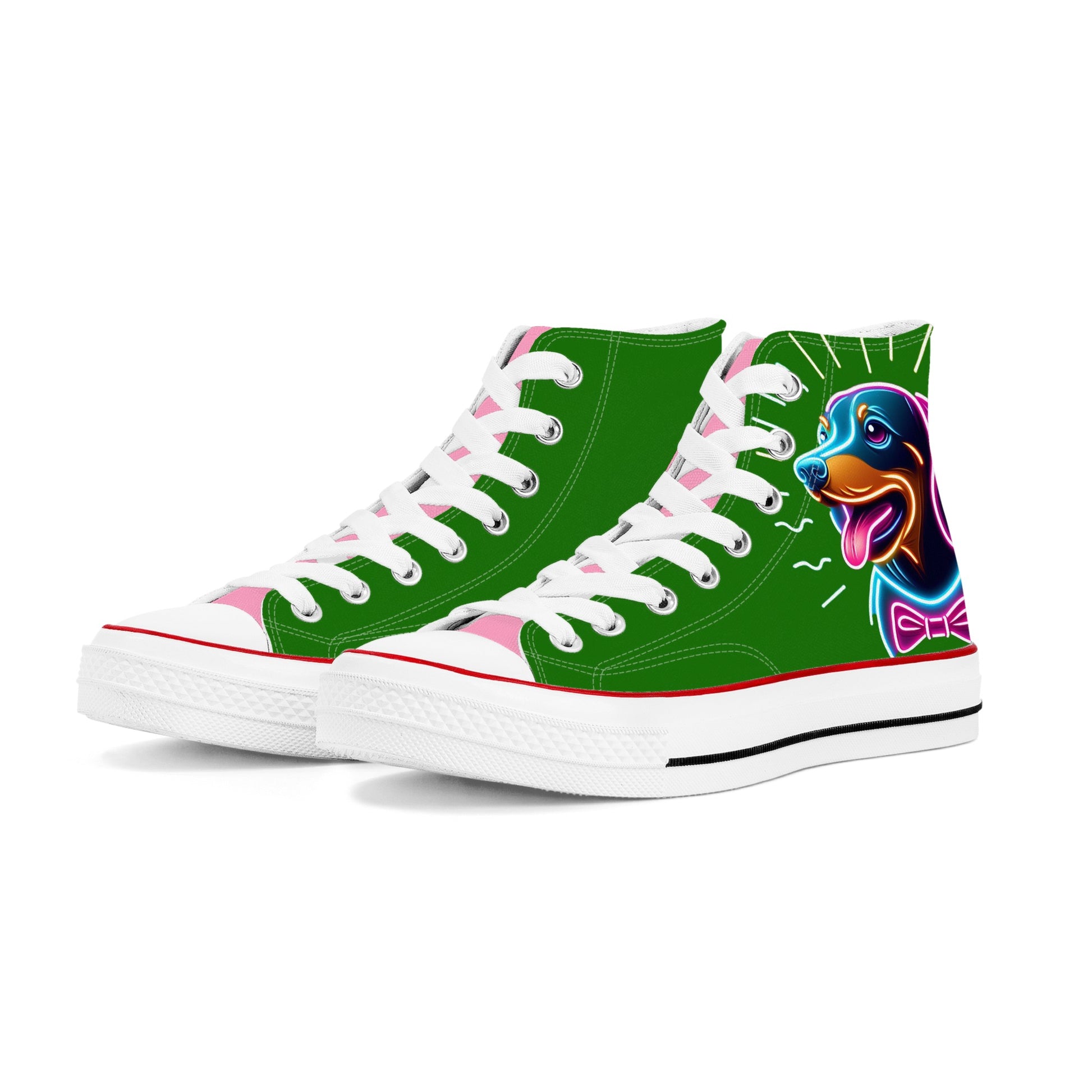 Si te encantan los perros salchicha, los perros encantadores y leales con cuerpos largos y patas cortas, te encantarán estos zapatos personalizados con estampado integral que presentan un divertido diseño de perro salchicha.