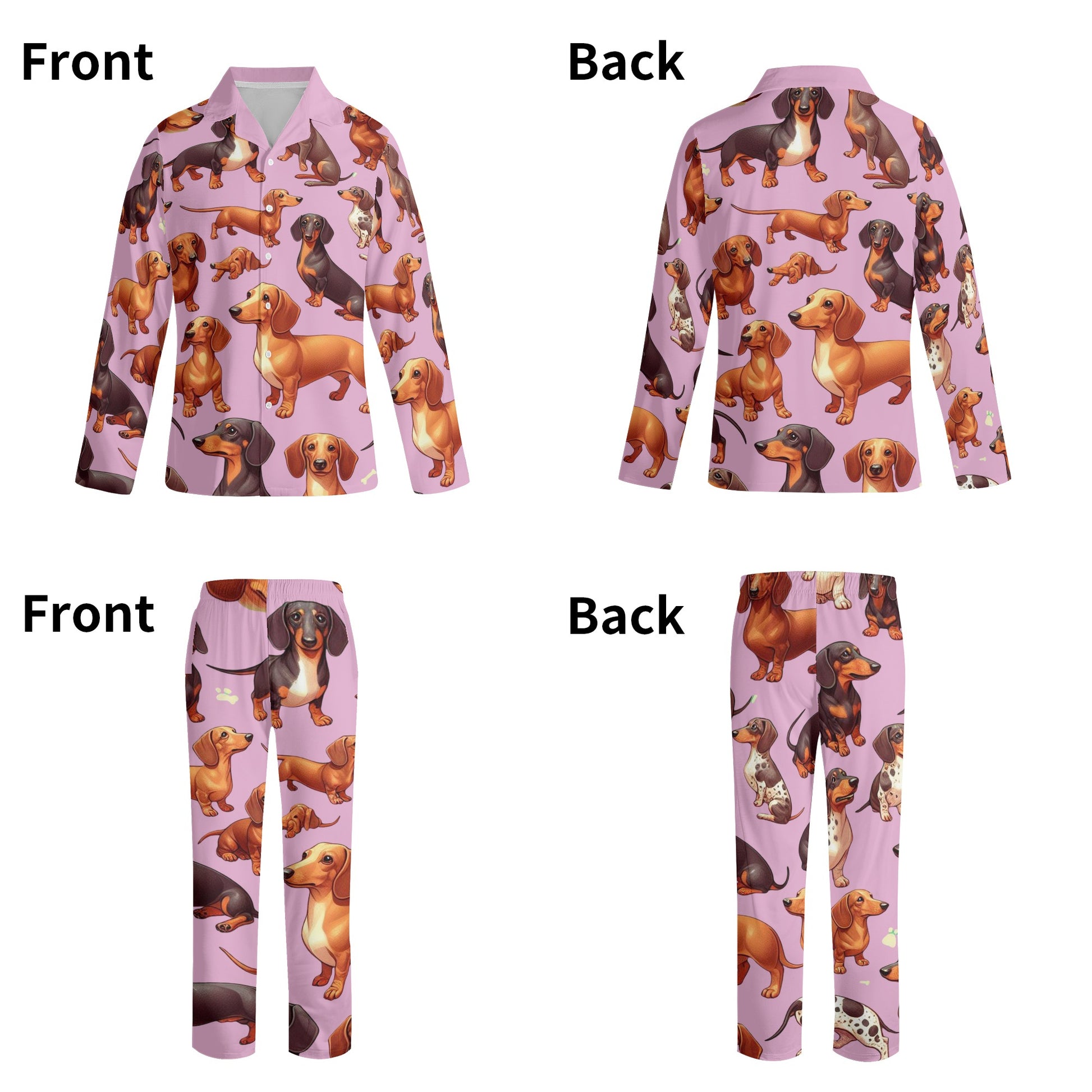 - ¿Amas a los perros salchicha tanto como a nosotros? Si es así, te encantará este conjunto de pijama acogedor y elegante que presenta un lindo y colorido patrón de perro salchicha. Ya sea que estés acurrucándote con tu amigo peludo o relajándote solo, este conjunto de pijama te mantendrá abrigado y cómodo durante toda la noche.