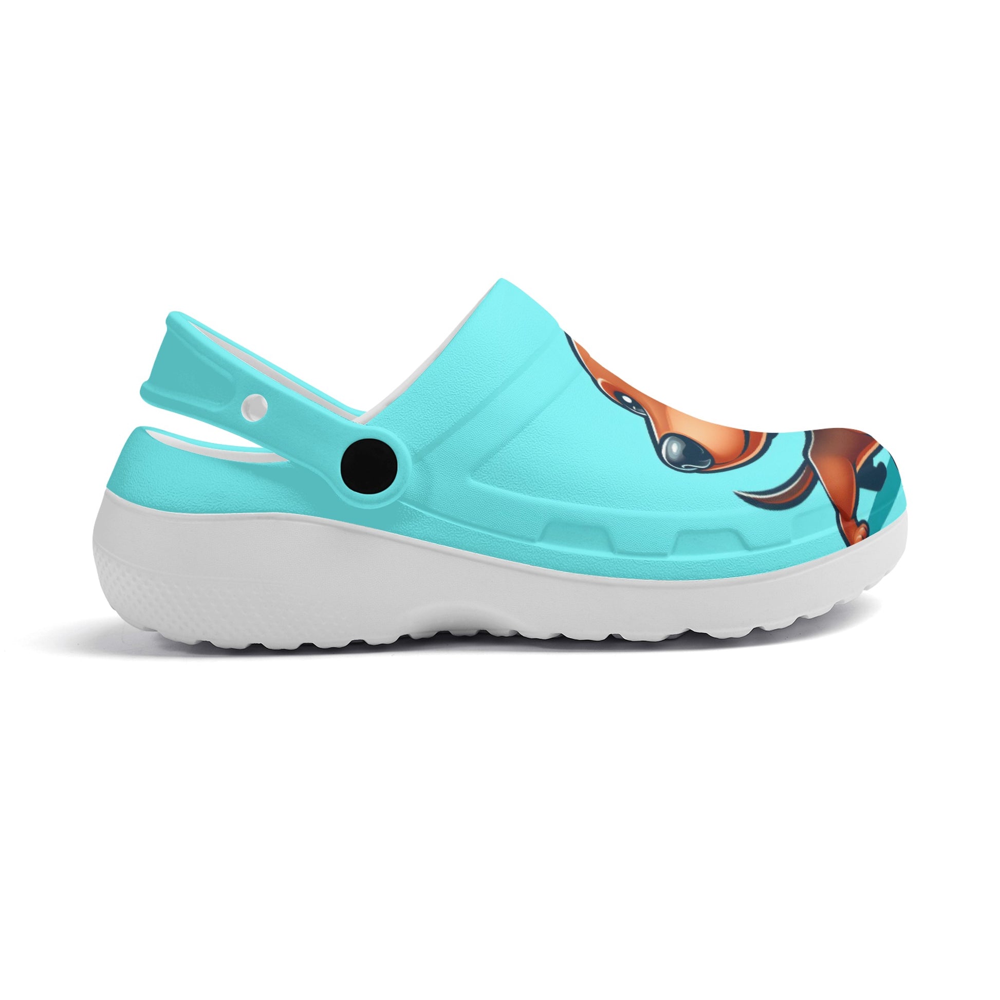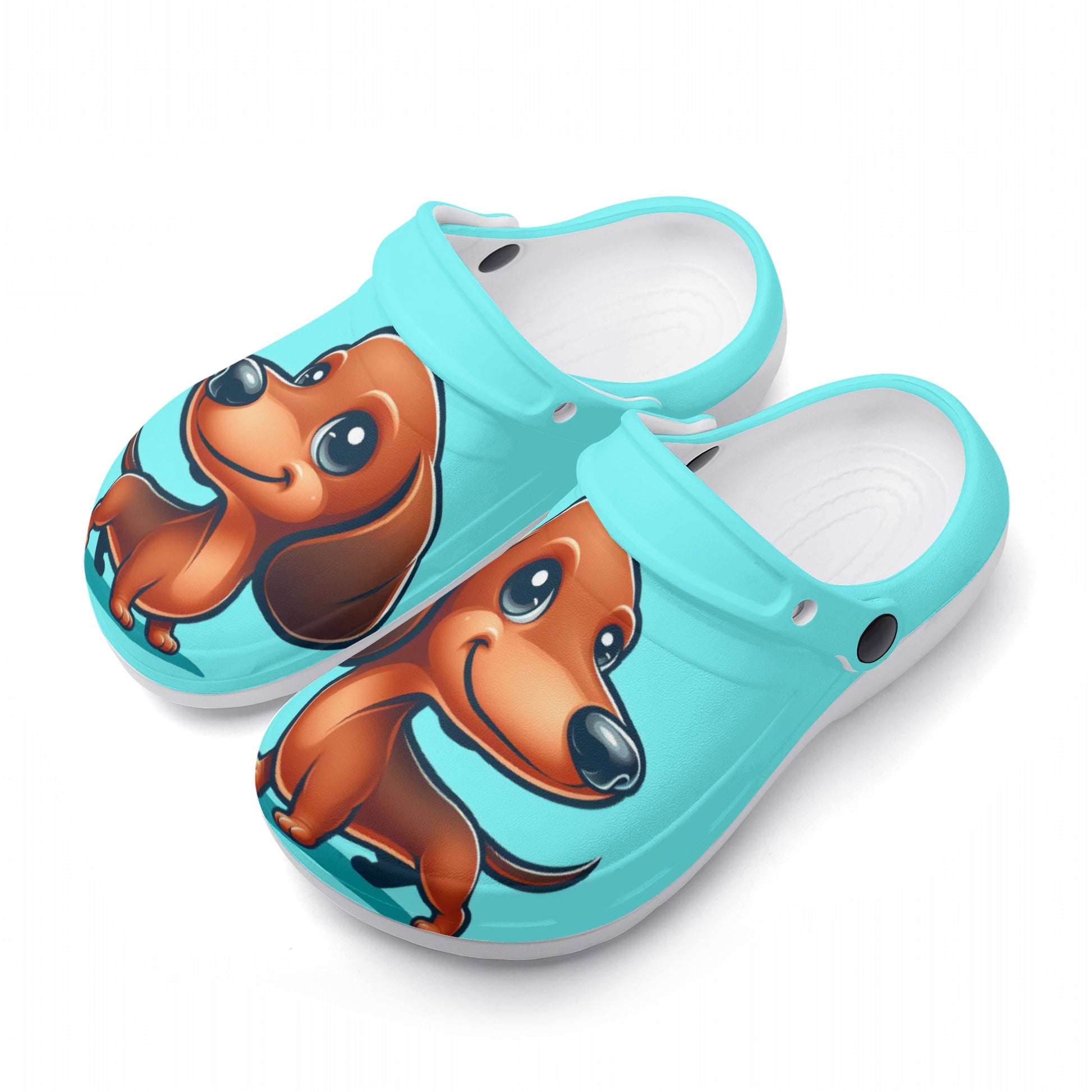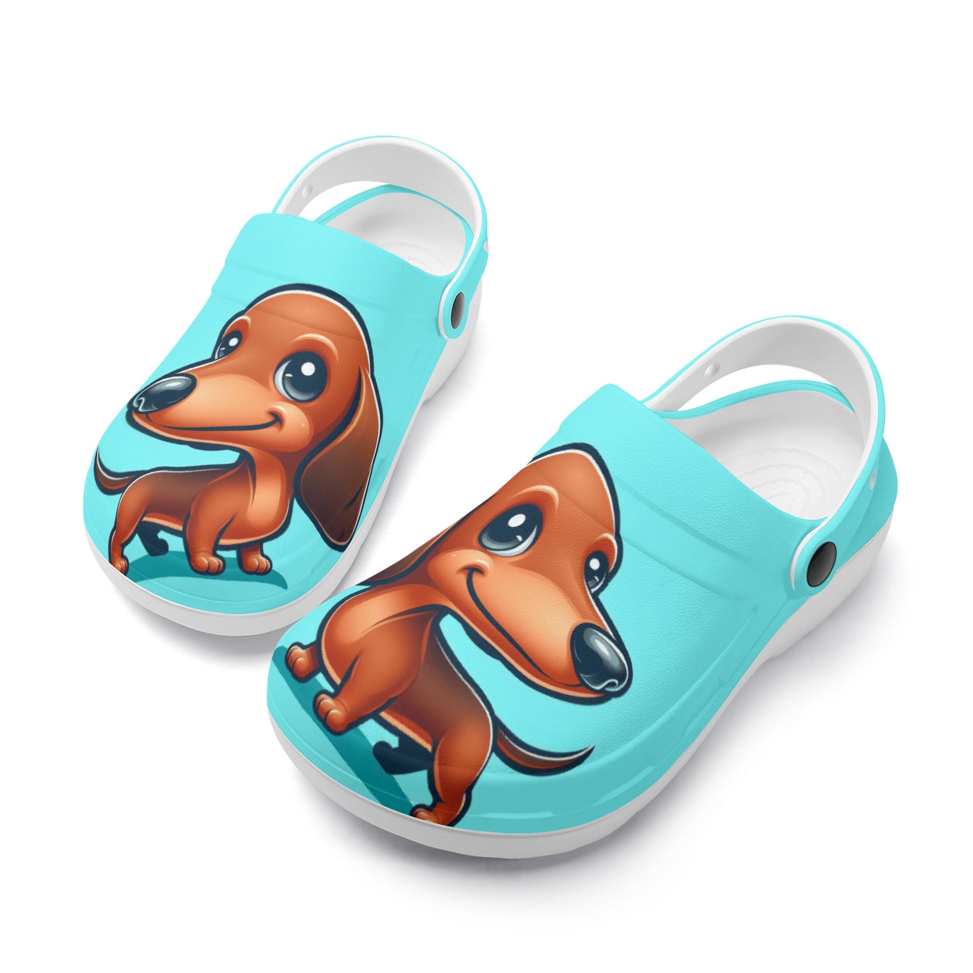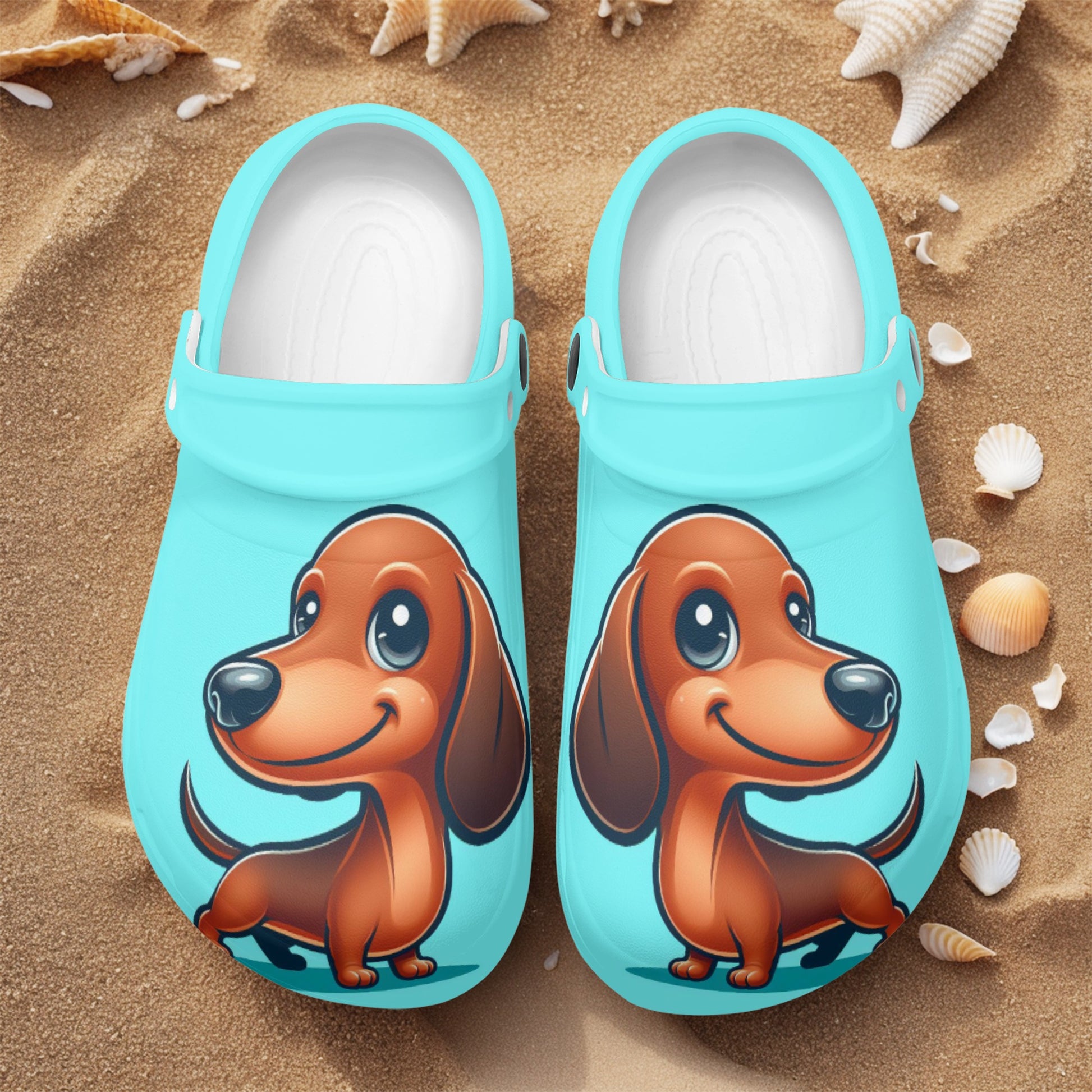 Si estás buscando un par de zuecos cómodos y elegantes que muestren tu amor por los perros salchicha, ¡te encantarán estos zuecos impresos personalizados con varias imágenes de perros salchicha!