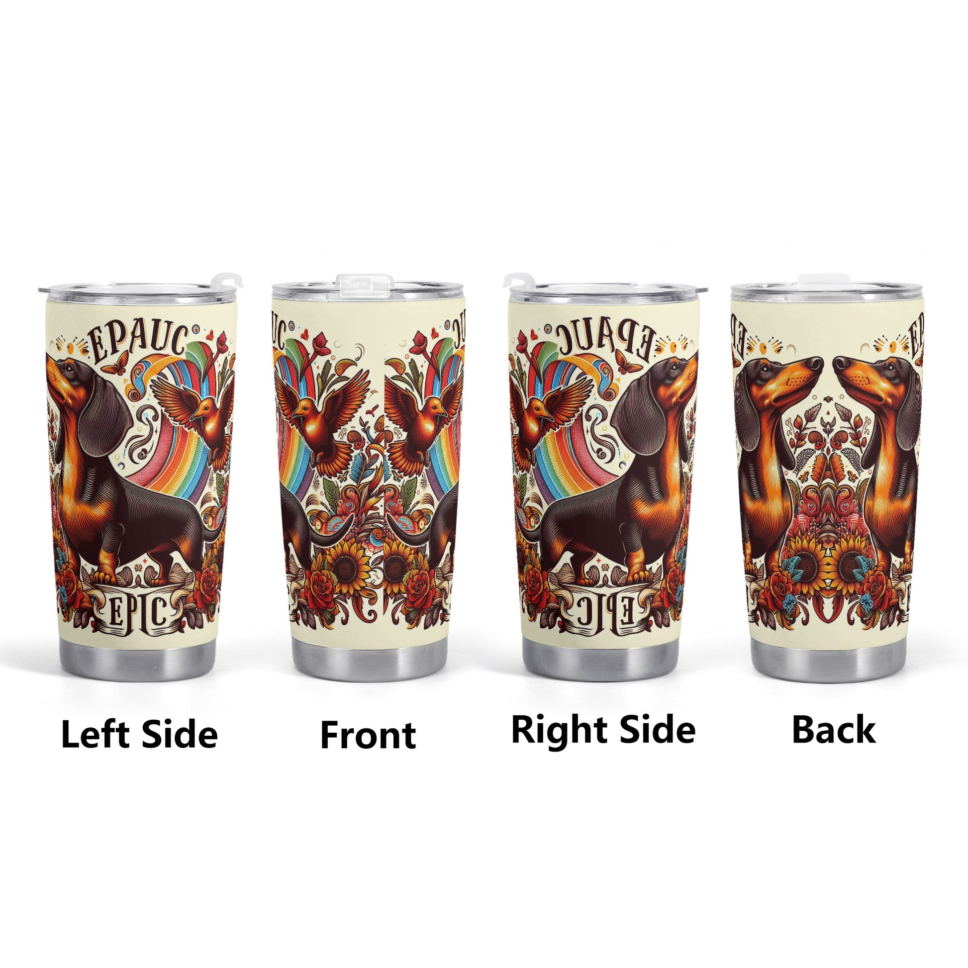 ¿Estás buscando un compañero perfecto para tus aventuras al aire libre o viajes en coche? ¡No busques más que esta taza para coche con diseño de perro salchicha para exteriores! Esta taza está hecha de material de acero inoxidable que es saludable, estable y resistente al desgaste. Puede mantener tus bebidas frías o calientes durante horas gracias a su tapa altamente sellada e impermeable. La tapa también evita que se escape cualquier olor cuando se expone al agua caliente. La taza tiene una gran capacidad de 600ML y una pared interior lisa que es fácil de limpiar. La taza está diseñada con una parte superior ancha y una base estrecha, lo que facilita su transporte y almacenamiento. También cabe perfectamente en la mayoría de los portavasos de los automóviles y no se dispersa cuando se agita en el automóvil. La mejor parte es que la taza presenta una linda y encantadora ilustración de un perro salchicha, el querido perro salchicha. Si eres dueño, amante o admirador de un perro salchicha, esta taza seguramente te hará sonreír y alegrar tu día. ¡Pide el tuyo hoy y disfruta de la comodidad y la alegría de esta taza para coche con diseño de perro salchicha para exteriores!