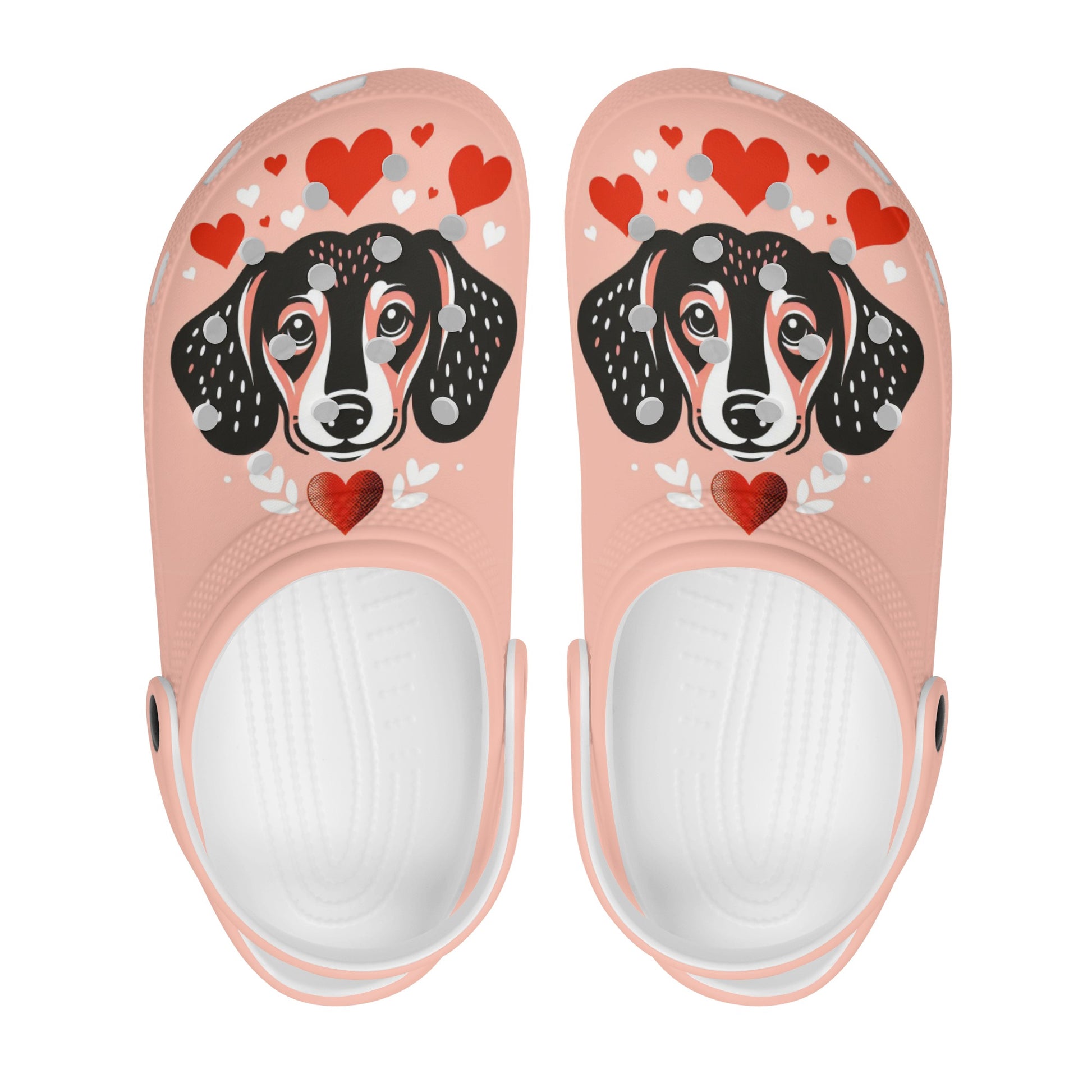 Si eres un amante de los perros salchicha, adorarás estos zuecos personalizados con estampados integrales que presentan encantadoras imágenes de perros salchicha. Estos zuecos no sólo están de moda, sino también cómodos y funcionales. Están hechos de material EVA de alta calidad que es flexible y duradero, y tienen un estilo redondeado y orificios de ventilación para mayor diversión y transpirabilidad. La correa del talón pivotante le permite ponérselos y quitárselos fácilmente y también proporciona un ajuste más seguro. La técnica de impresión por sublimación garantiza colores vibrantes e ideas creativas que harán que tus zuecos destaquen. Ya sea que los uses en casa, en el jardín o en el trabajo, estos zuecos mantendrán tus pies cómodos y tu amor por el perro salchicha fuerte. Para mantenerlos en buenas condiciones, simplemente lávelos a mano en agua fría y séquelos al aire. ¡Pide el tuyo hoy y disfruta de los elogios de otros fanáticos de los perros salchicha!