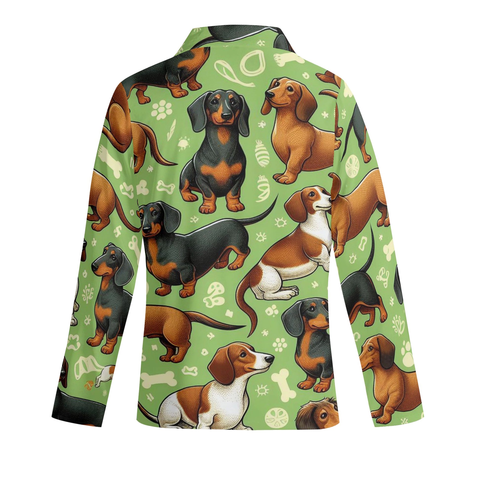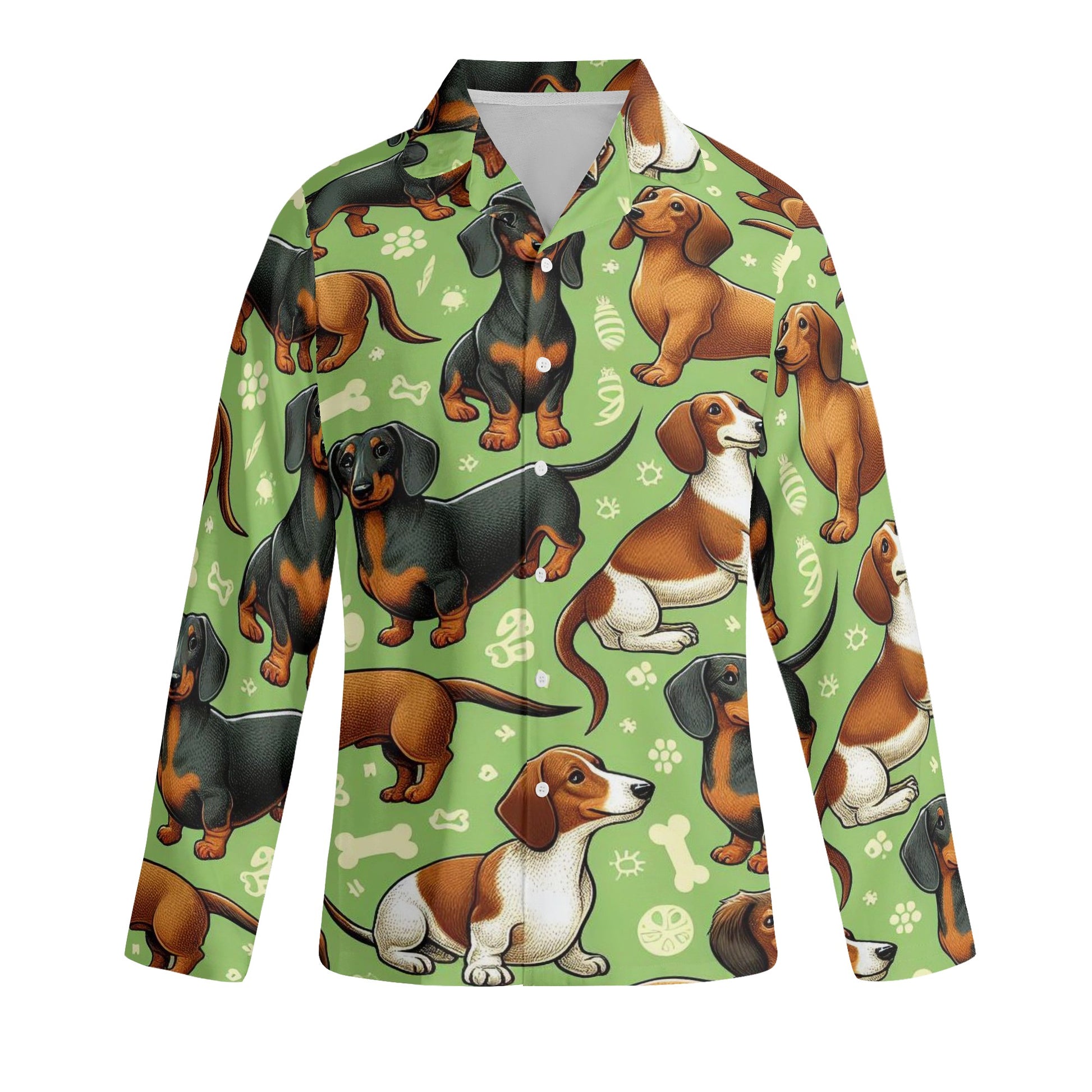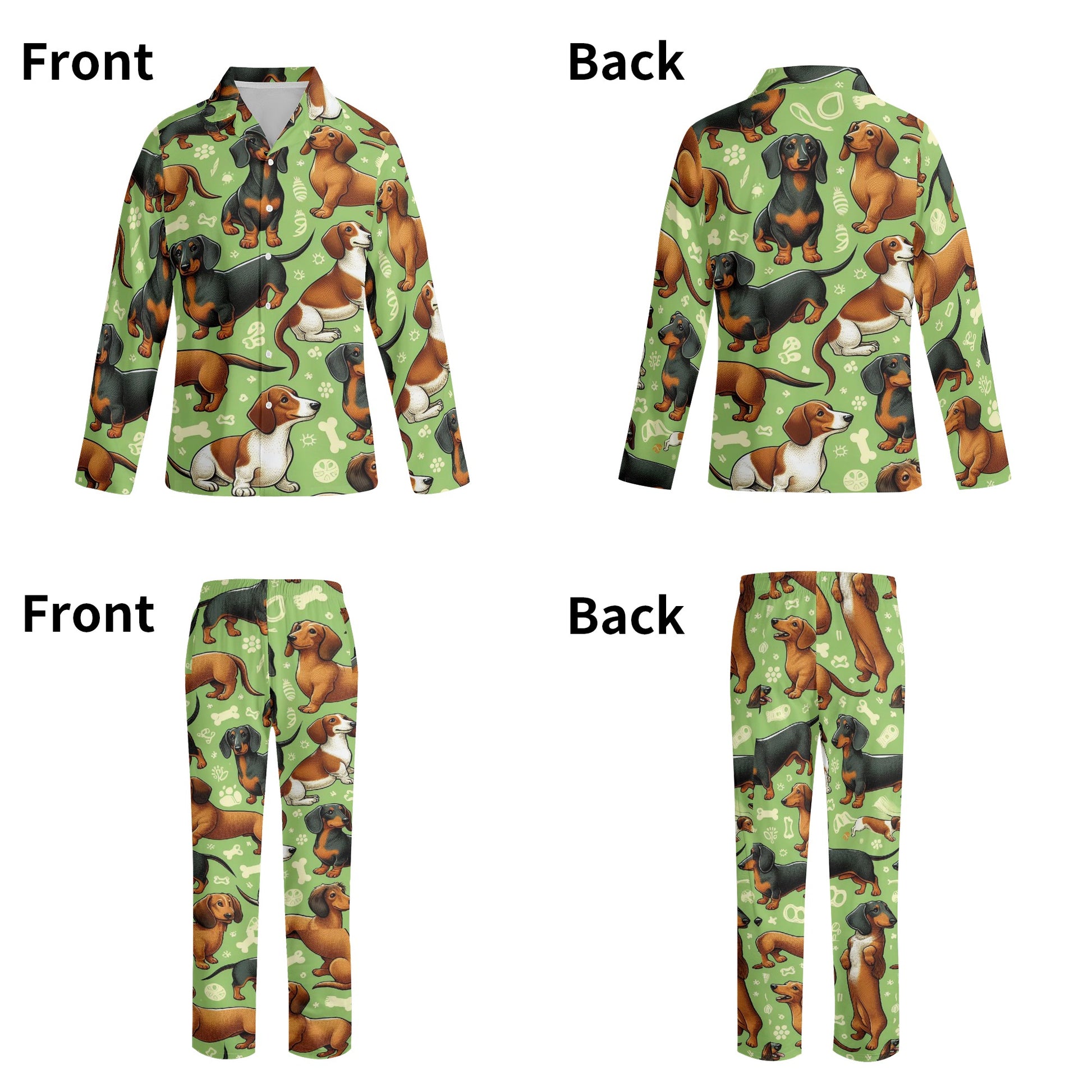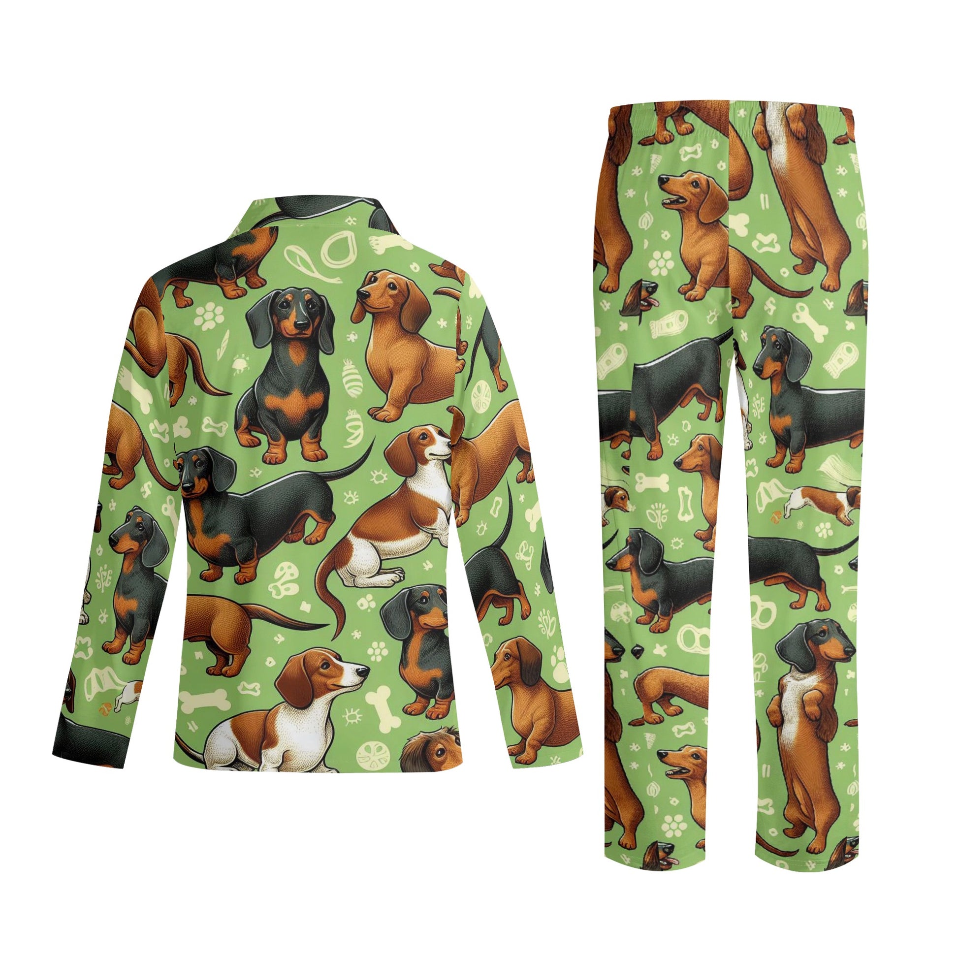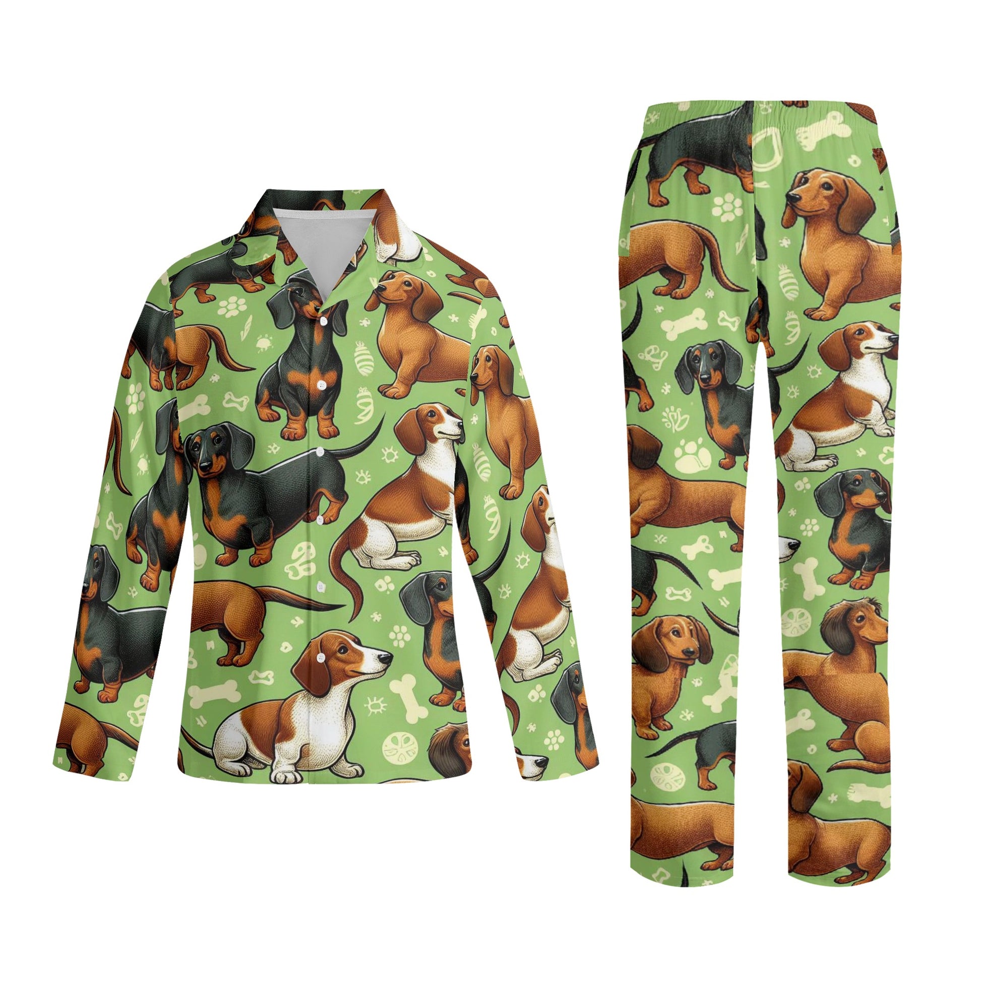 - ¿Amas a los perros salchicha tanto como a nosotros? Si es así, te encantará este conjunto de pijama acogedor y elegante que presenta un lindo y colorido patrón de perro salchicha. Ya sea que estés acurrucándote con tu amigo peludo o relajándote solo, este conjunto de pijama te mantendrá abrigado y cómodo durante toda la noche.