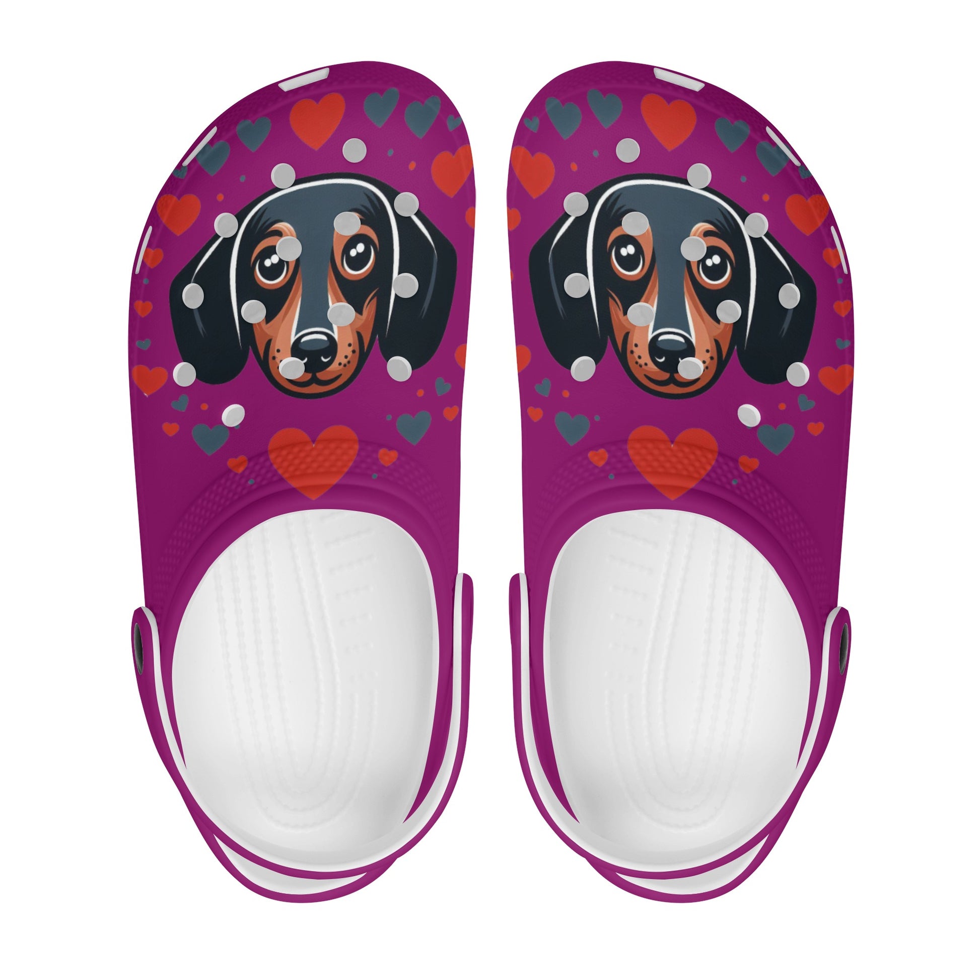 Si eres un amante de los perros salchicha, adorarás estos zuecos personalizados con estampados integrales que presentan encantadoras imágenes de perros salchicha. Estos zuecos no sólo están de moda, sino también cómodos y funcionales. Están hechos de material EVA de alta calidad que es flexible y duradero, y tienen un estilo redondeado y orificios de ventilación para mayor diversión y transpirabilidad. La correa del talón pivotante le permite ponérselos y quitárselos fácilmente y también proporciona un ajuste más seguro. La técnica de impresión por sublimación garantiza colores vibrantes e ideas creativas que harán que tus zuecos destaquen. Ya sea que los uses en casa, en el jardín o en el trabajo, estos zuecos mantendrán tus pies cómodos y tu amor por el perro salchicha fuerte. Para mantenerlos en buenas condiciones, simplemente lávelos a mano en agua fría y séquelos al aire. ¡Pide el tuyo hoy y disfruta de los elogios de otros fanáticos de los perros salchicha!