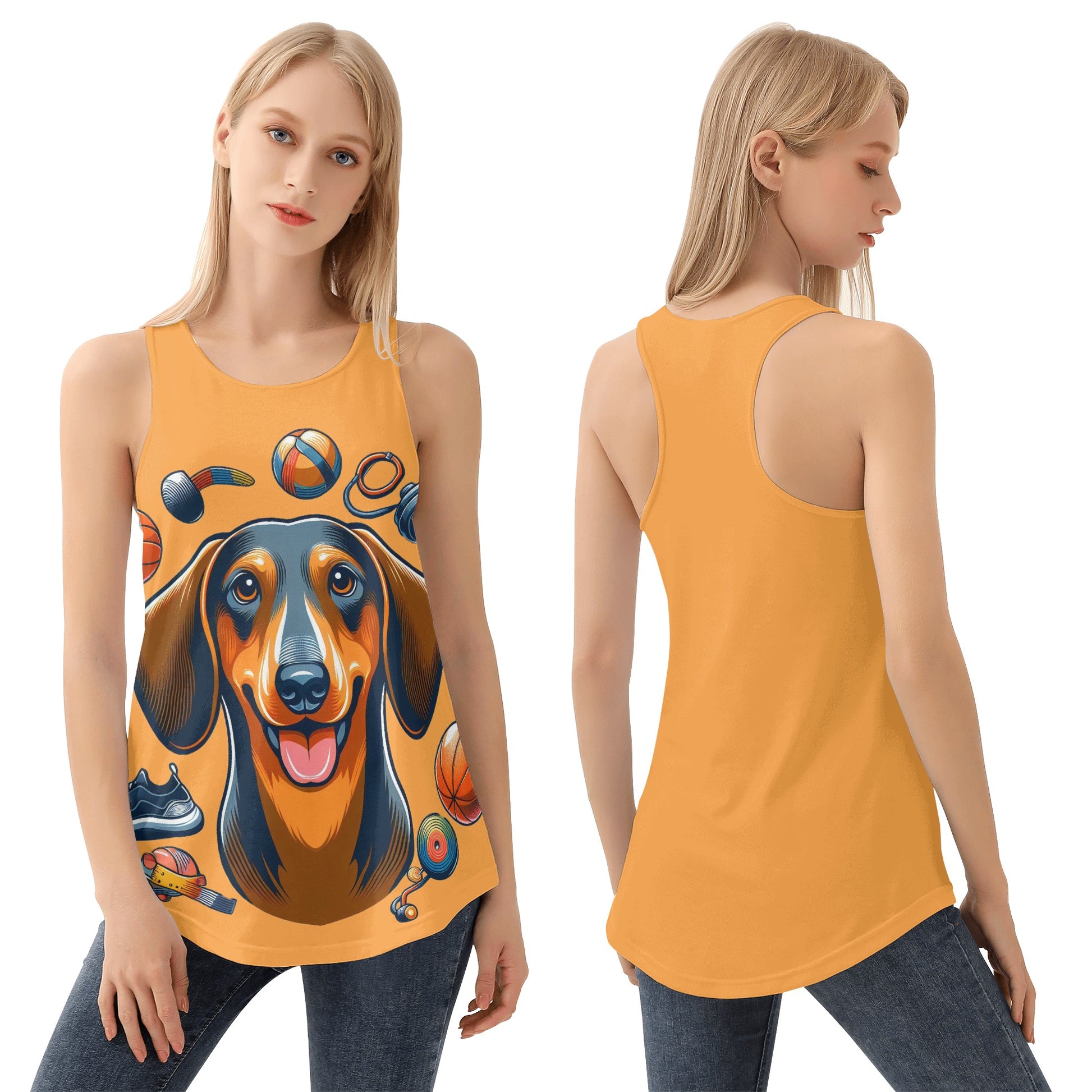 ¿Eres fanático de la adorable raza dachshund? ¿Quieres mostrar tu amor por estos lindos y leales perros? ¡Entonces esta camiseta sin mangas es perfecta para ti!