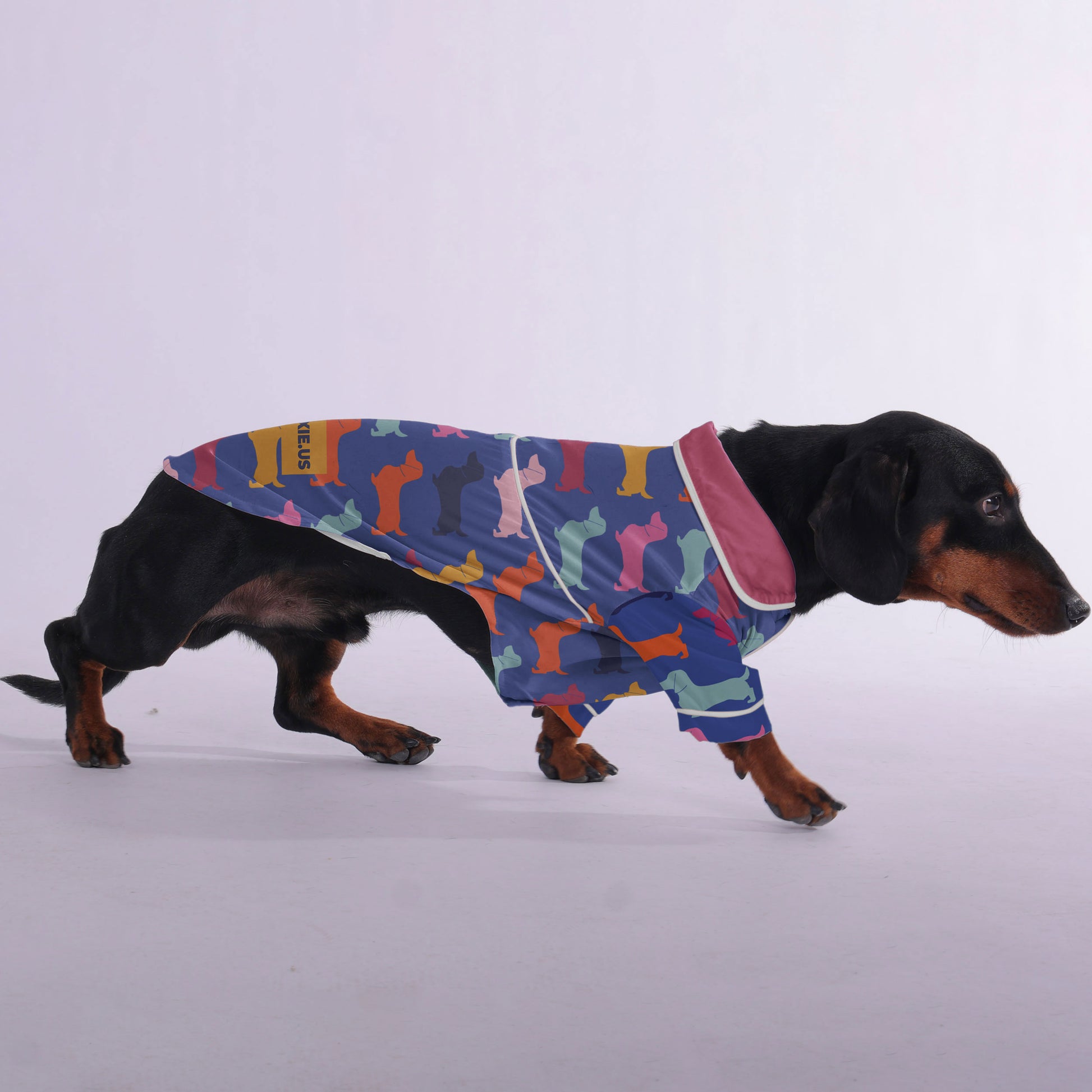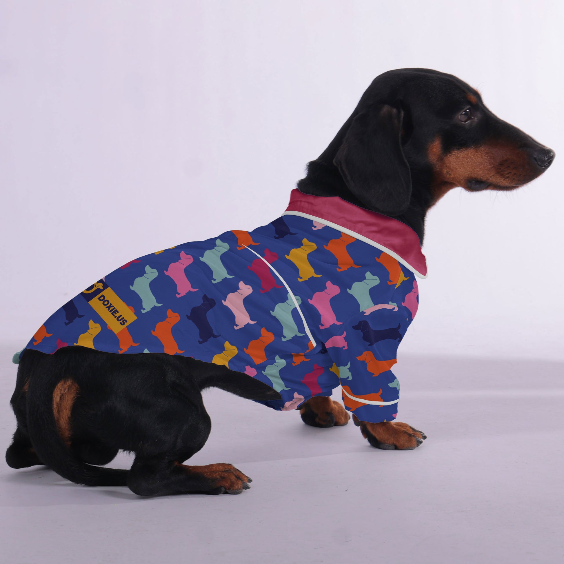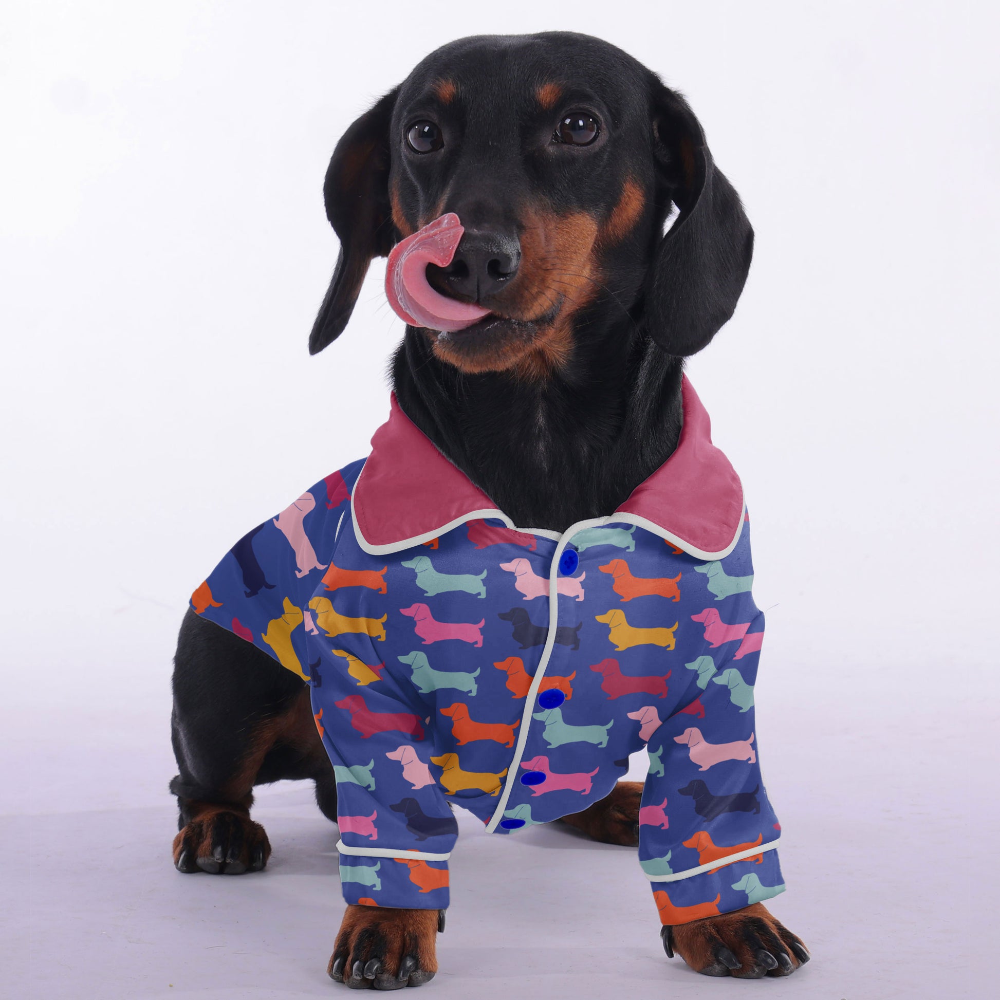 Pamper your Doxie with the coziest loungewear! These premium pajamas, crafted from stretchy, lightweight, and breathable fabric (97% polyester, 3% spandex), are designed to meet your dachshund’s relaxation needs all year round.