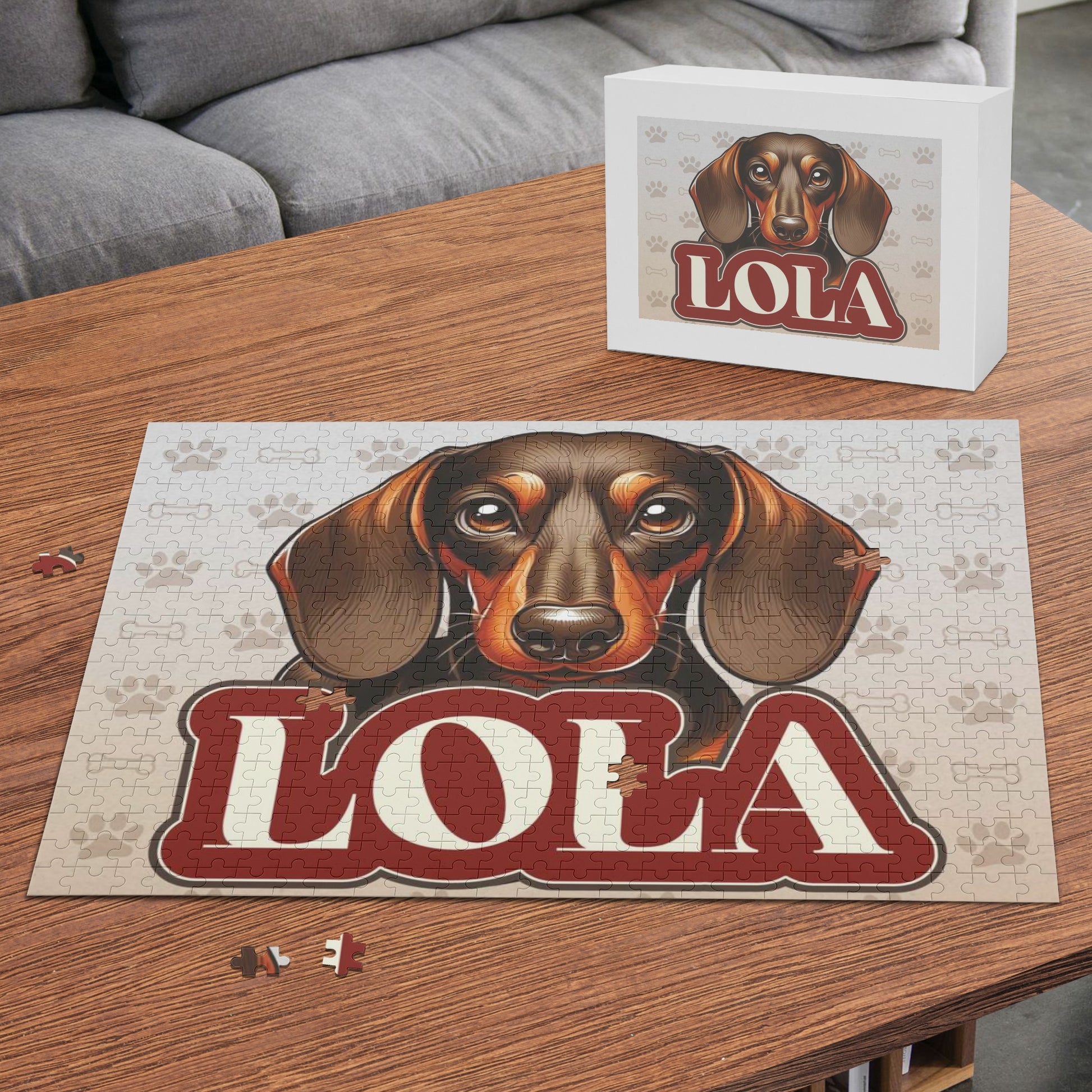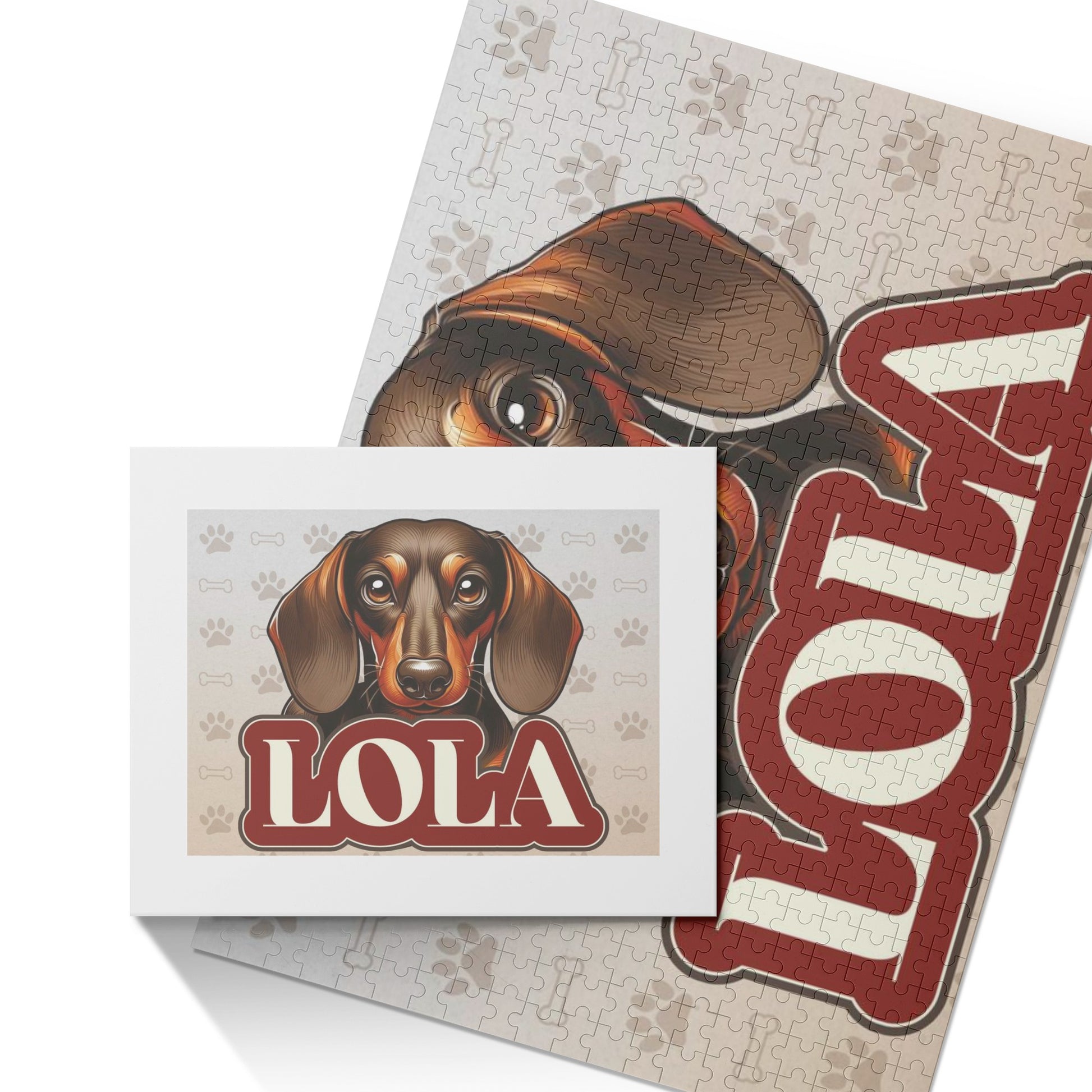 Descubre la alegría en cada pieza con nuestro Rompecabezas de Nombres de Perro Salchicha. Personalízalo con el nombre de tu perro salchicha para vivir una experiencia increíble. Elaborado con amor, es la combinación perfecta de diversión y sentimentalismo. Ideal para los devotos del Dachshund: donde la resolución de acertijos se combina con el juego personalizado