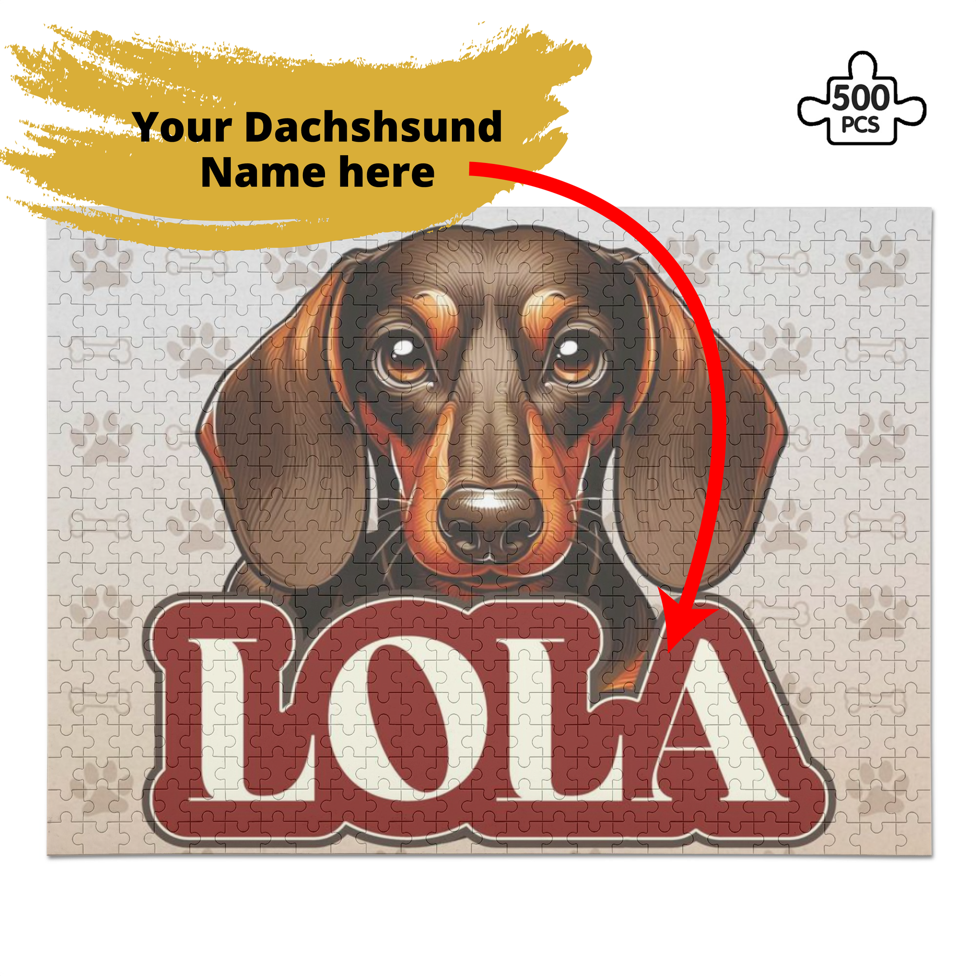 Puzzle personalizado con nombre de Perro Salchicha - Puzzle