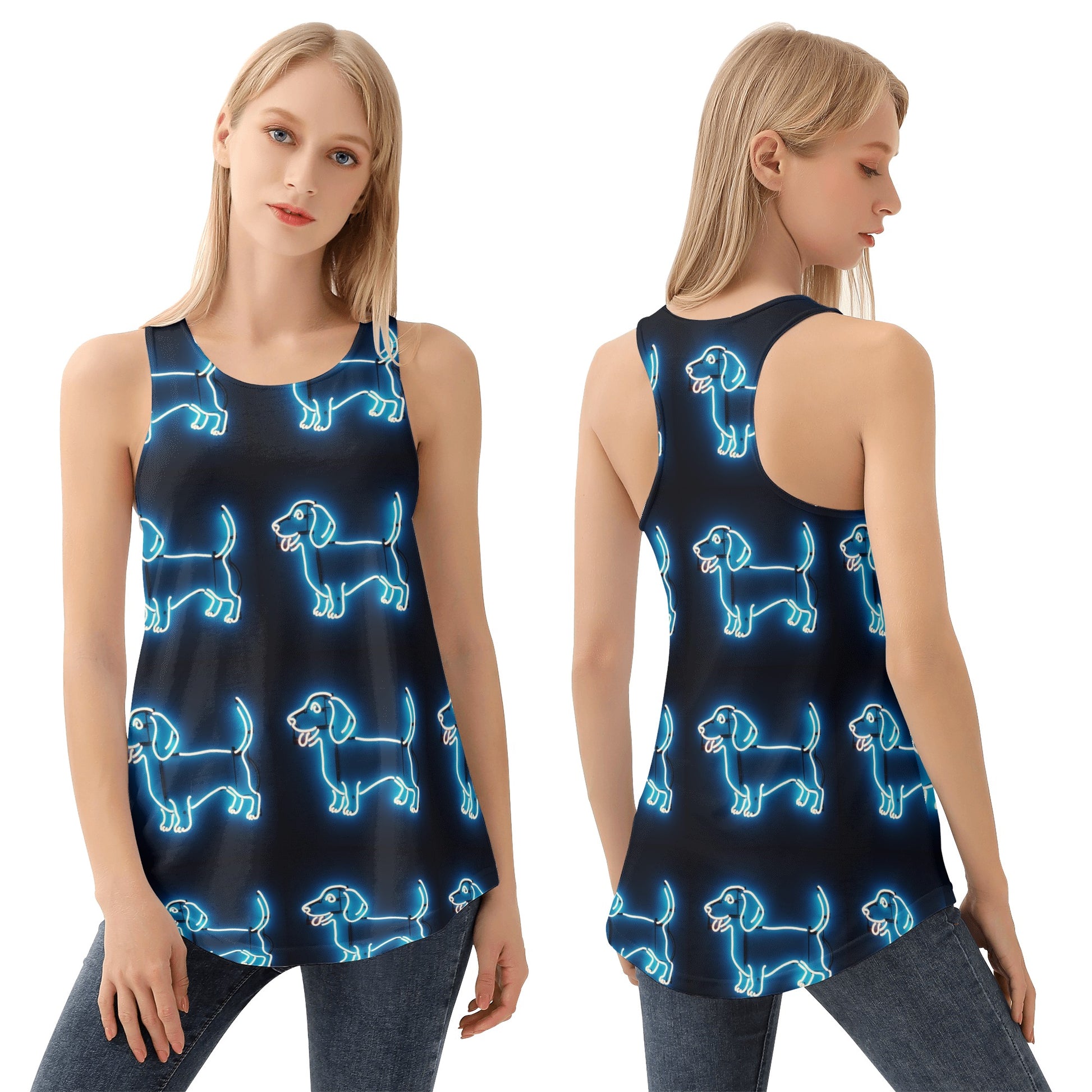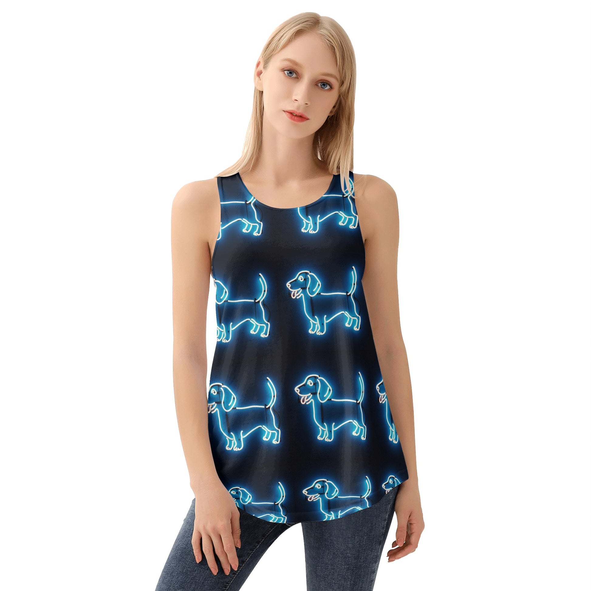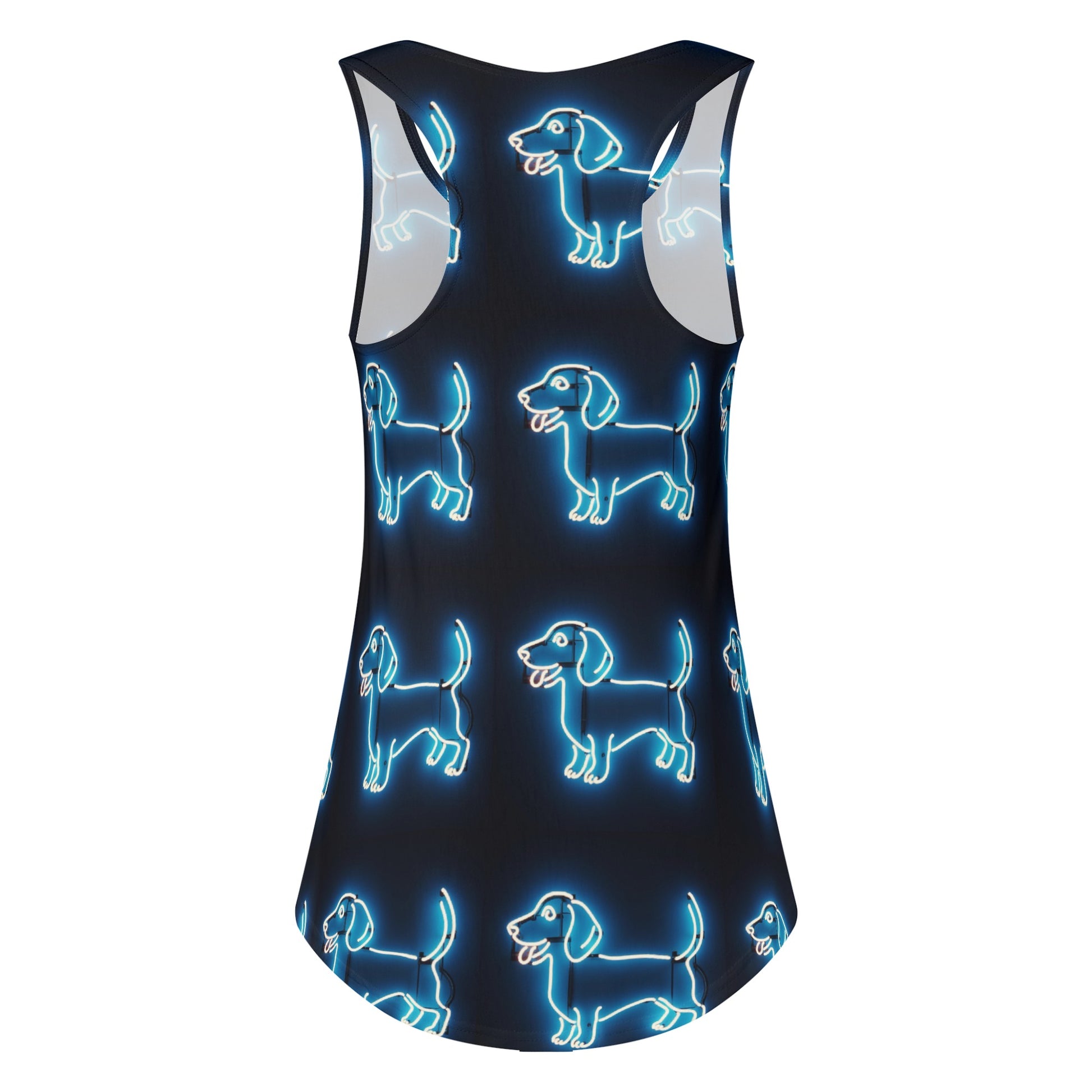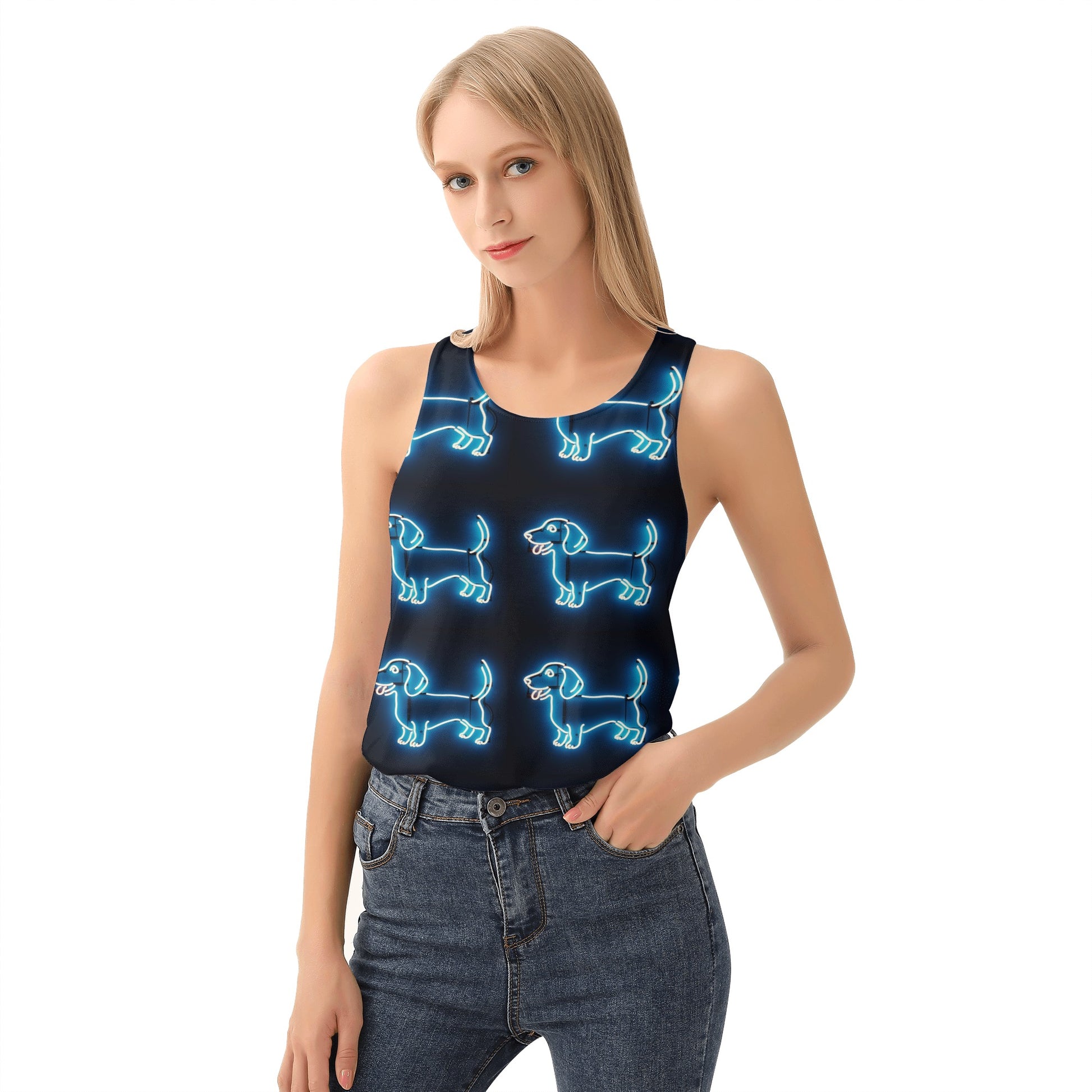 ¿Eres fanático de la adorable raza dachshund? ¿Quieres mostrar tu amor por estos lindos y leales perros? ¡Entonces esta camiseta sin mangas es perfecta para ti!