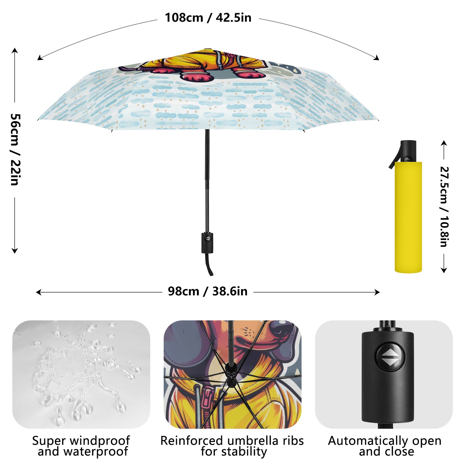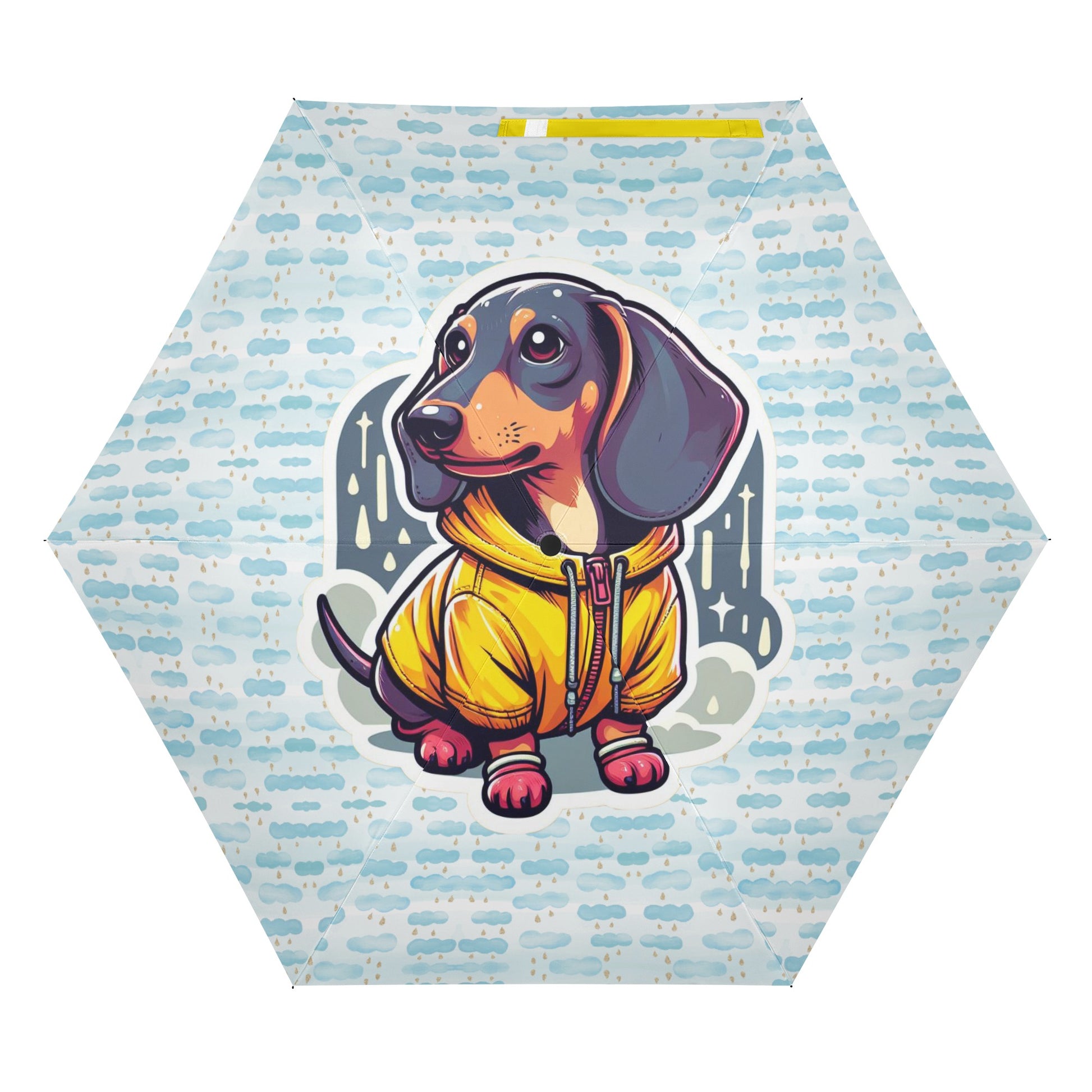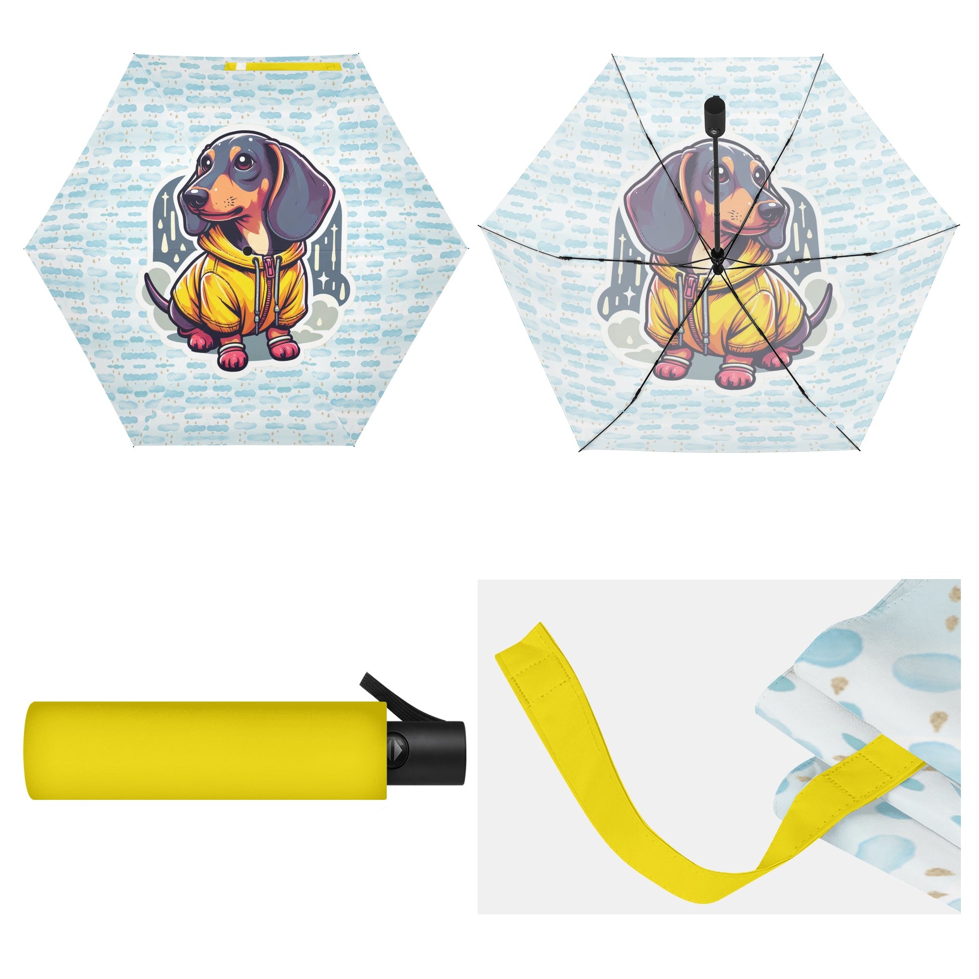 El paraguas se compone de 6 piezas, cada una con un bonito estampado de perro salchicha. También puedes personalizar el cinturón y la funda para que coincidan con tu estilo y preferencia. El paraguas tiene un mecanismo de apertura y cierre automático y un mango de agarre cómodo. Puedes abrirlo y cerrarlo con una mano y disfrutar de una experiencia cómoda y fluida.