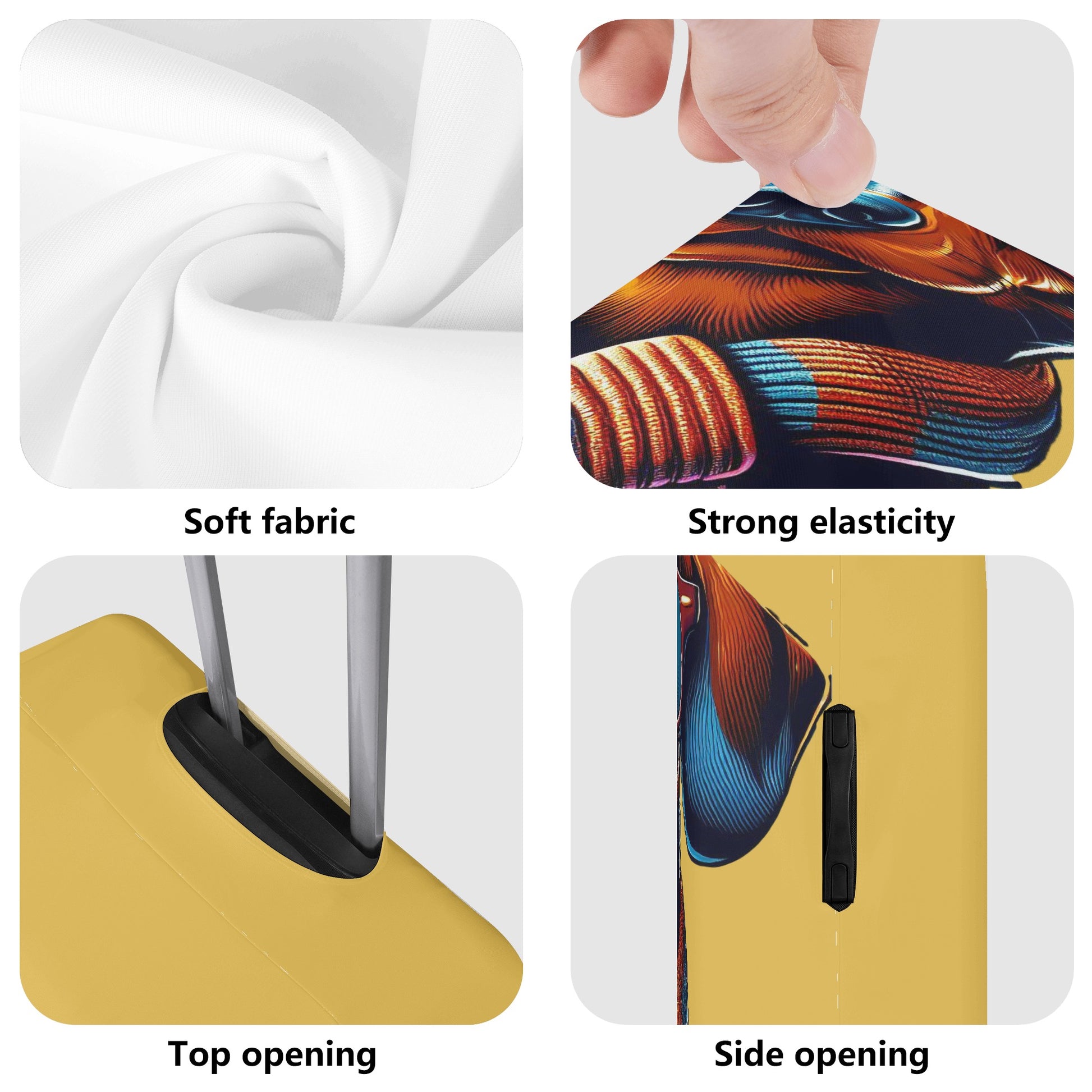 - Esta funda está hecha de poliéster y fibra de lona que es resistente, lavable y elástica. Se adapta perfectamente a tu maleta y la protege de la suciedad y los arañazos.