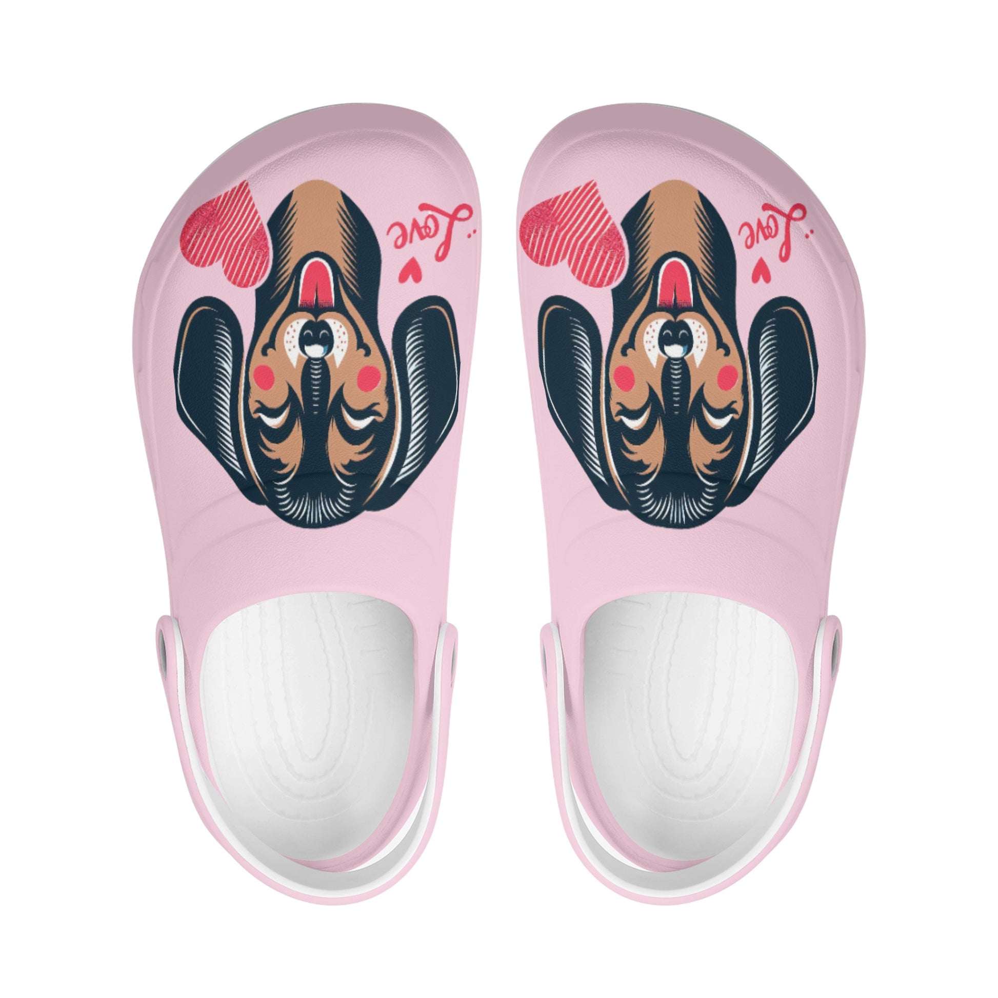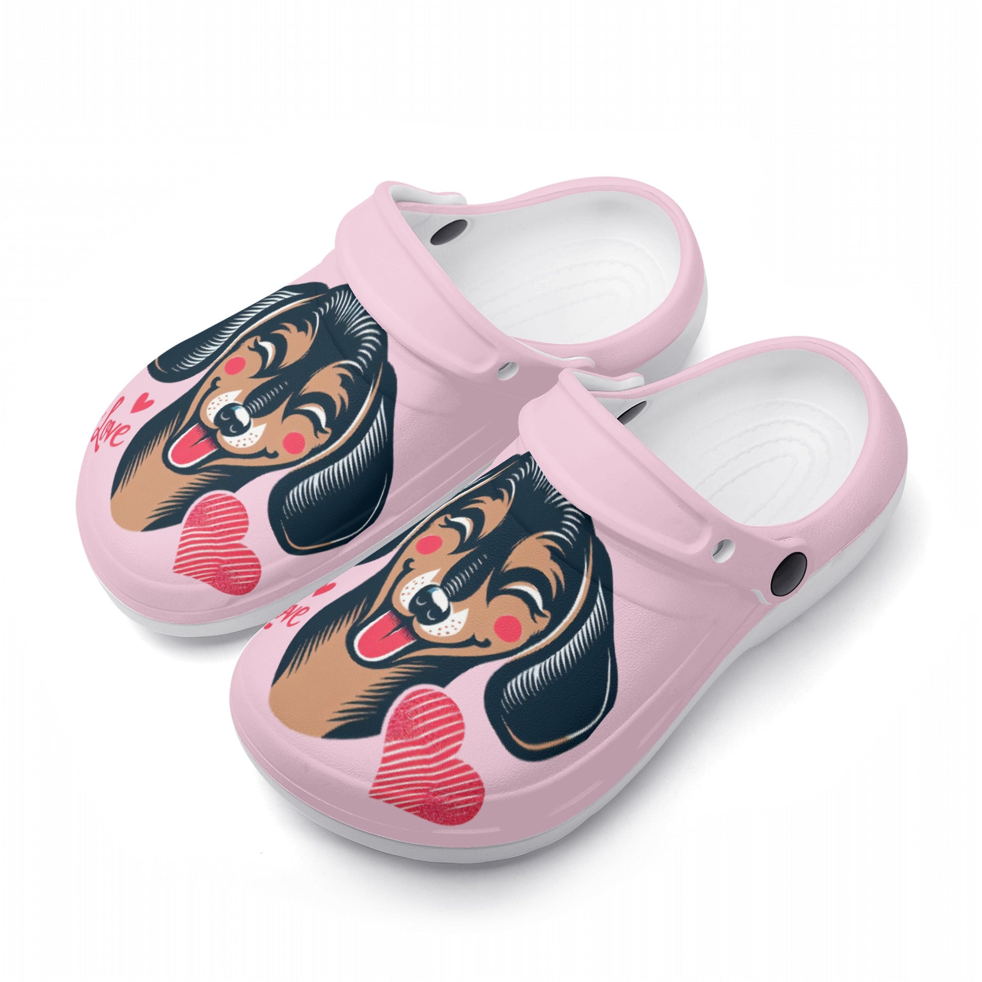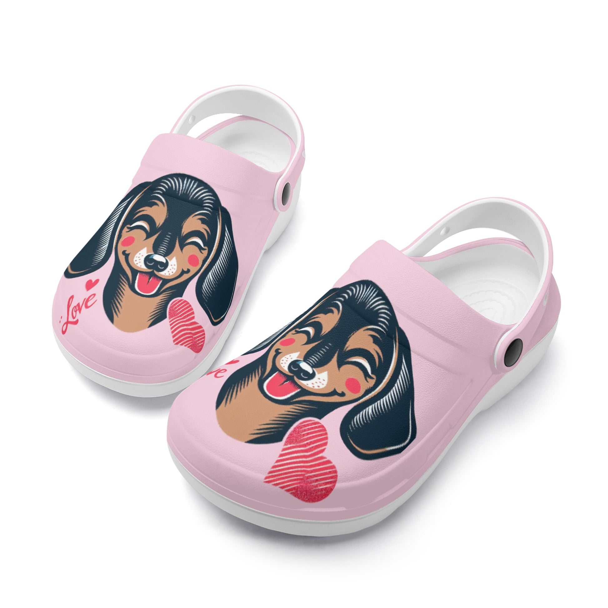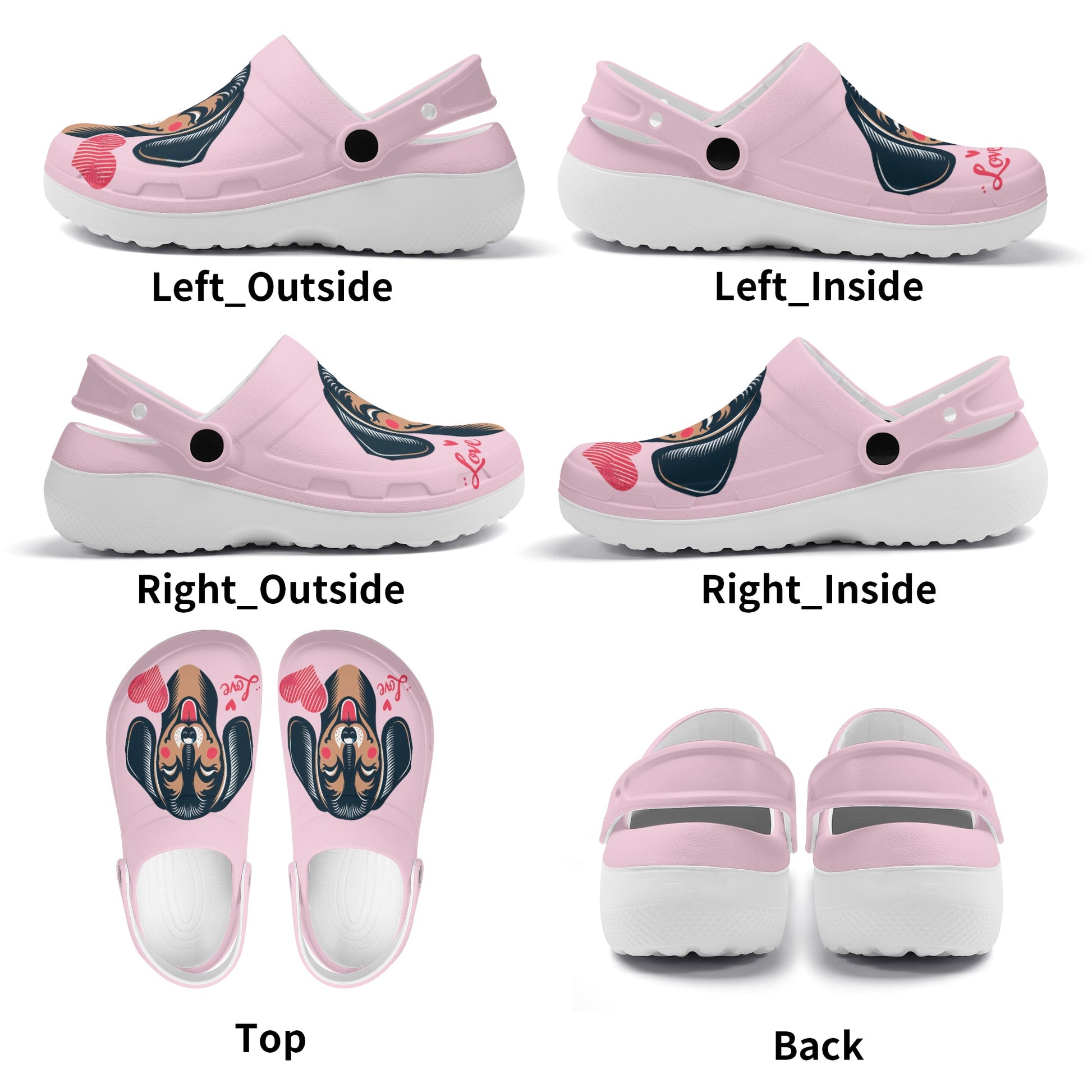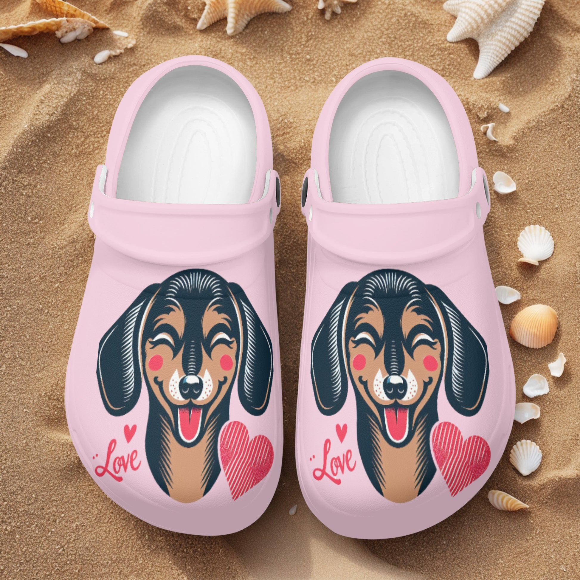 Si estás buscando un par de zuecos cómodos y elegantes que muestren tu amor por los perros salchicha, ¡te encantarán estos zuecos impresos personalizados con varias imágenes de perros salchicha!